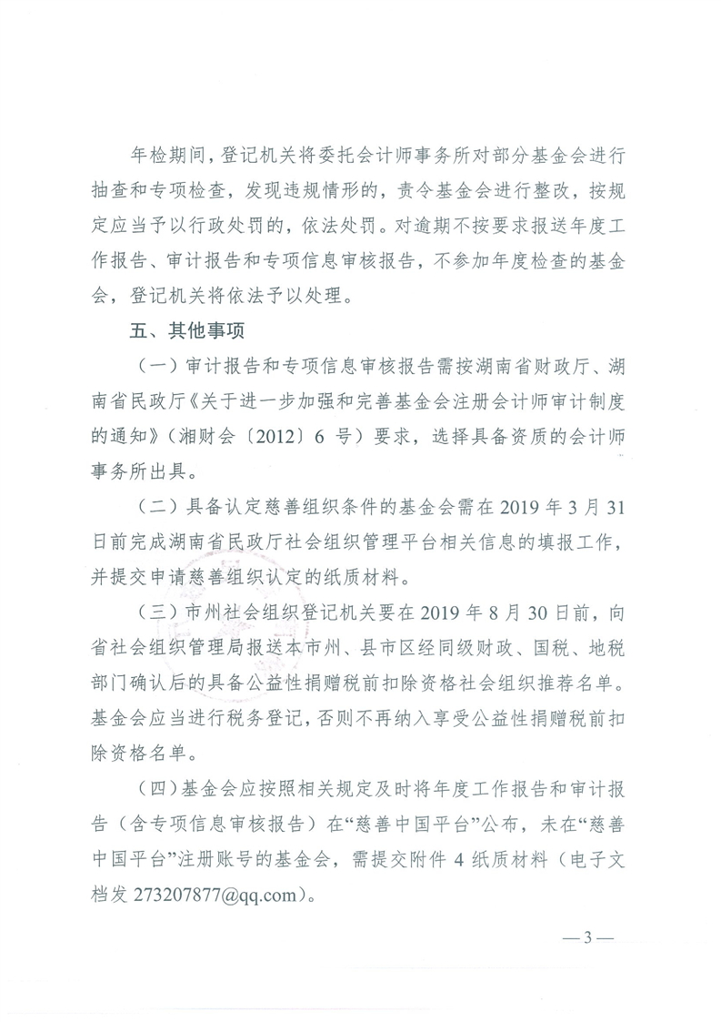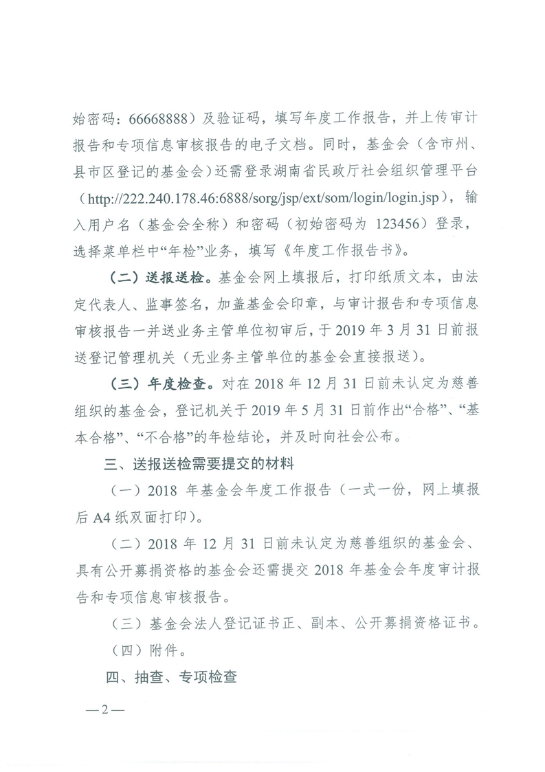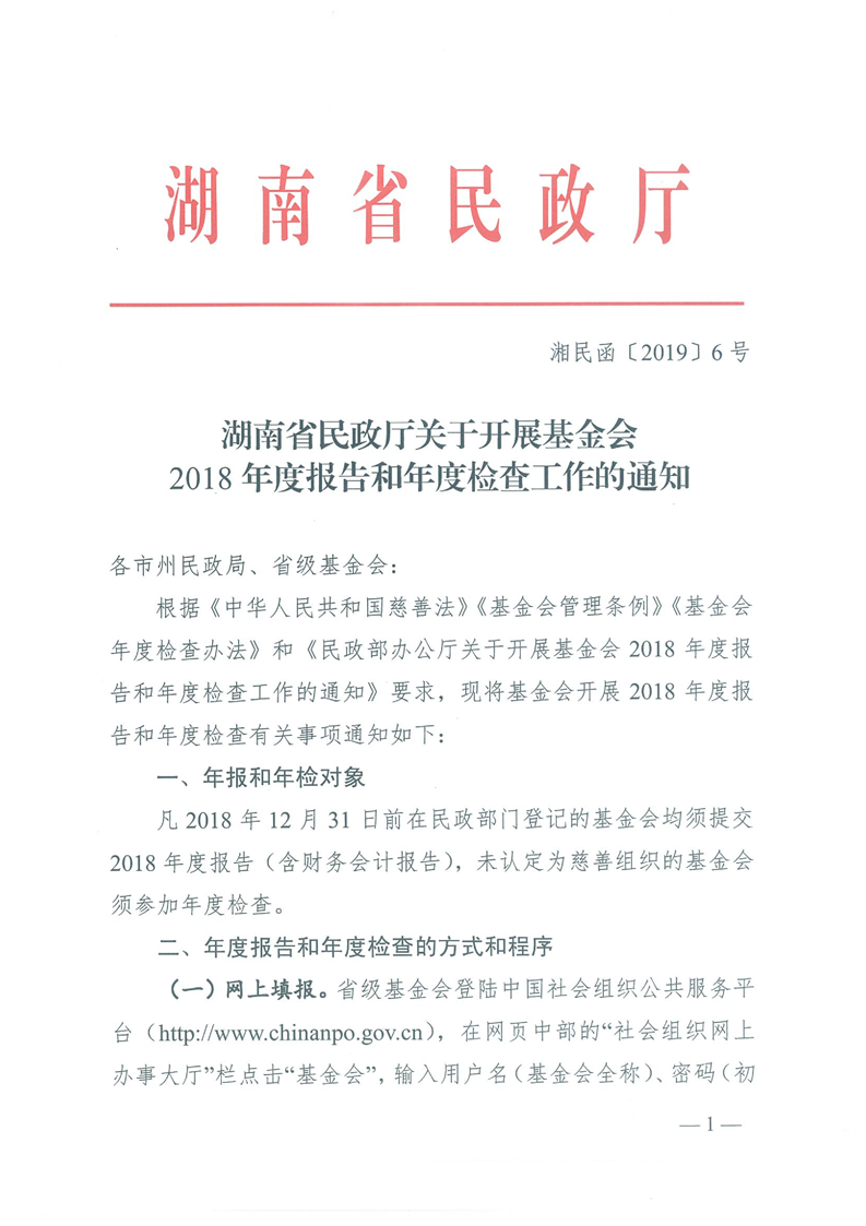 湖南省民政厅关于开展基金会2018年度报告和年度检查工作的通知
