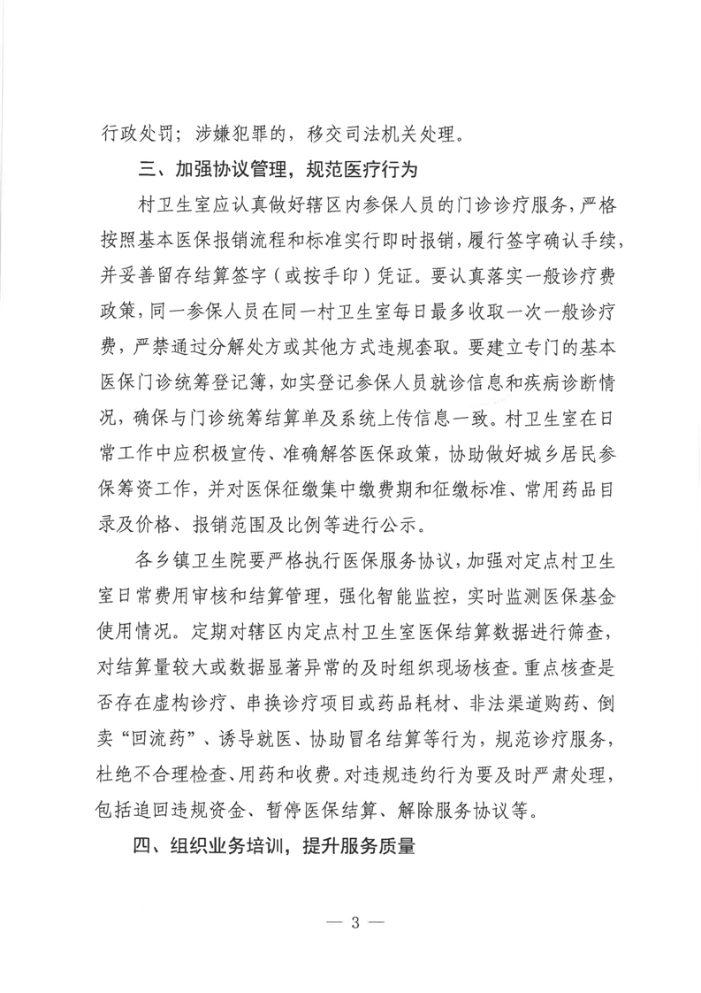 关于进一步加强村卫生室医疗保障服务管理工作的通知