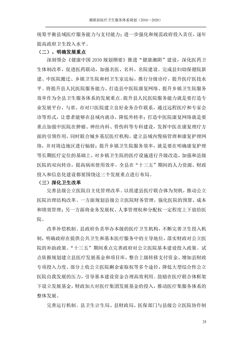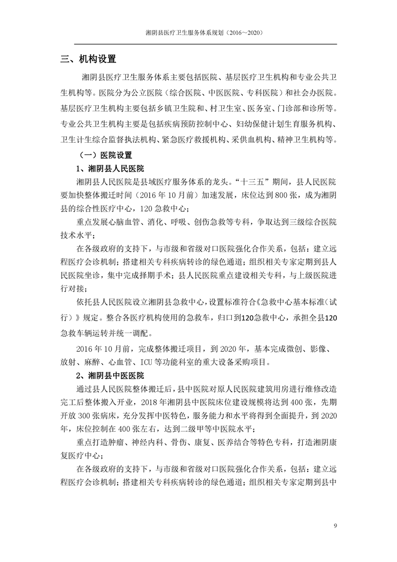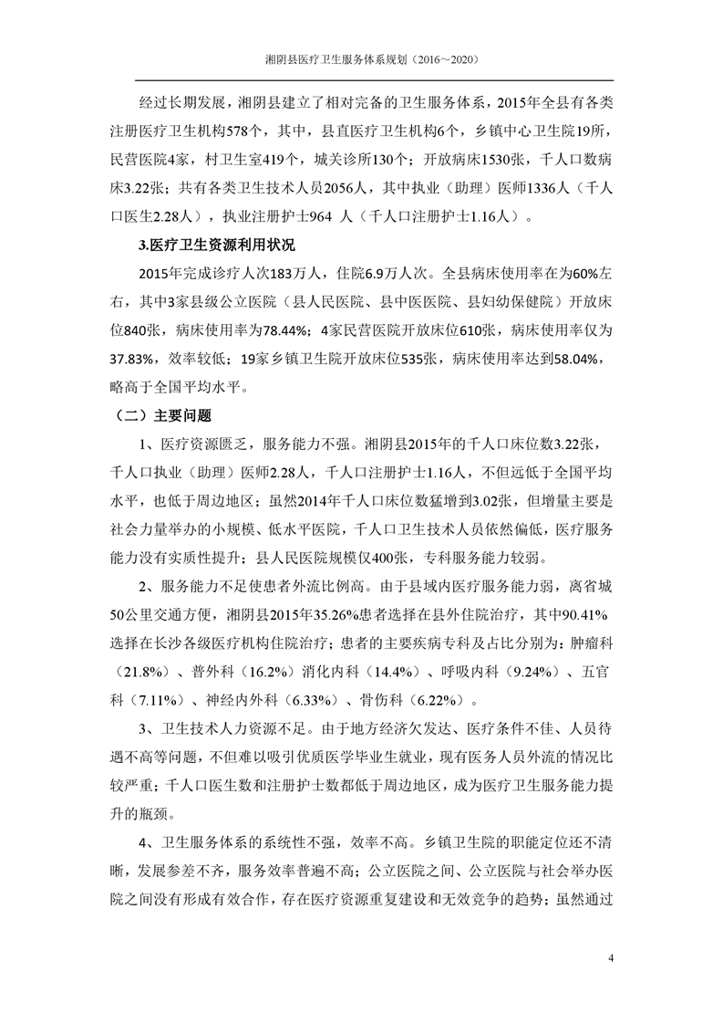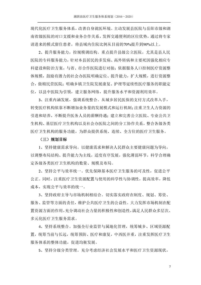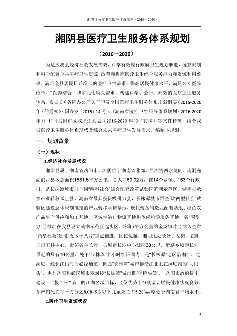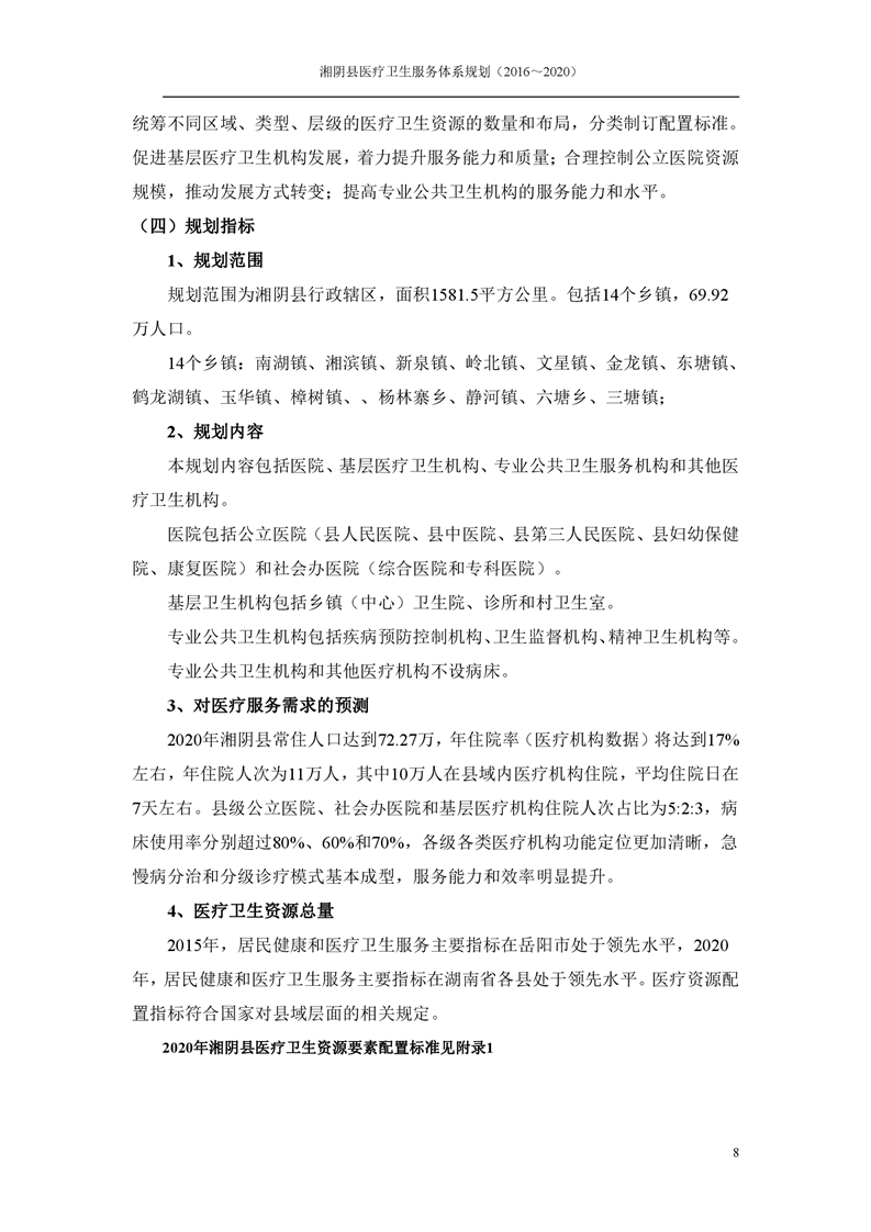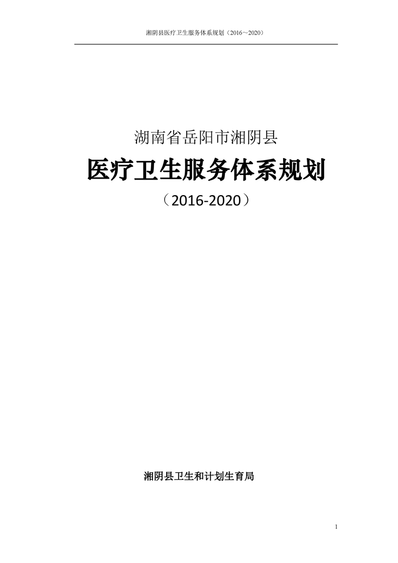 湘阴县医疗卫生服务体系规划(2016~2020)