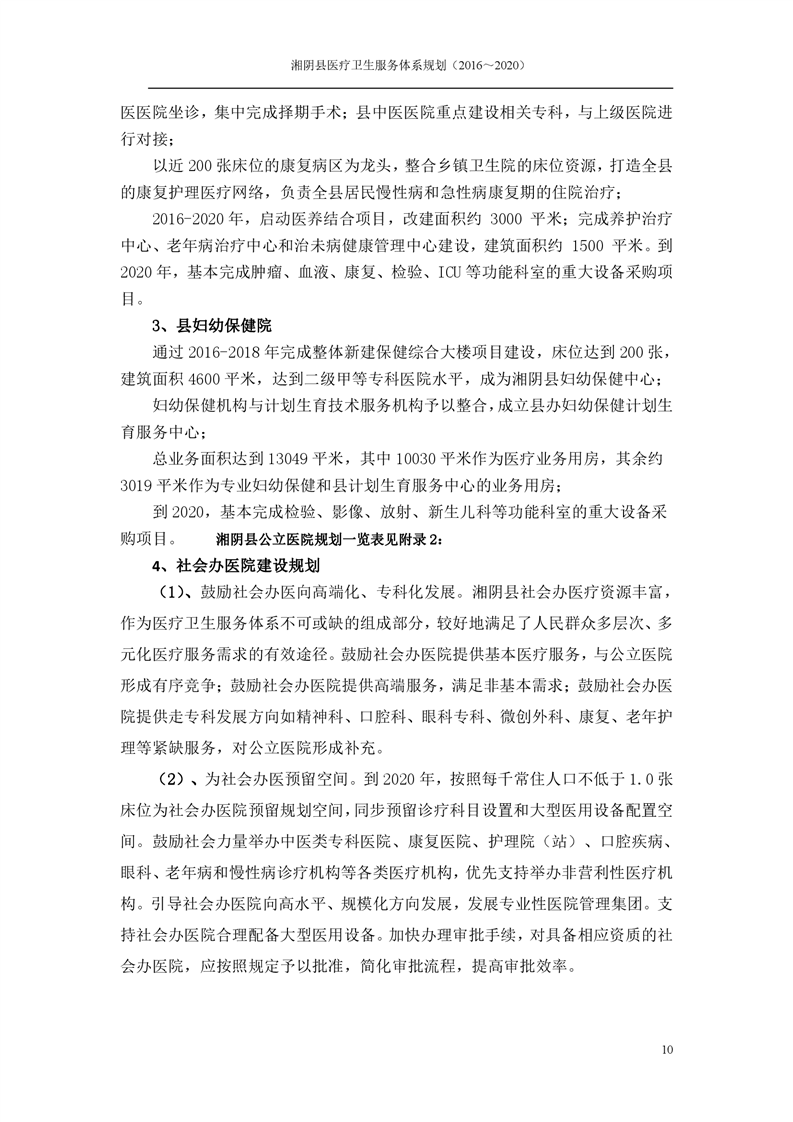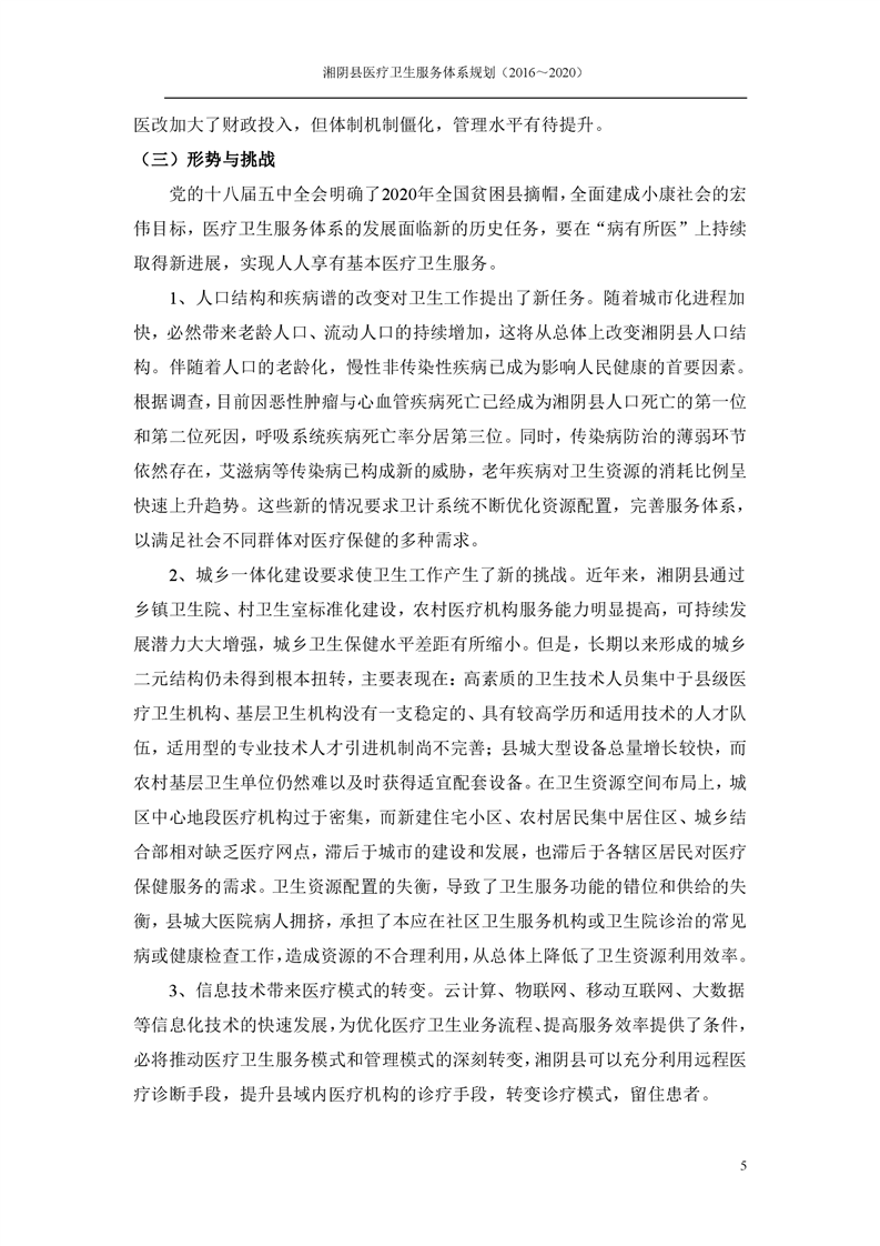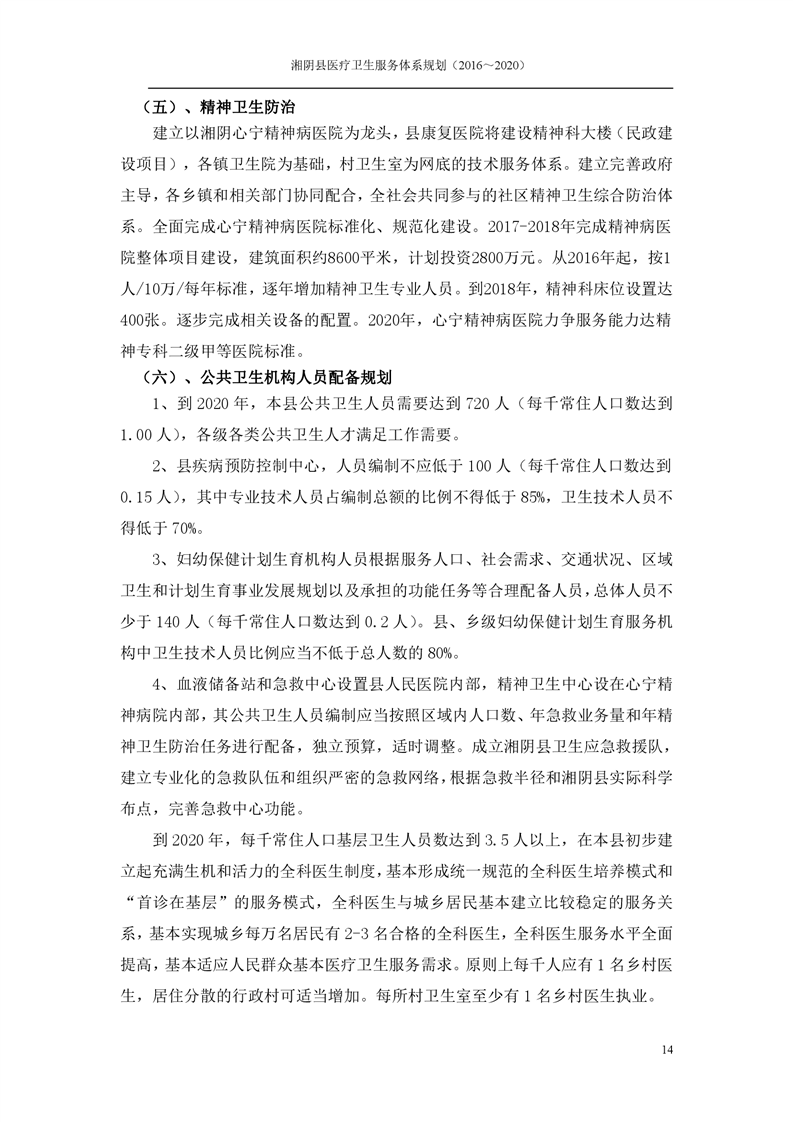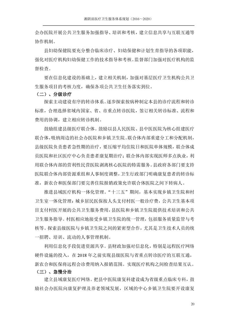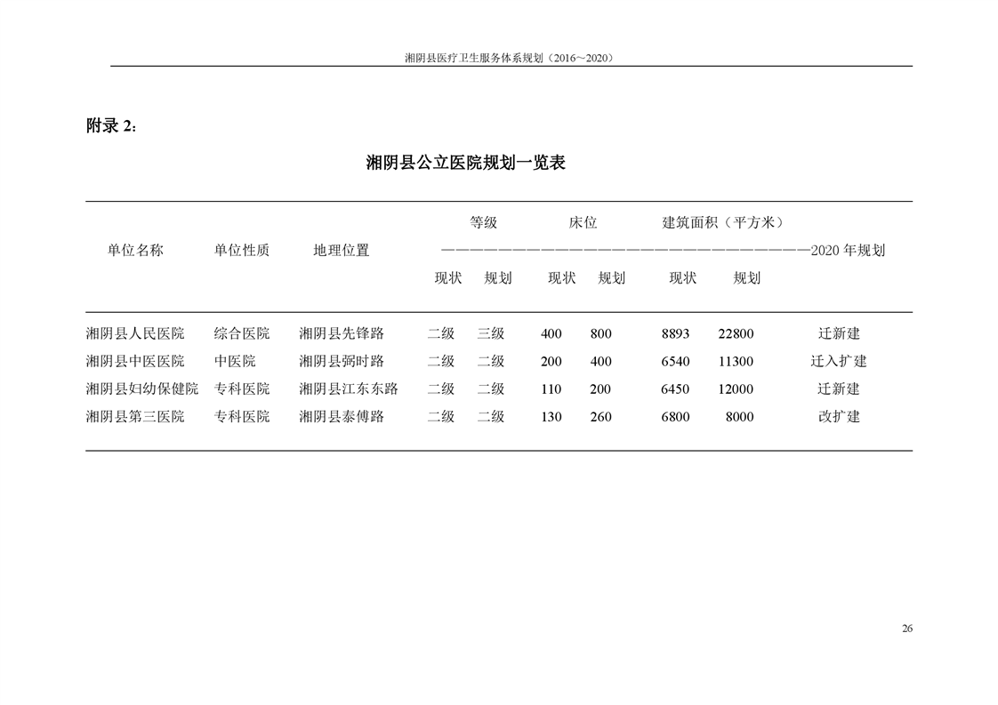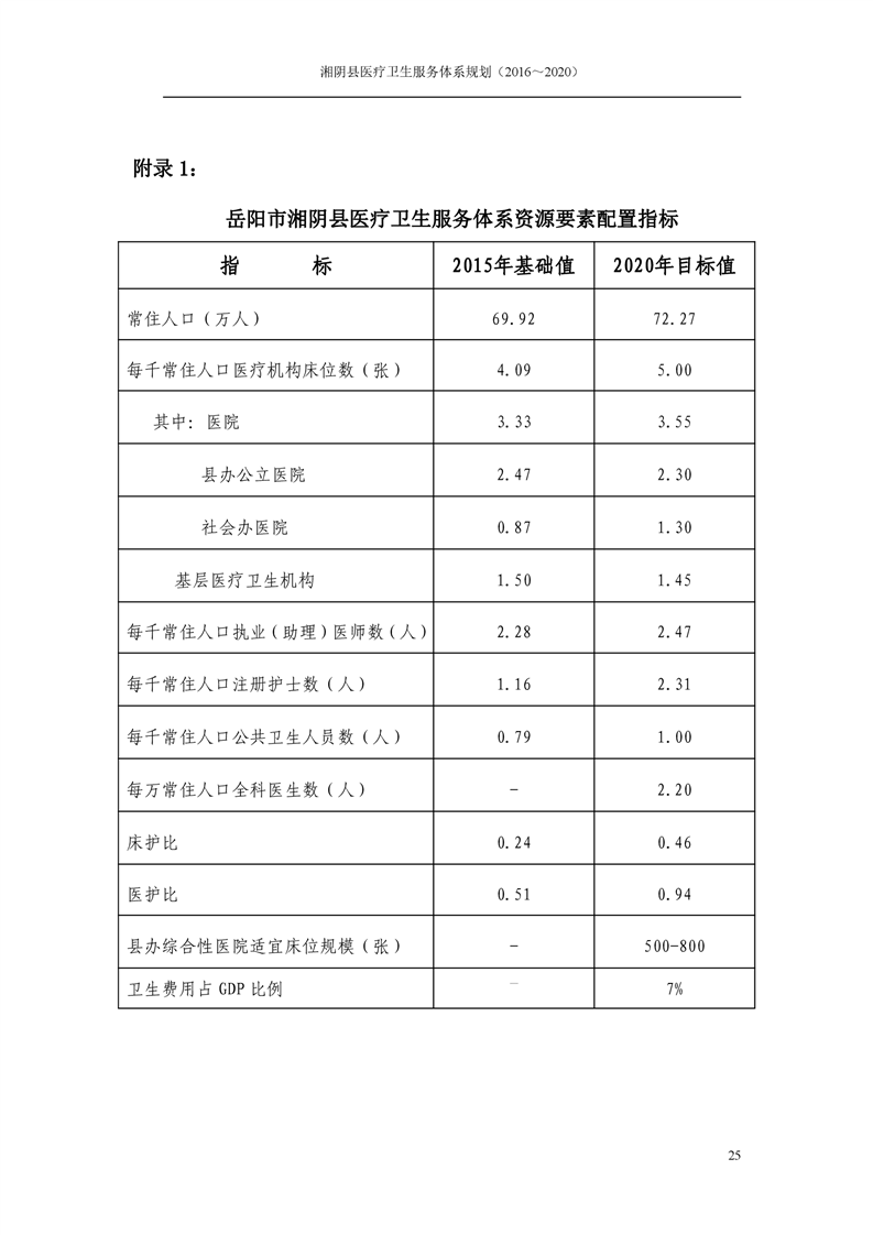 湘阴县医疗卫生服务体系规划(2016~2020)