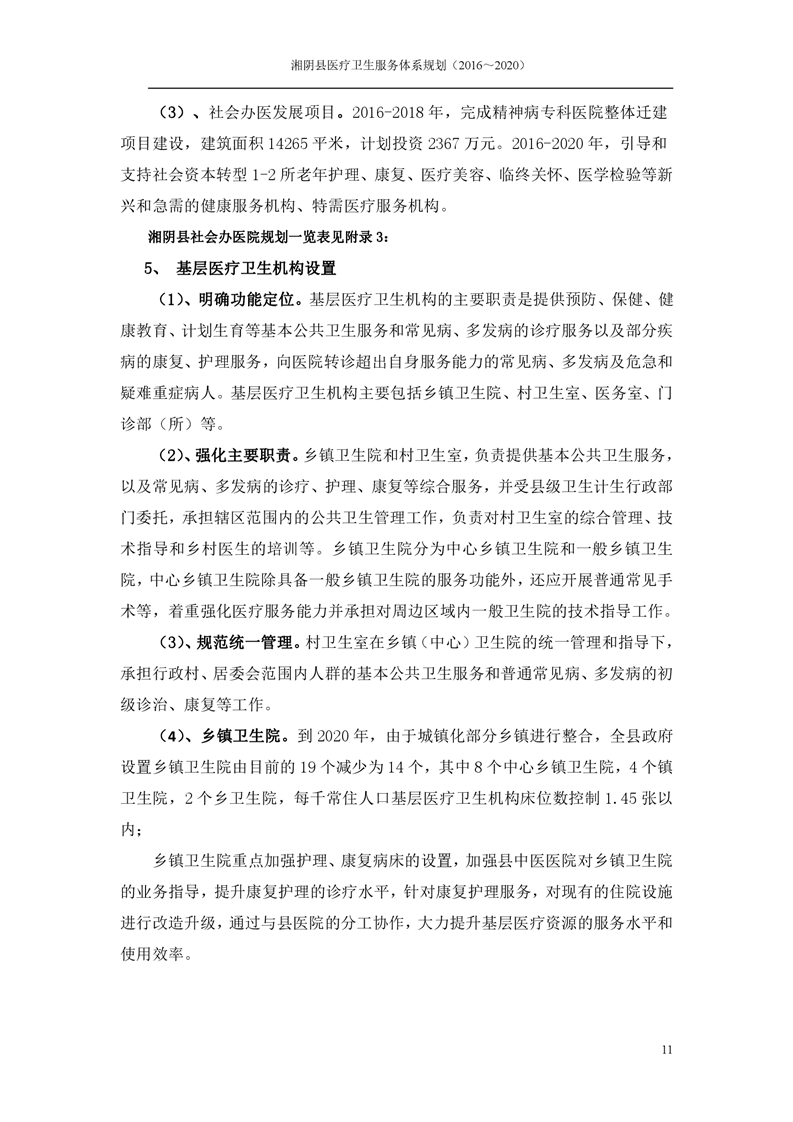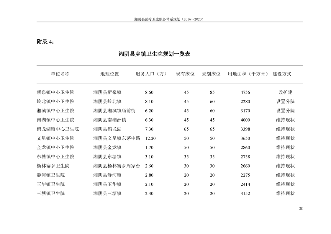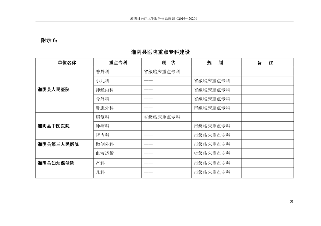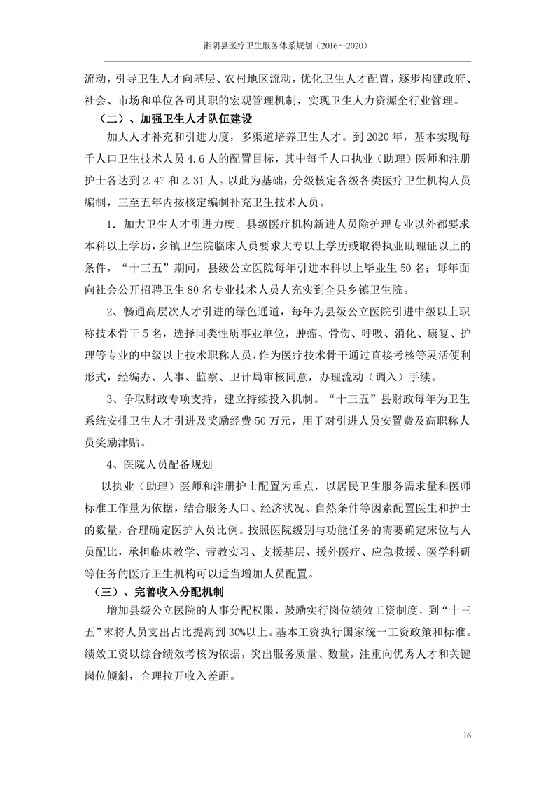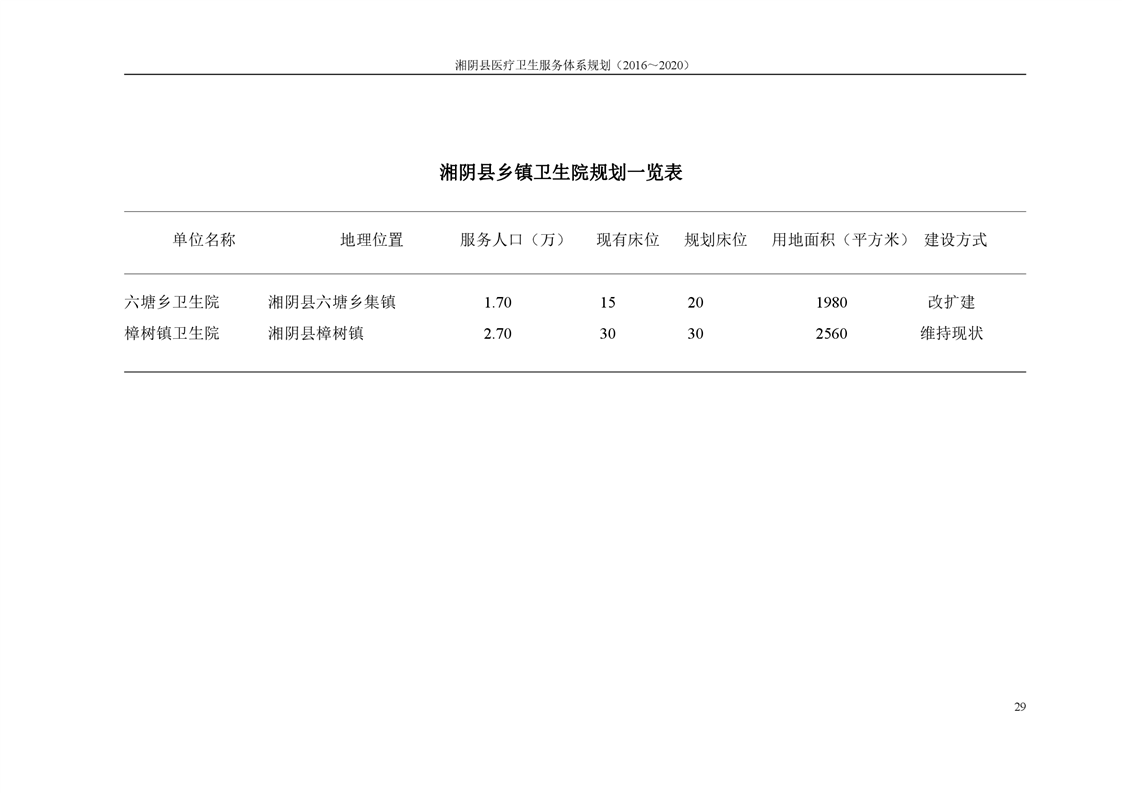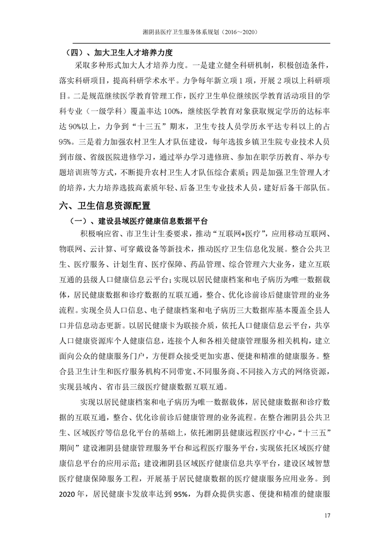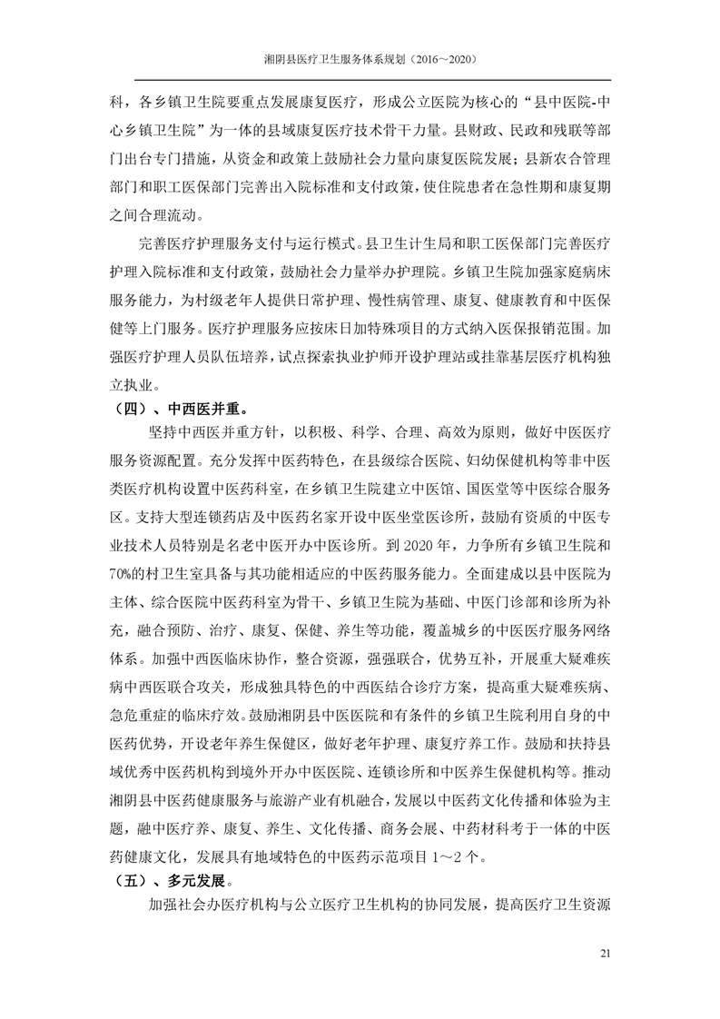 湘阴县医疗卫生服务体系规划(2016~2020)