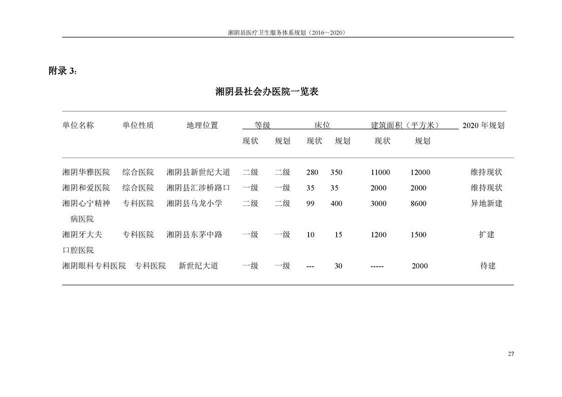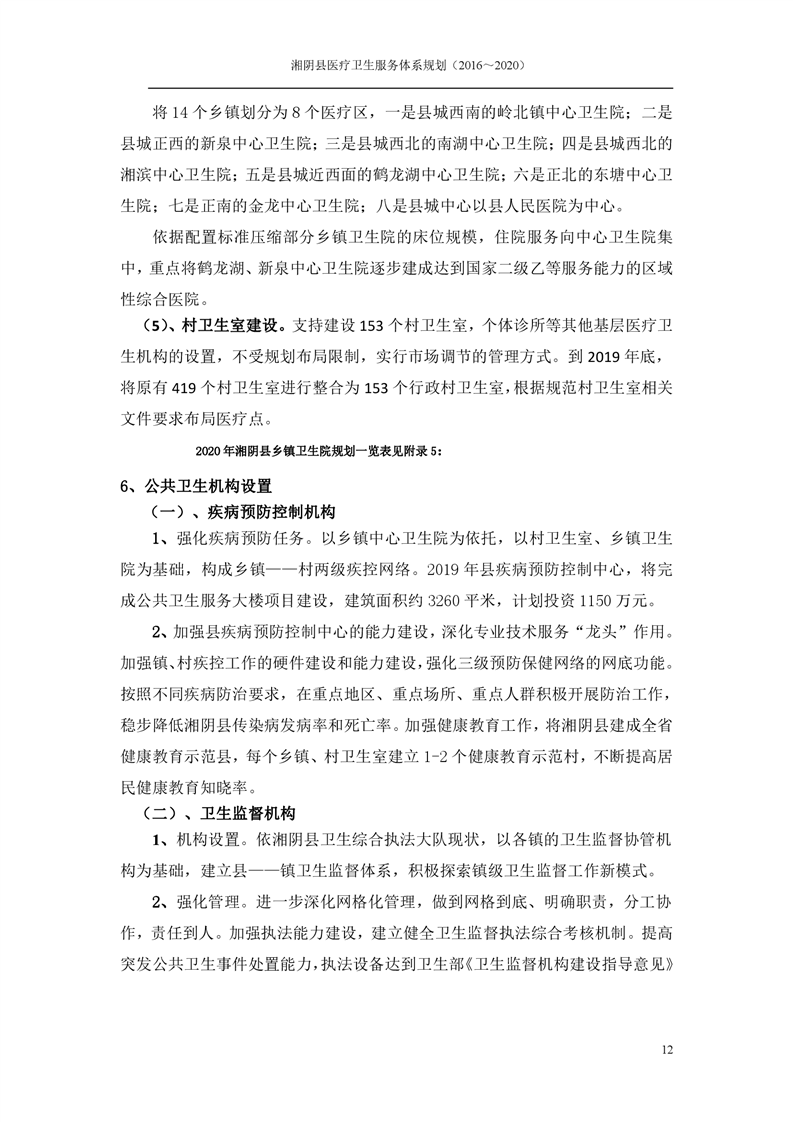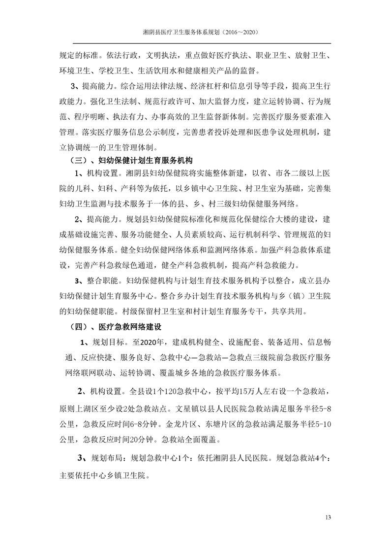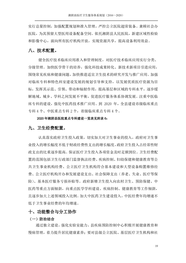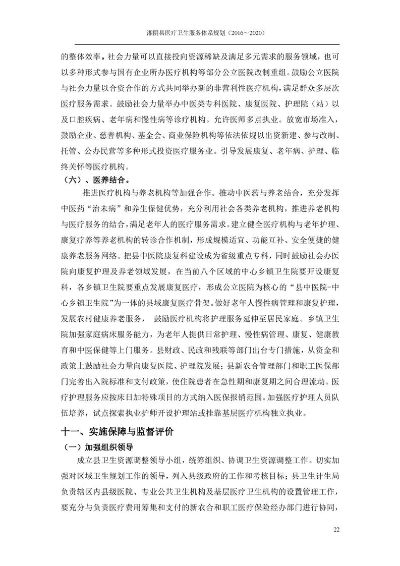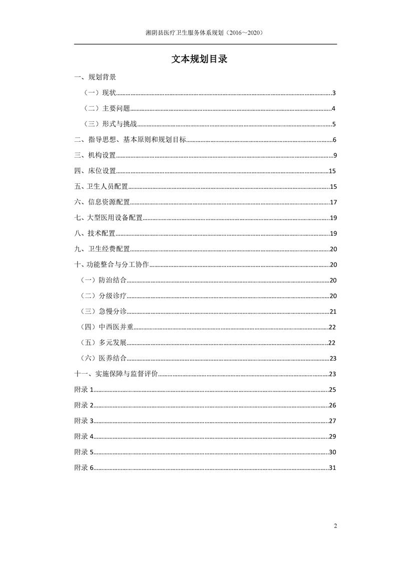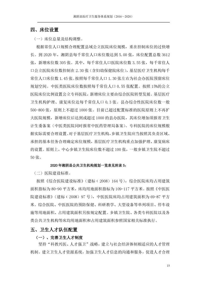 湘阴县医疗卫生服务体系规划(2016~2020)