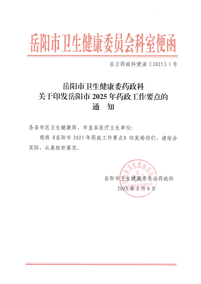 转发岳阳市卫生健康委药政科关于印发岳阳市2025年药政工作要点的通知