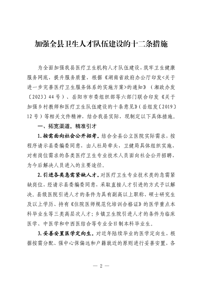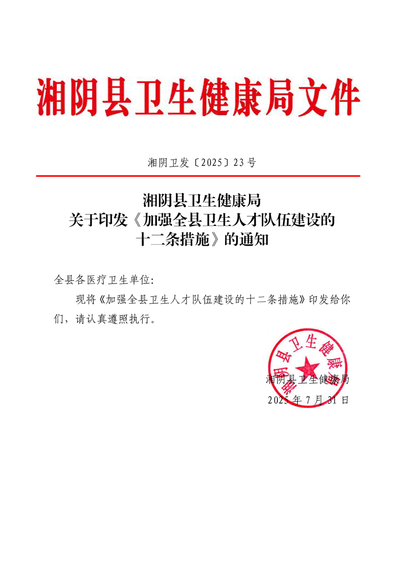 关于印发《加强全县卫生人才队伍建设的十二条措施》的通知