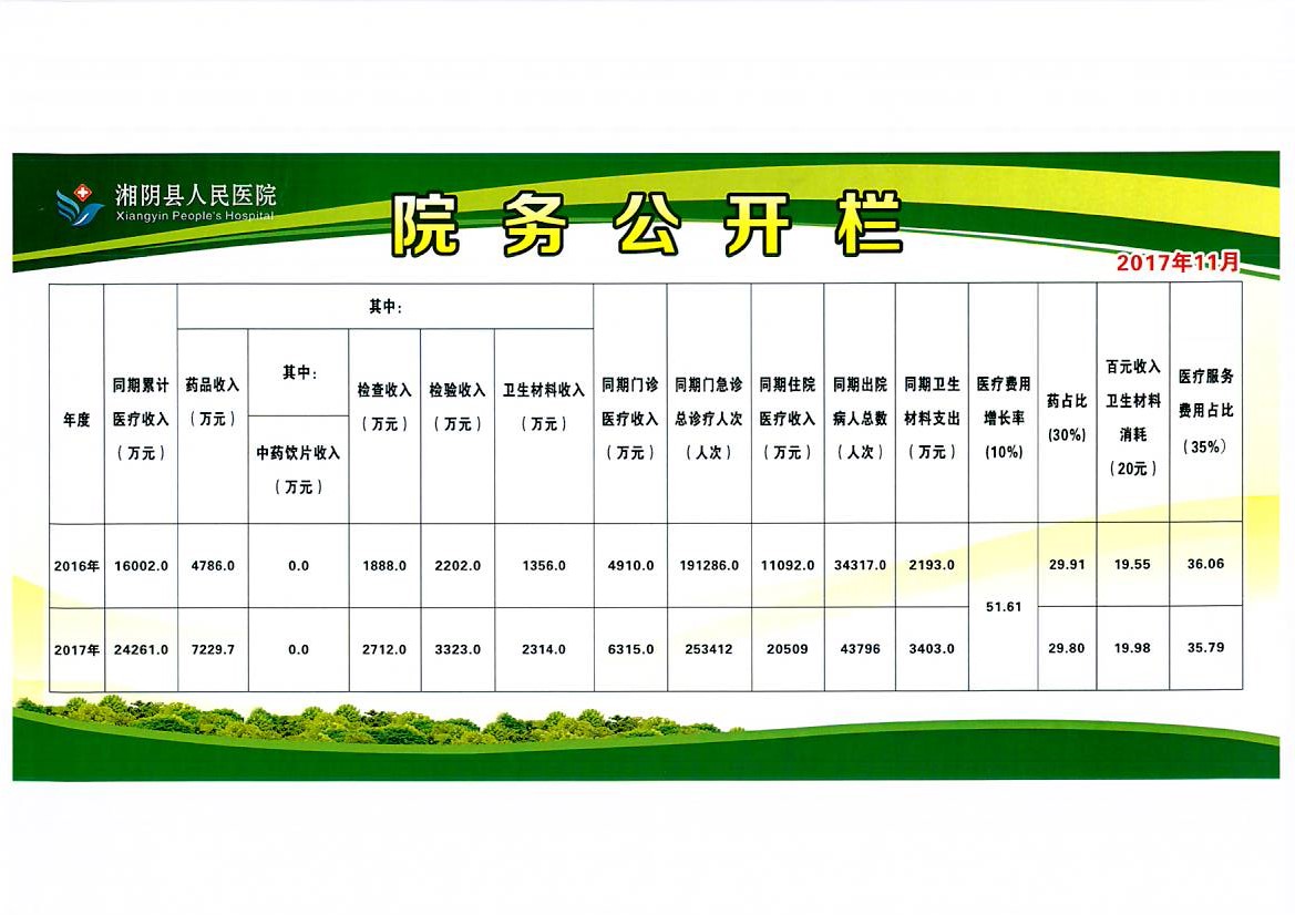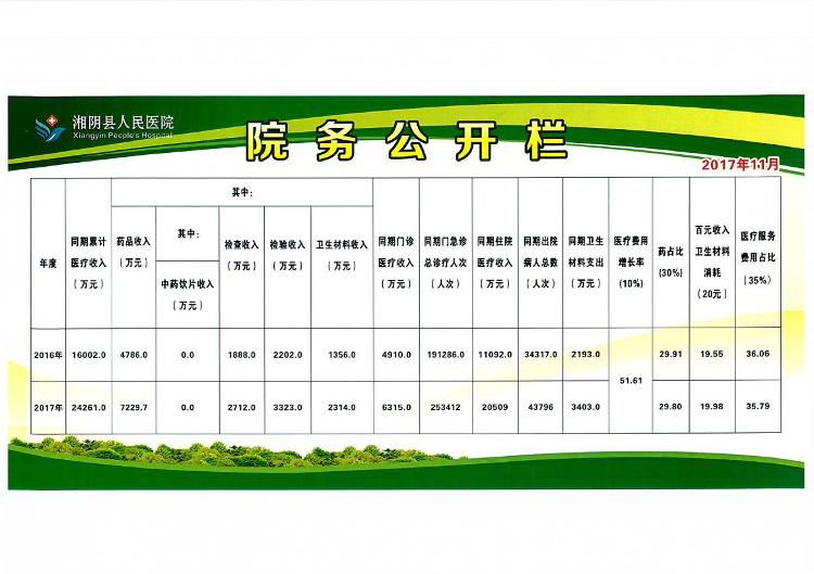 2016、2017年湘阴县人民医院收支情况