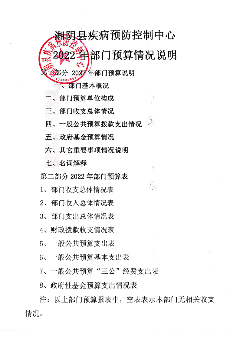 湘阴县疾病预防控制中心2022年部门预算情况说明