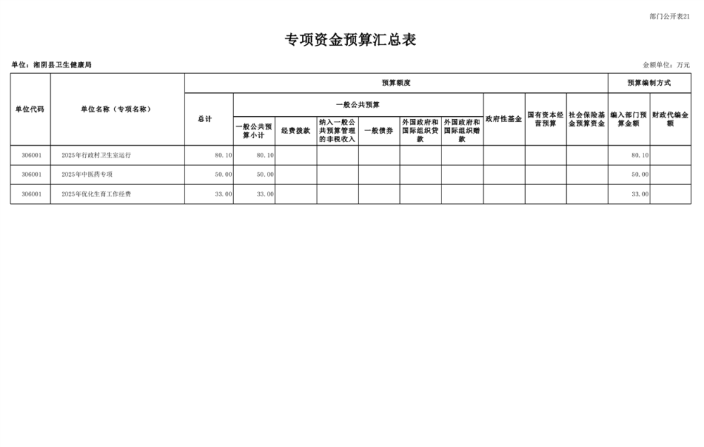 2025年-湘阴县卫生健康局-部门预算