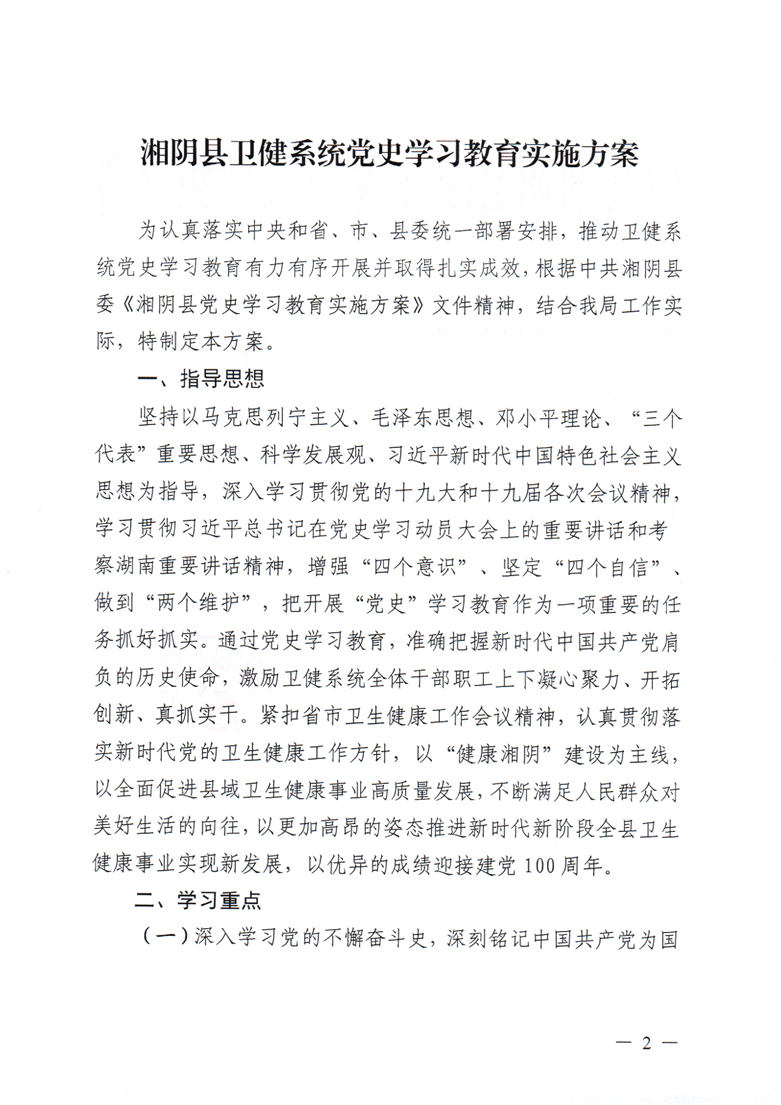 湘阴县卫健系统开展党史学习教育实施方案的通知