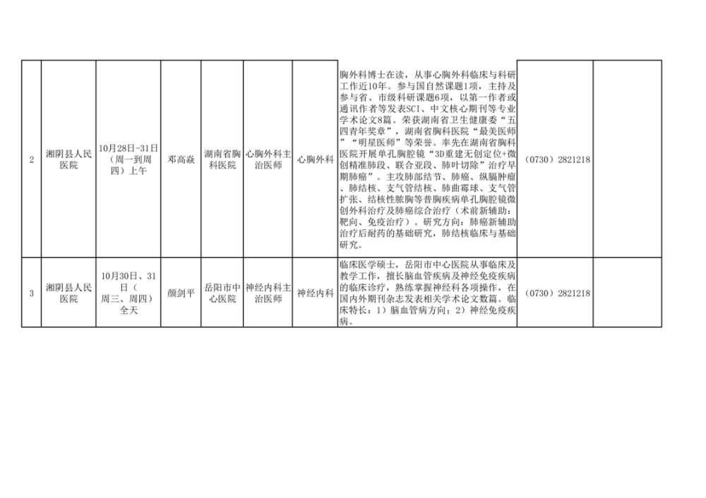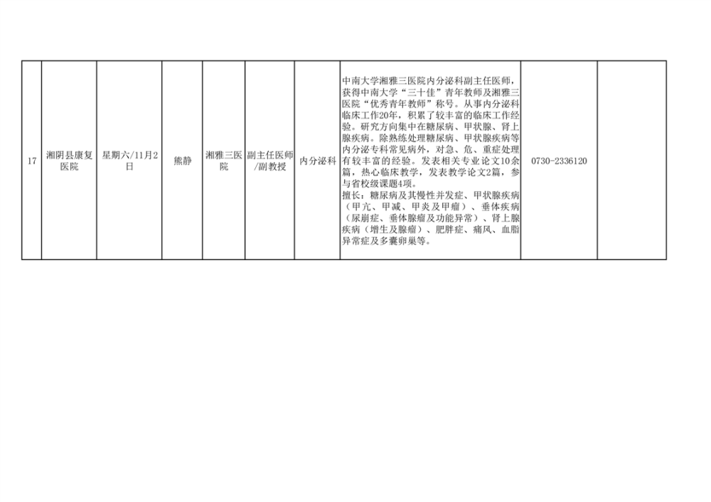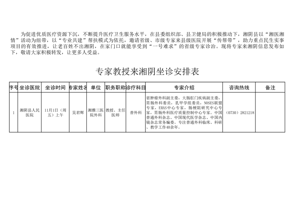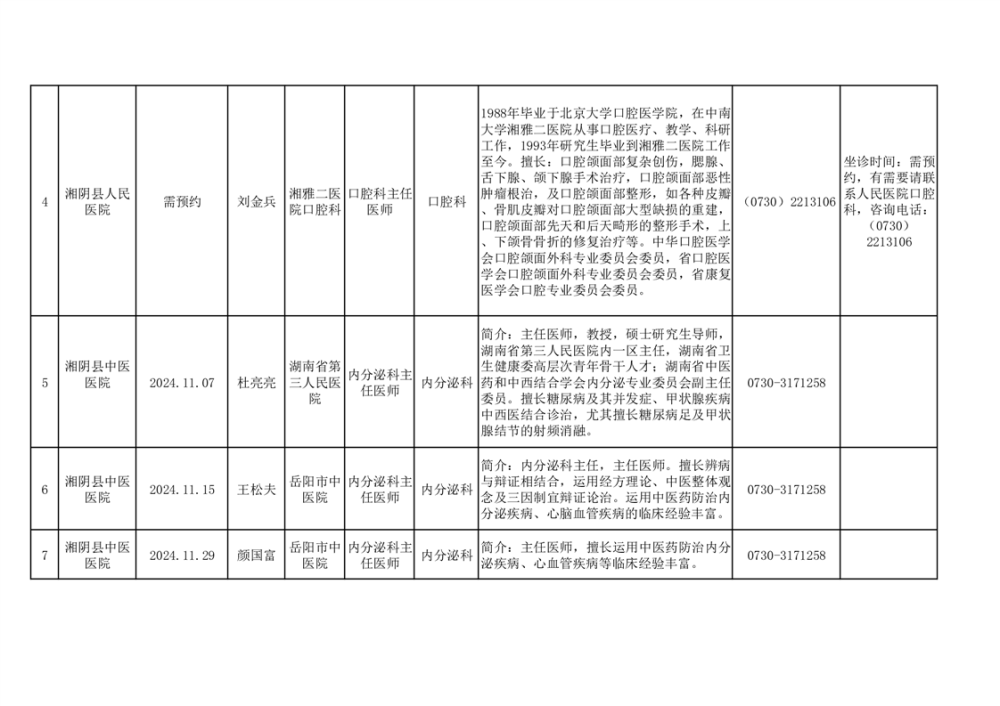 专家教授来湘阴坐诊安排表(10月24日)