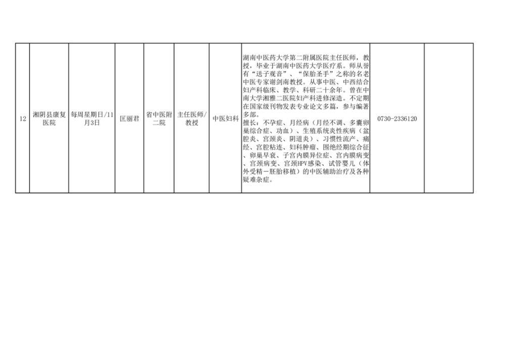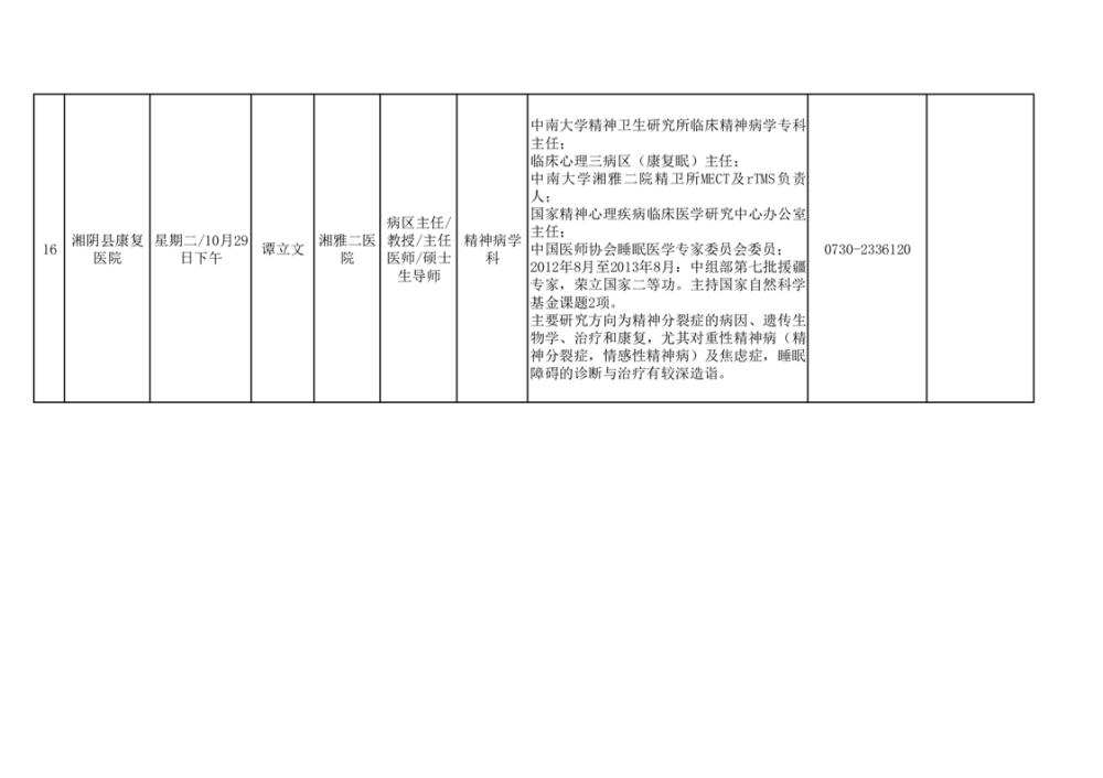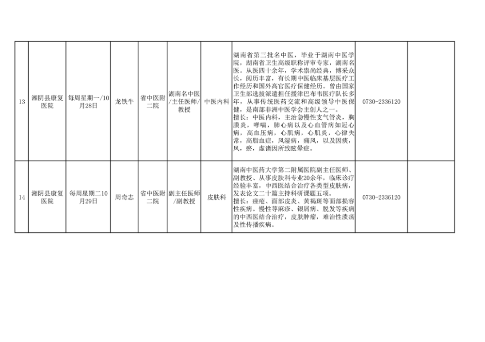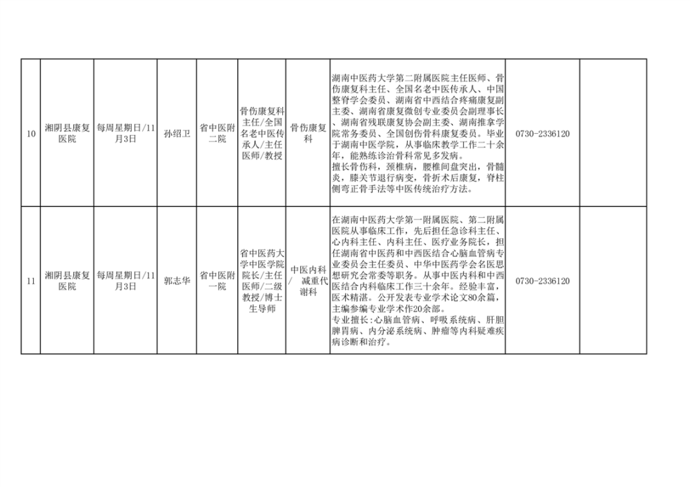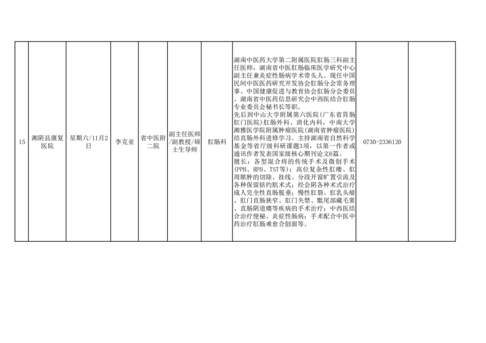 专家教授来湘阴坐诊安排表(10月24日)