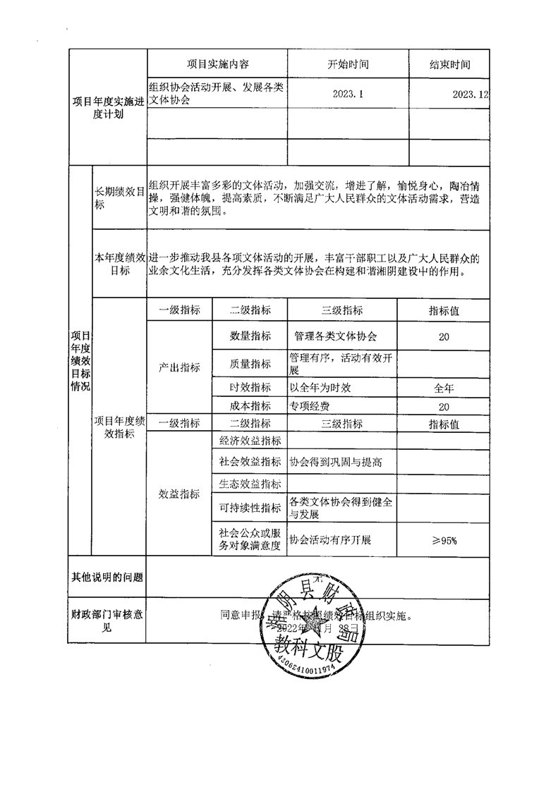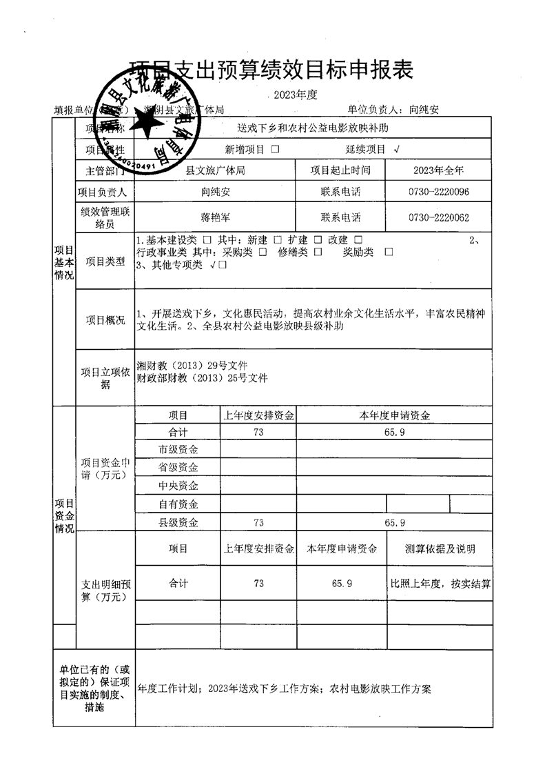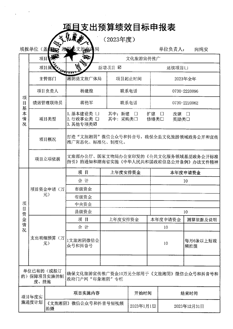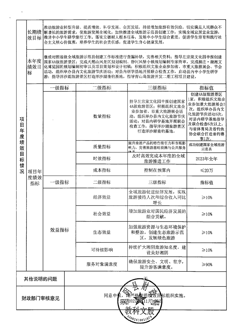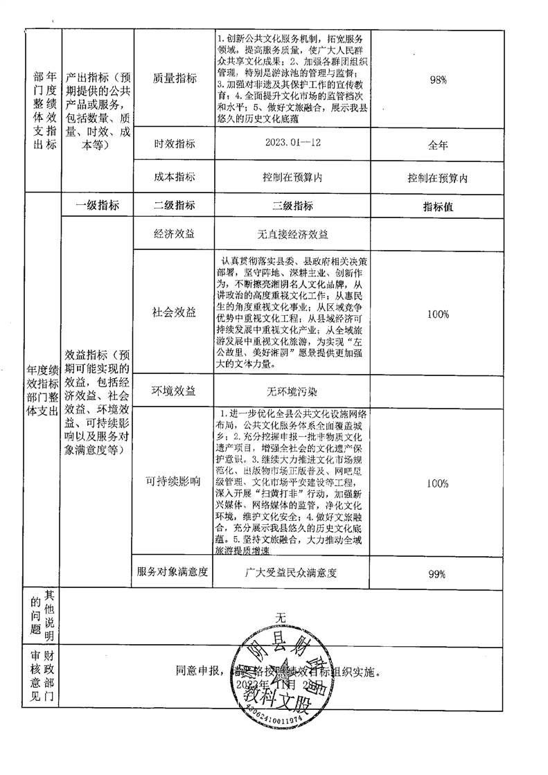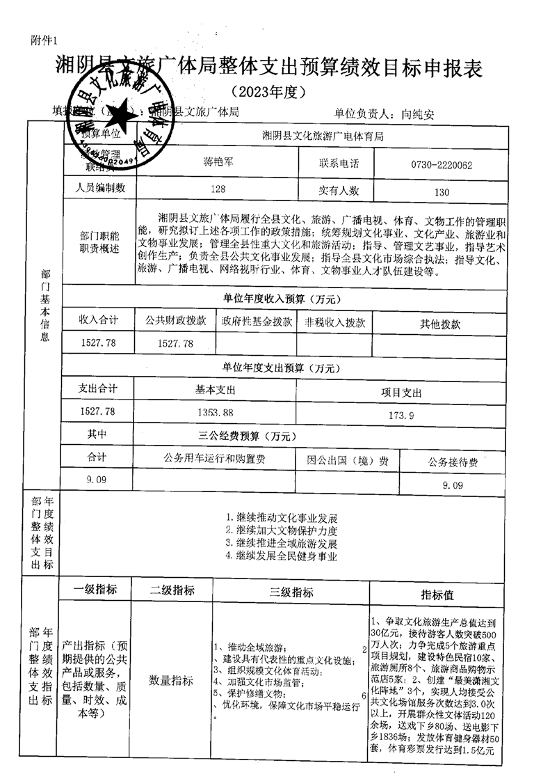 2023年度湘阴县文旅广体局预算绩效目标申报表