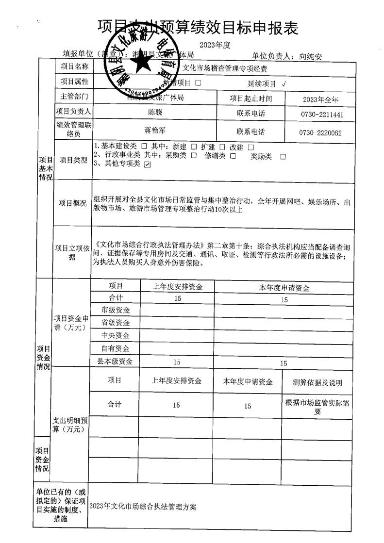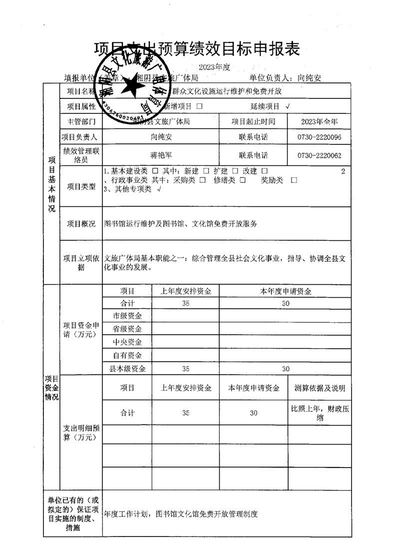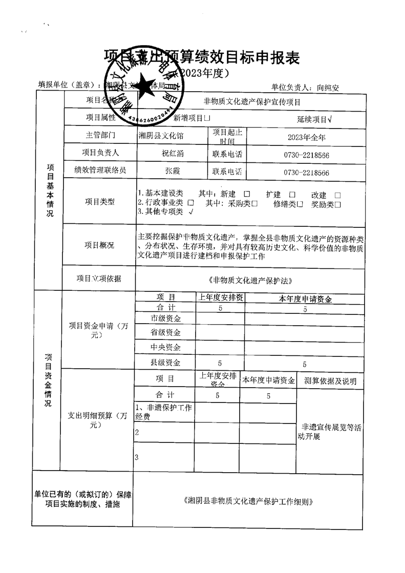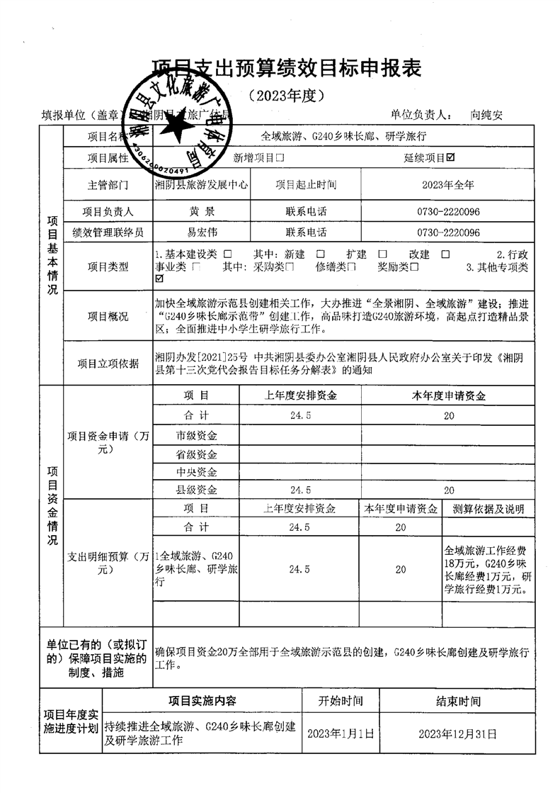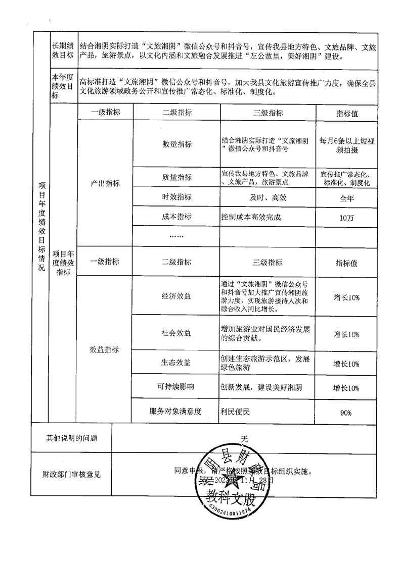 2023年度湘阴县文旅广体局预算绩效目标申报表