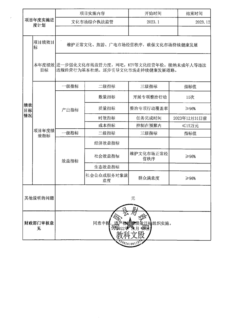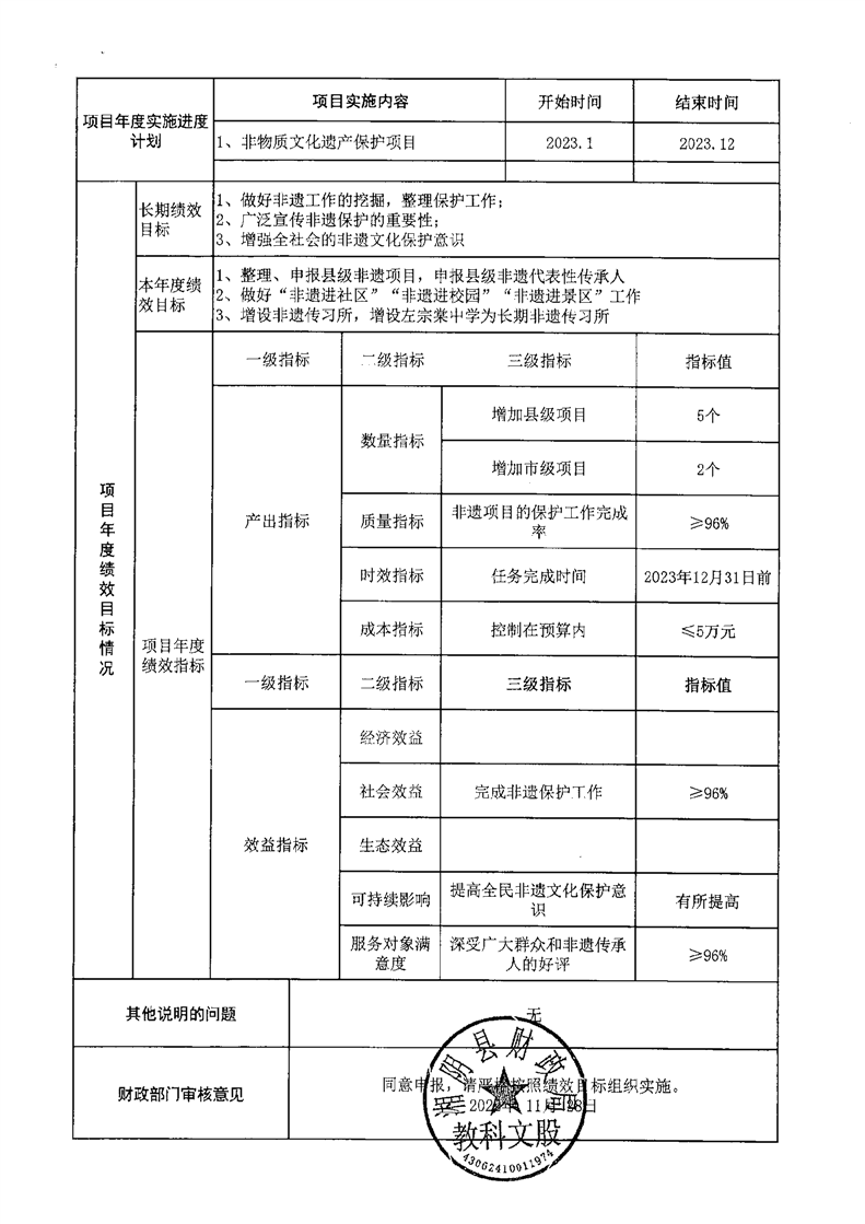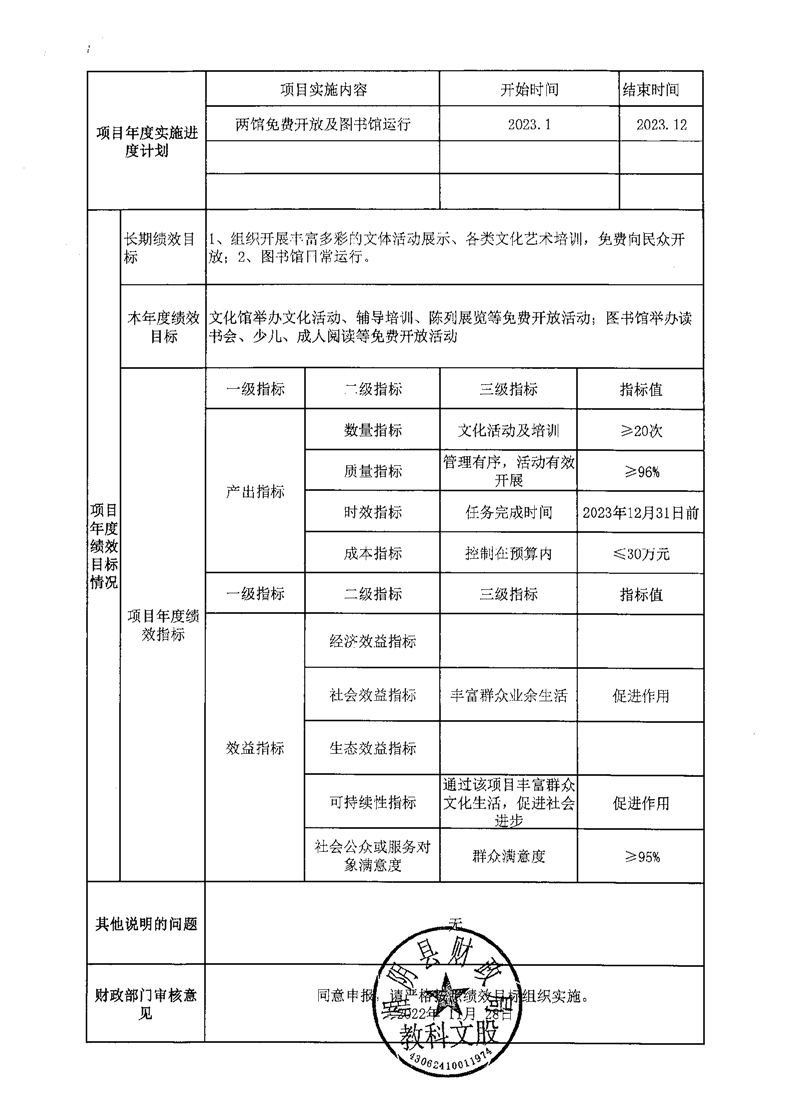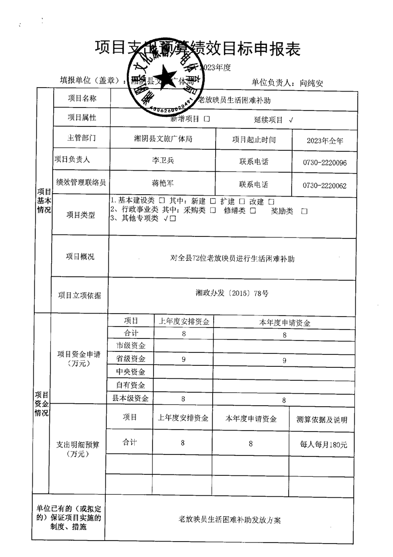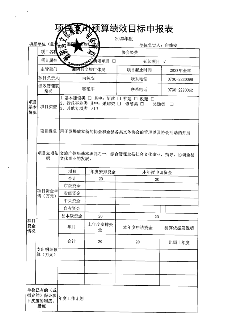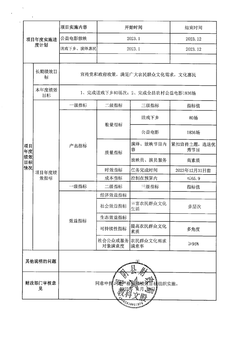 2023年度湘阴县文旅广体局预算绩效目标申报表