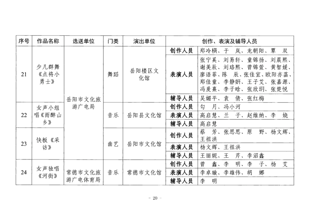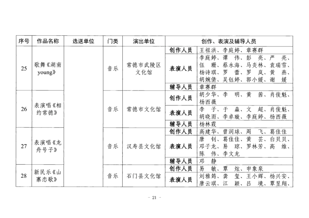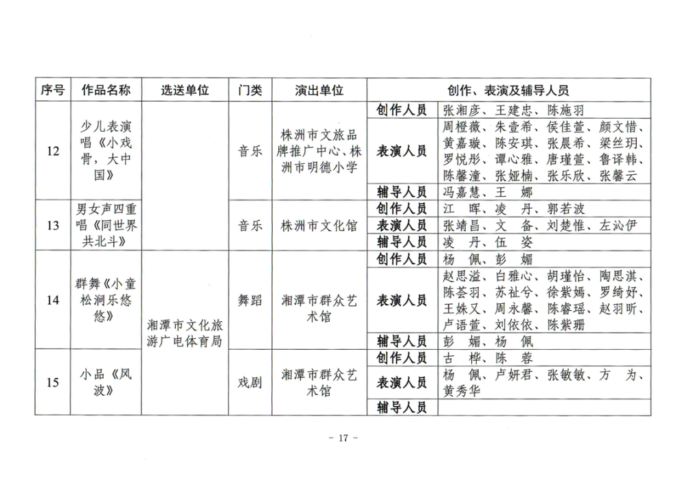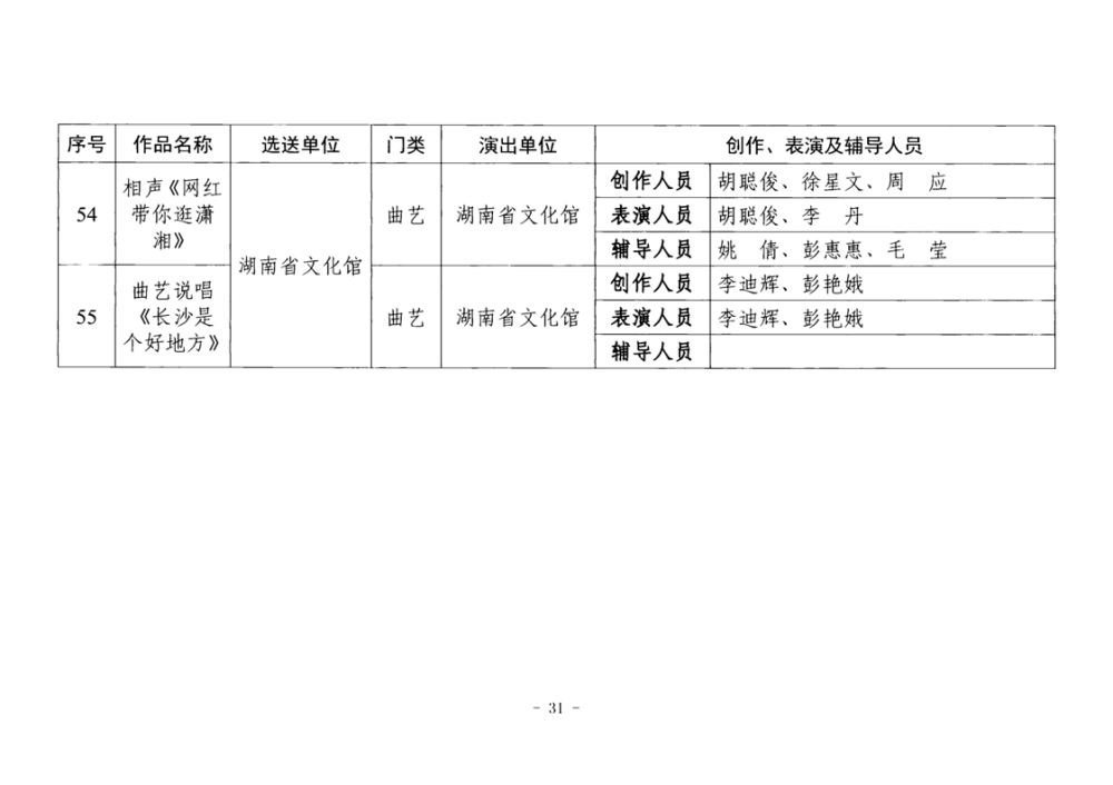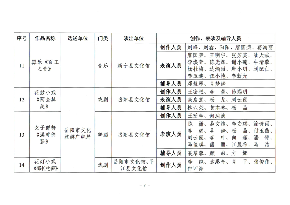 湖南省文化和旅游厅关于公布2025年全省“欢乐潇湘”新创群众文艺作品获奖情况的通知