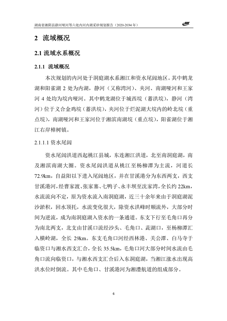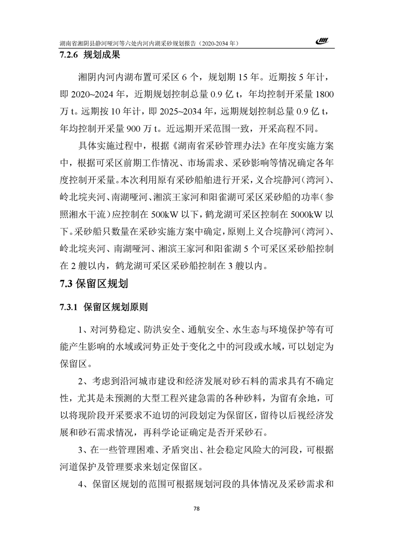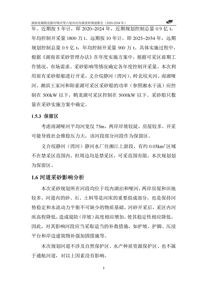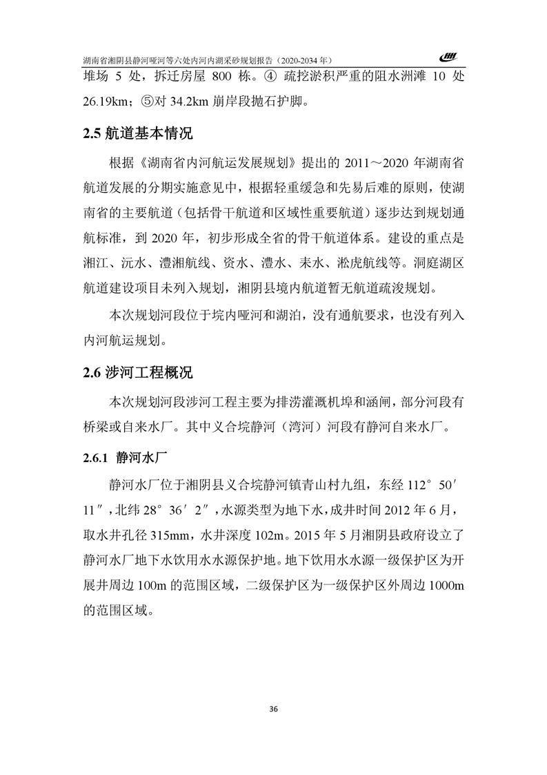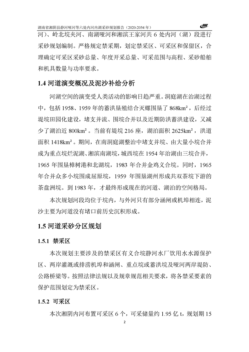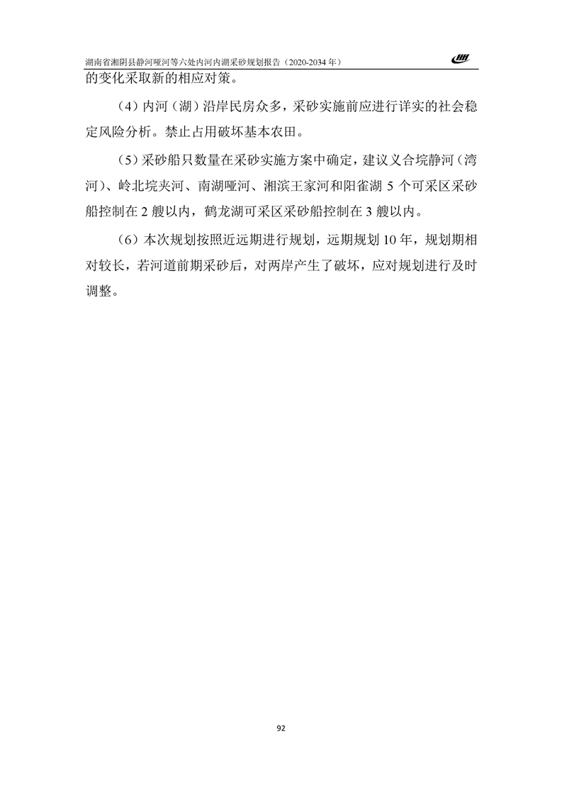 湖南省湘阴县静河哑河等六处内河内湖采砂规划报告