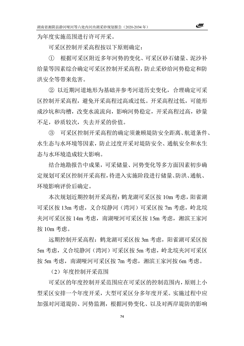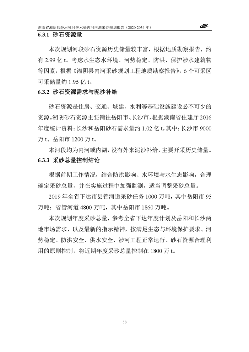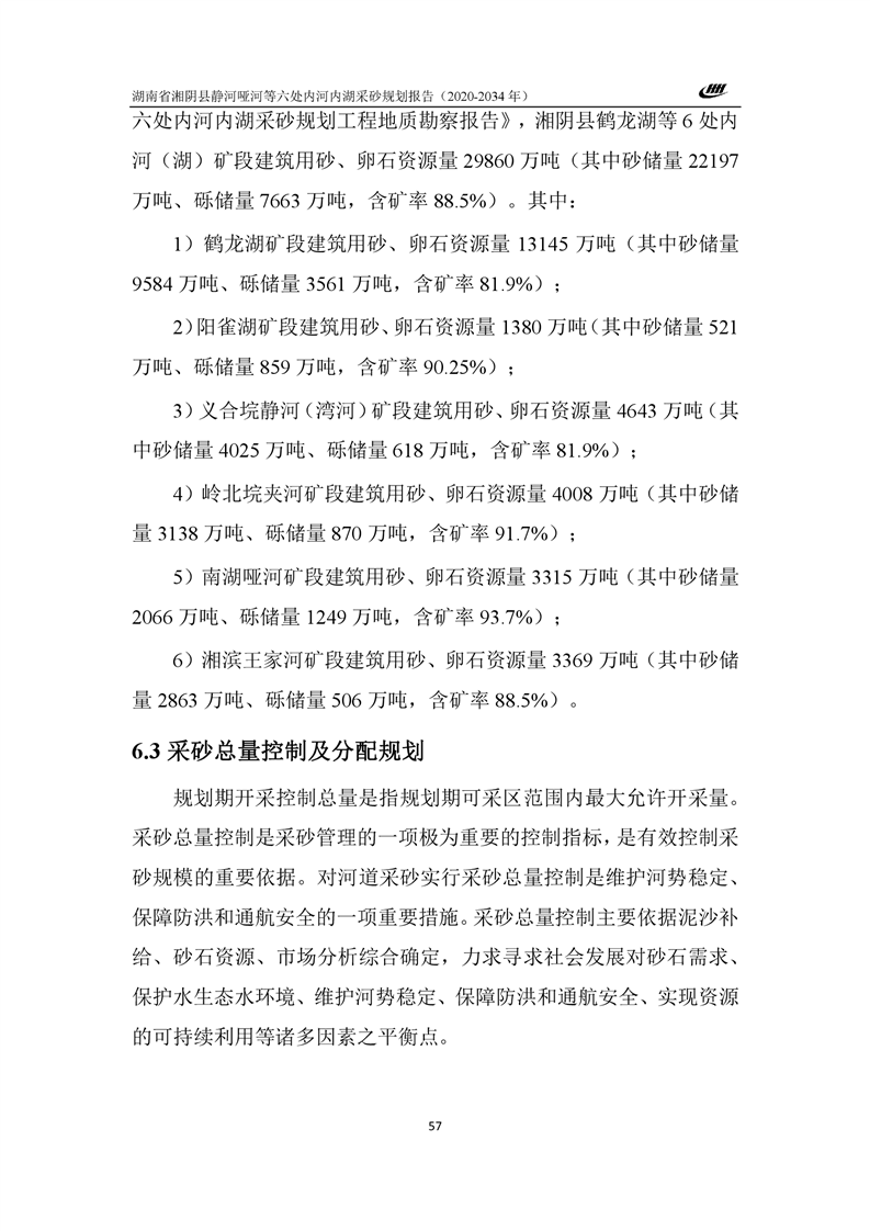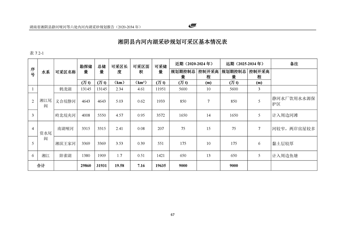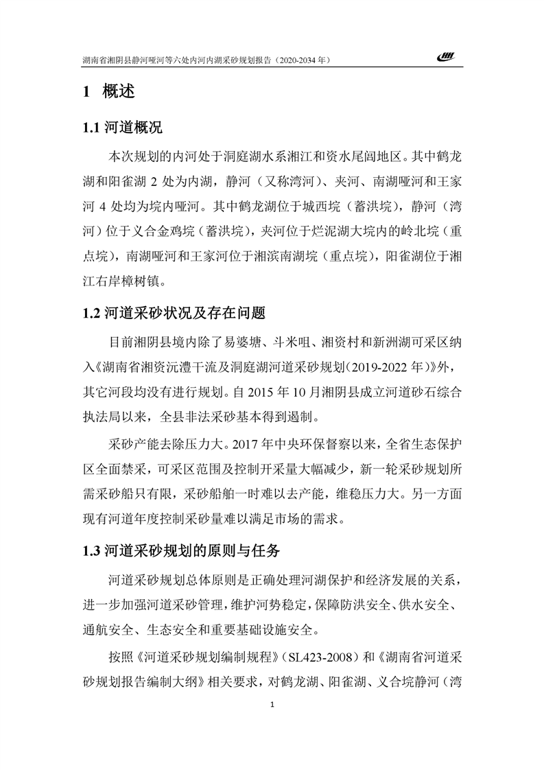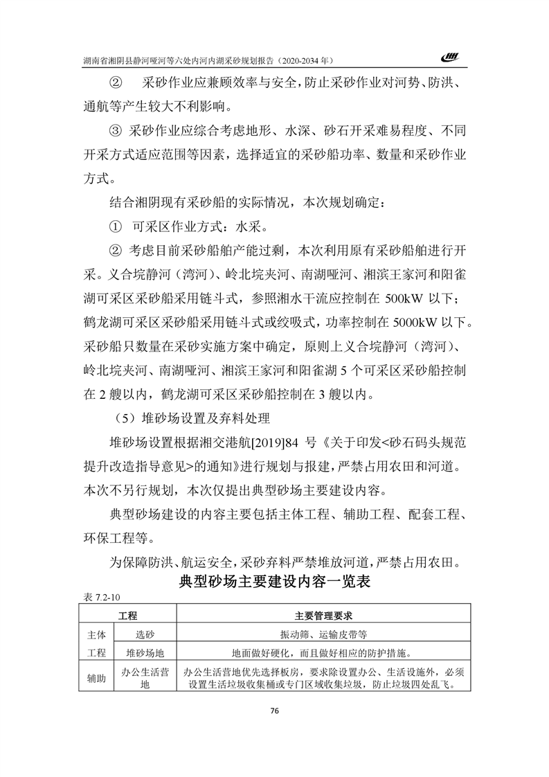 湖南省湘阴县静河哑河等六处内河内湖采砂规划报告