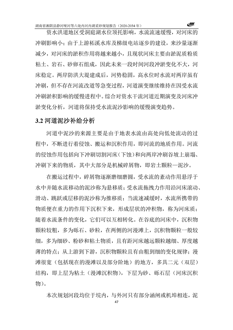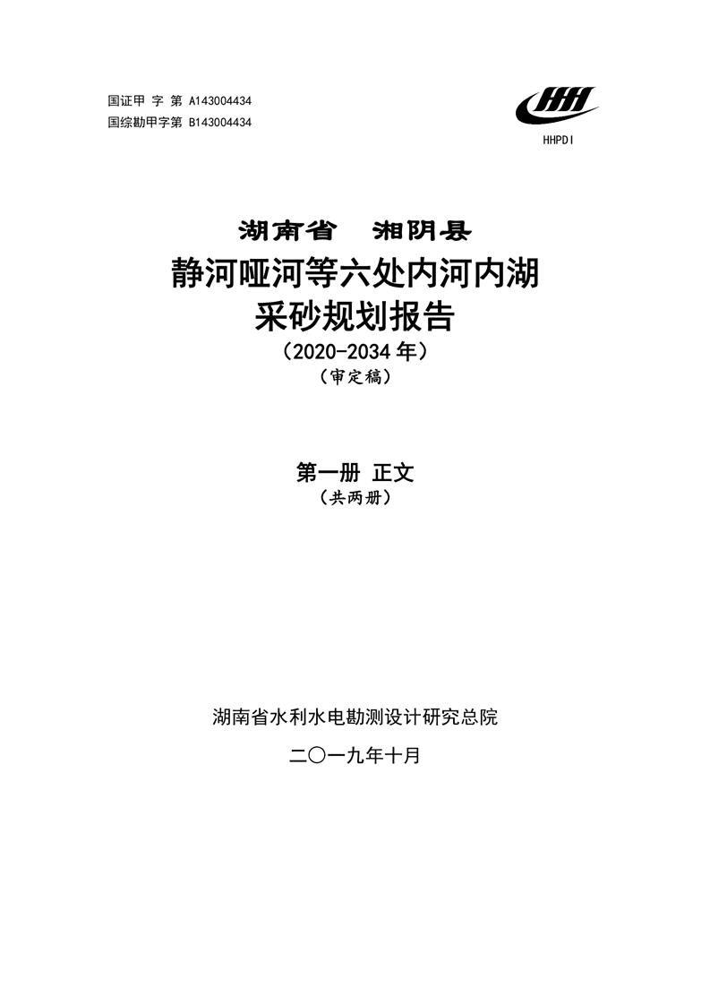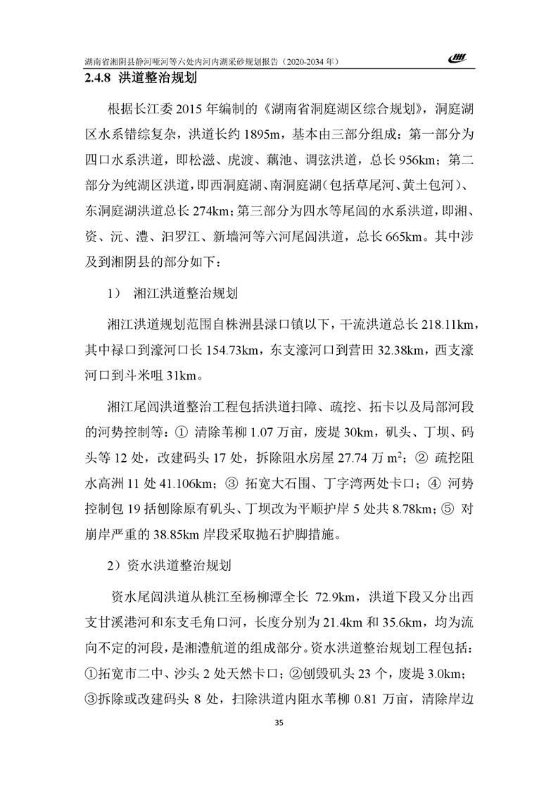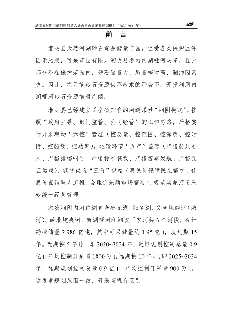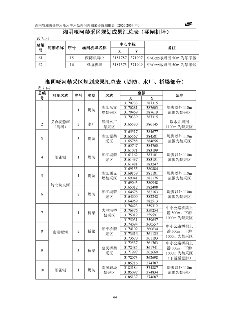 湖南省湘阴县静河哑河等六处内河内湖采砂规划报告