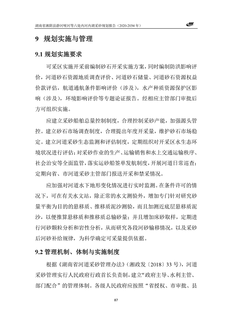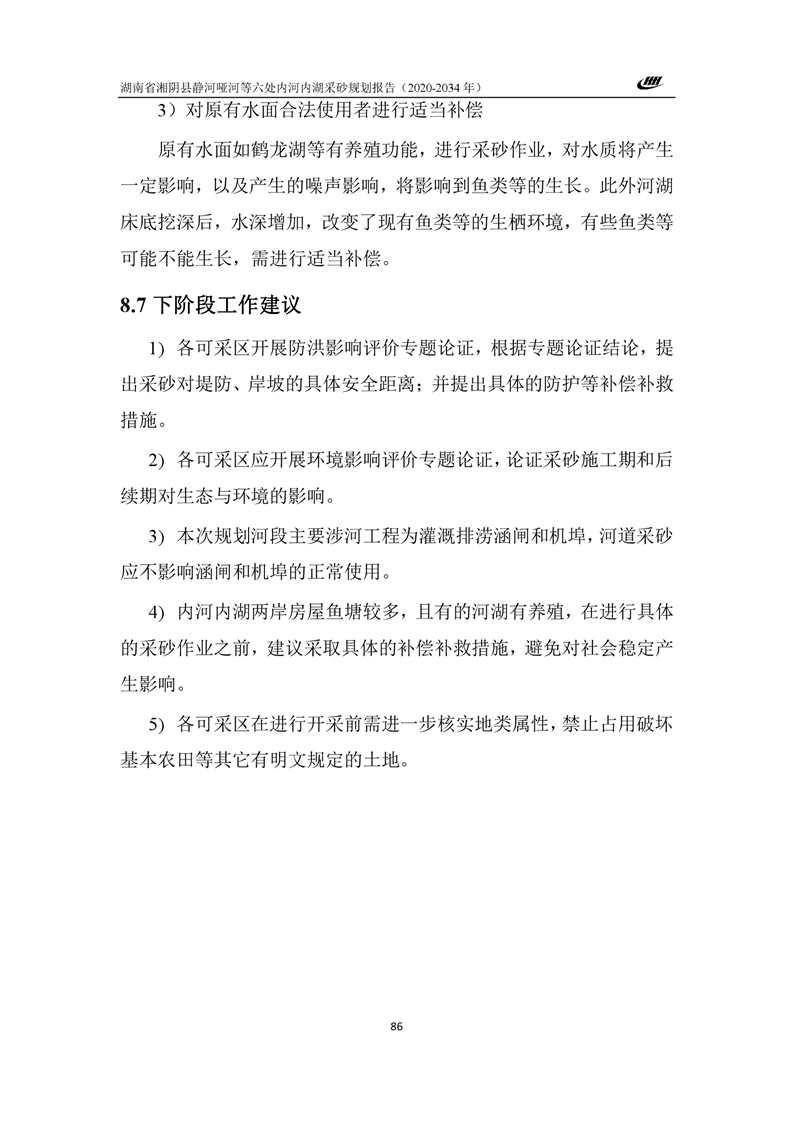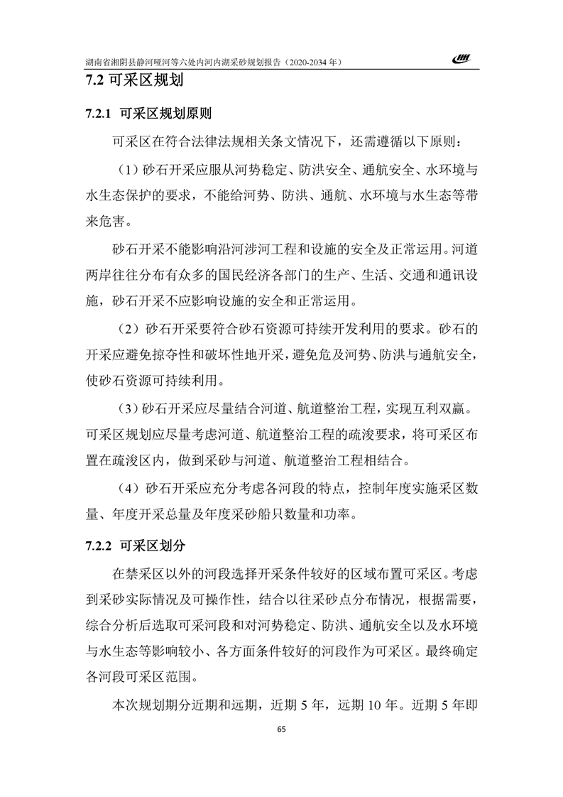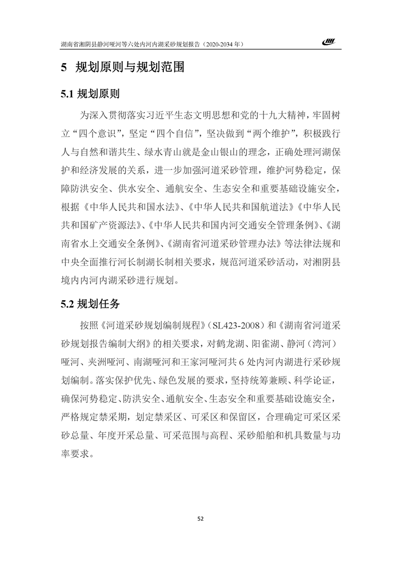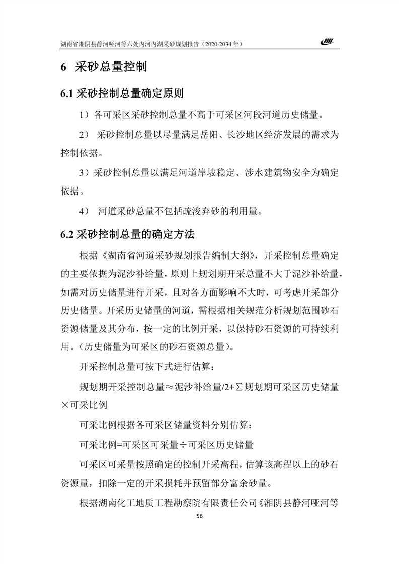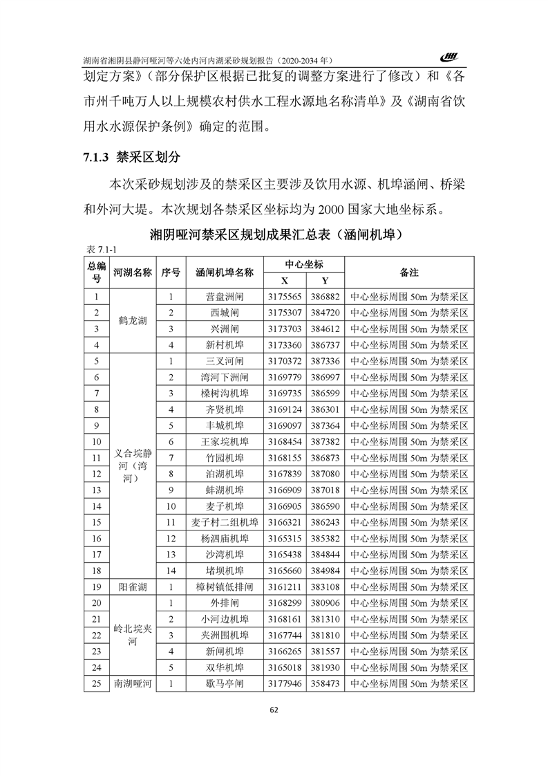 湖南省湘阴县静河哑河等六处内河内湖采砂规划报告