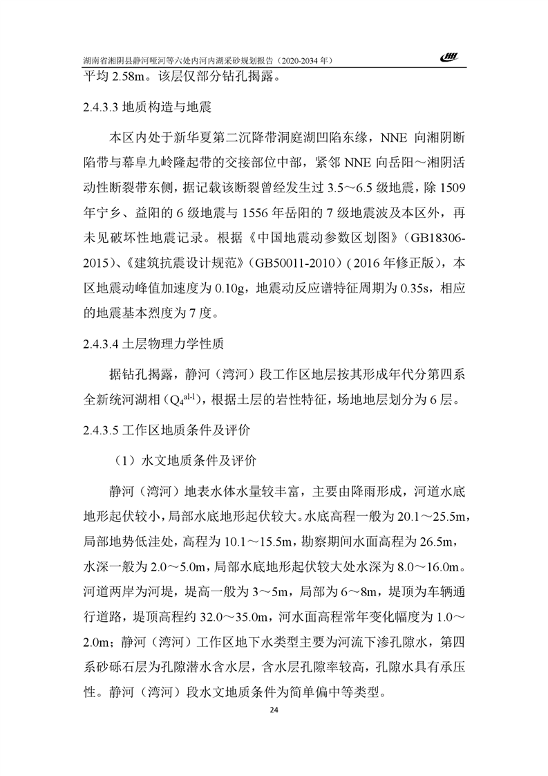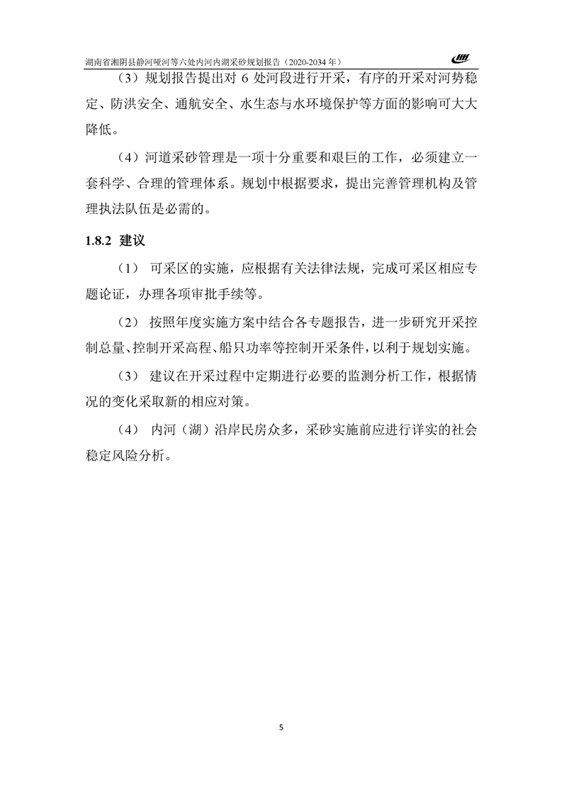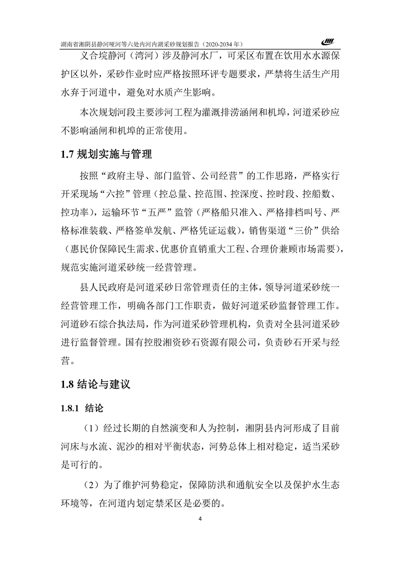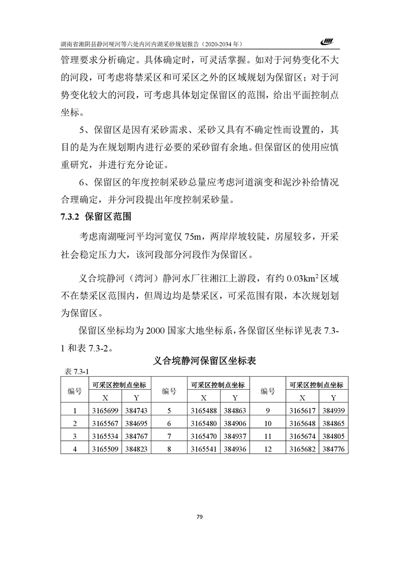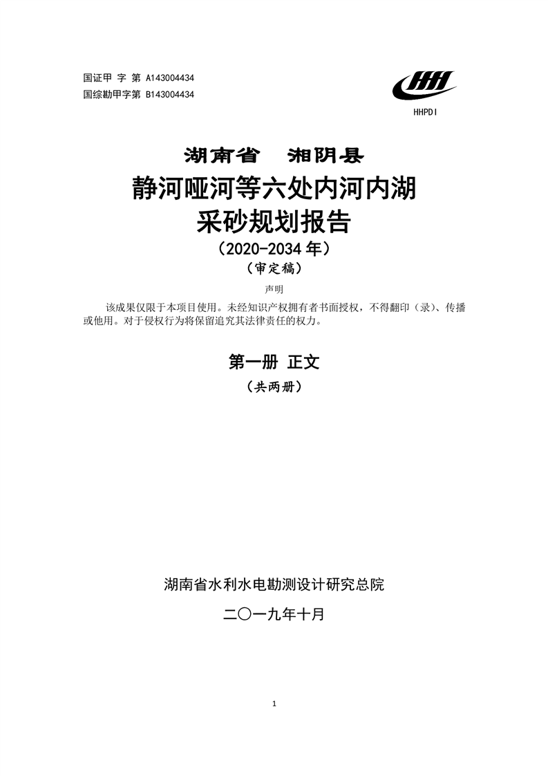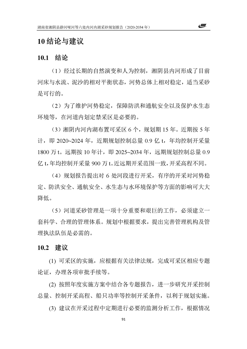 湖南省湘阴县静河哑河等六处内河内湖采砂规划报告