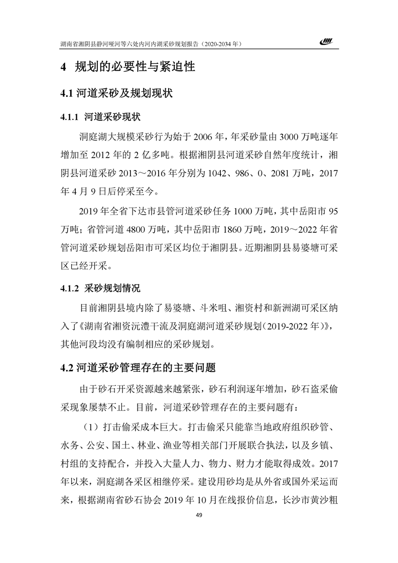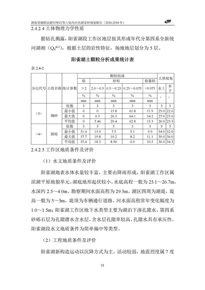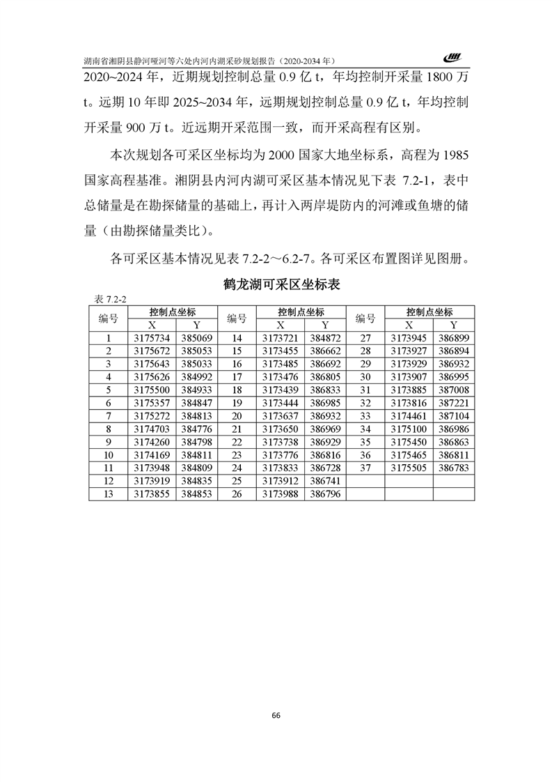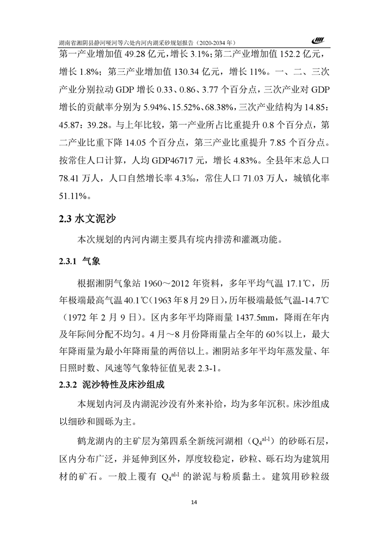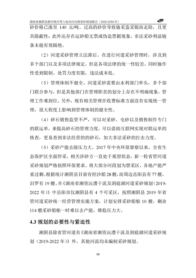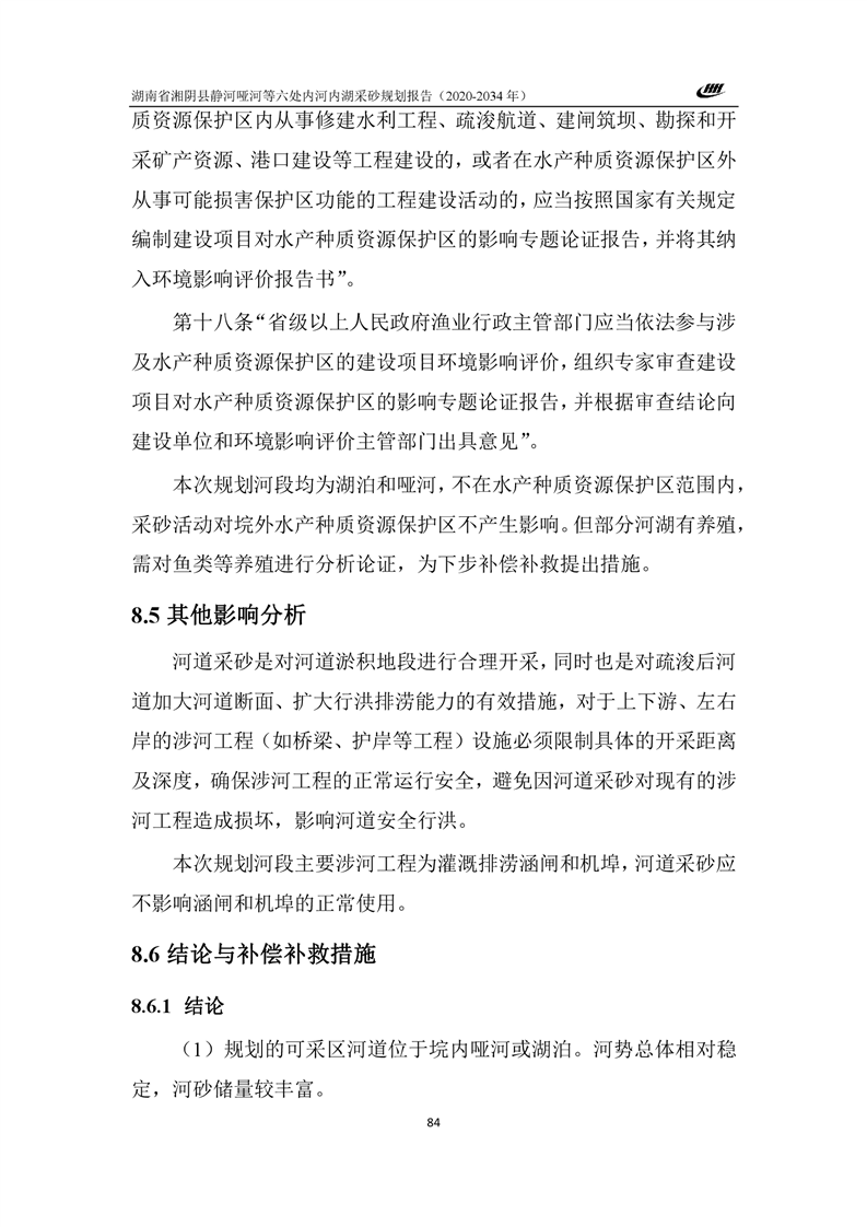 湖南省湘阴县静河哑河等六处内河内湖采砂规划报告