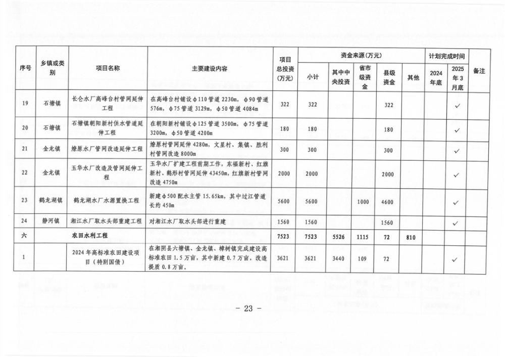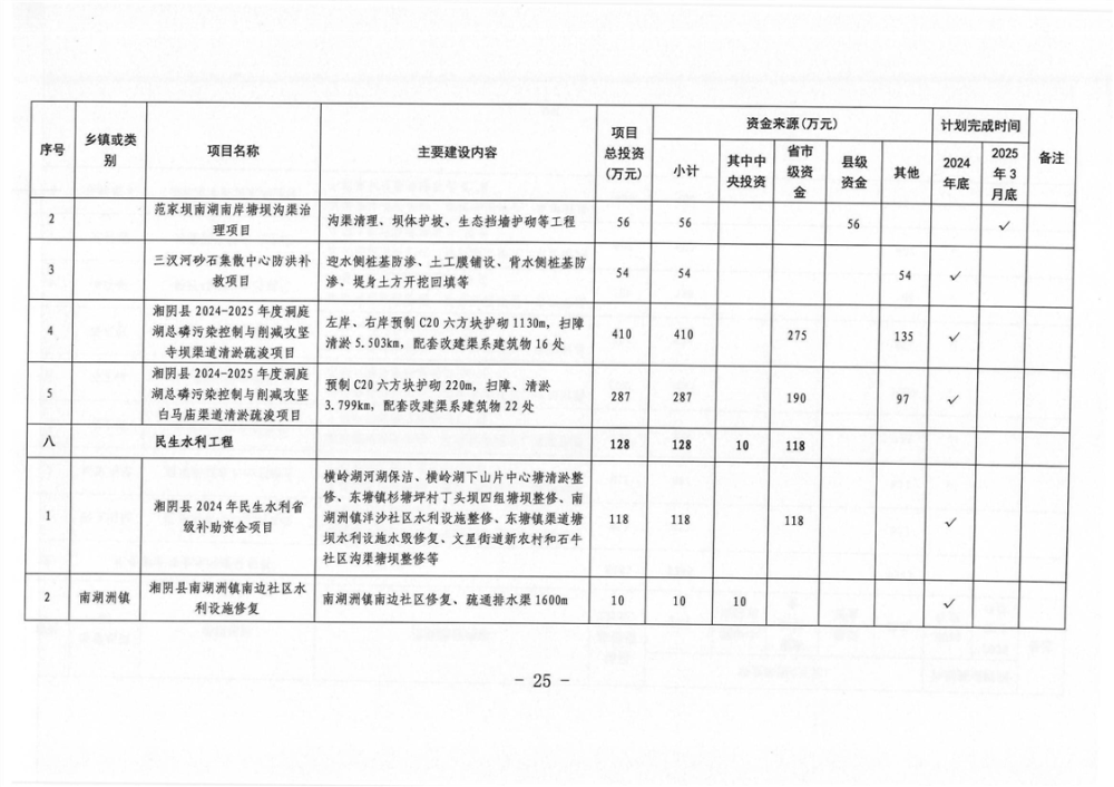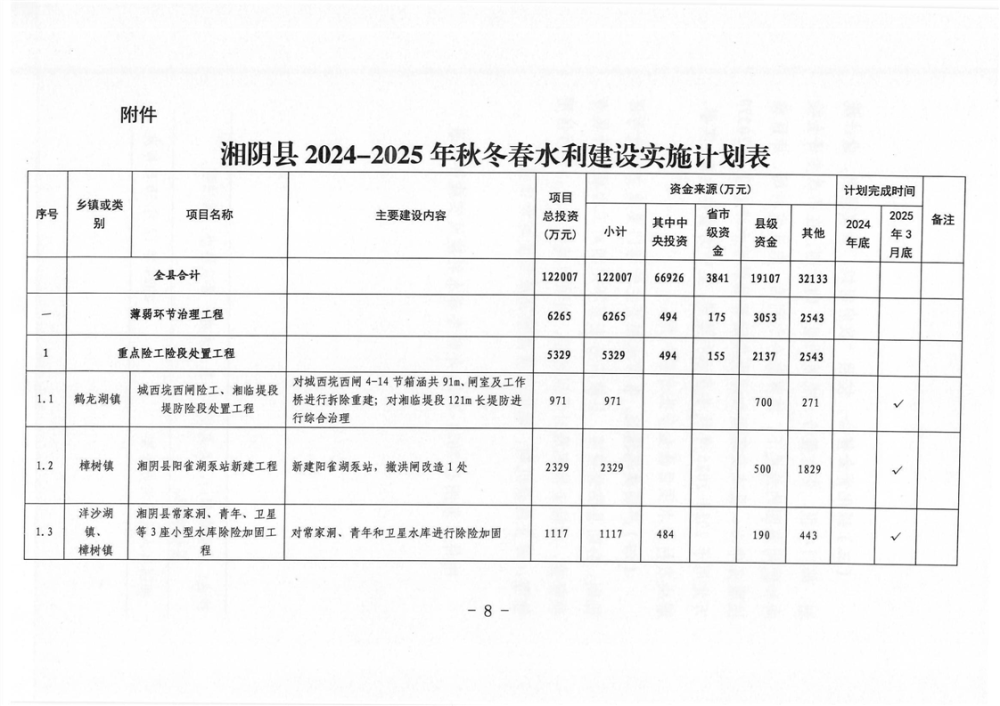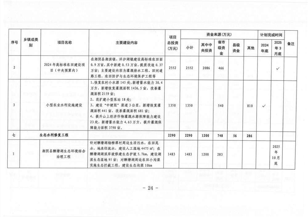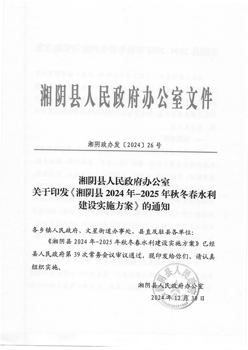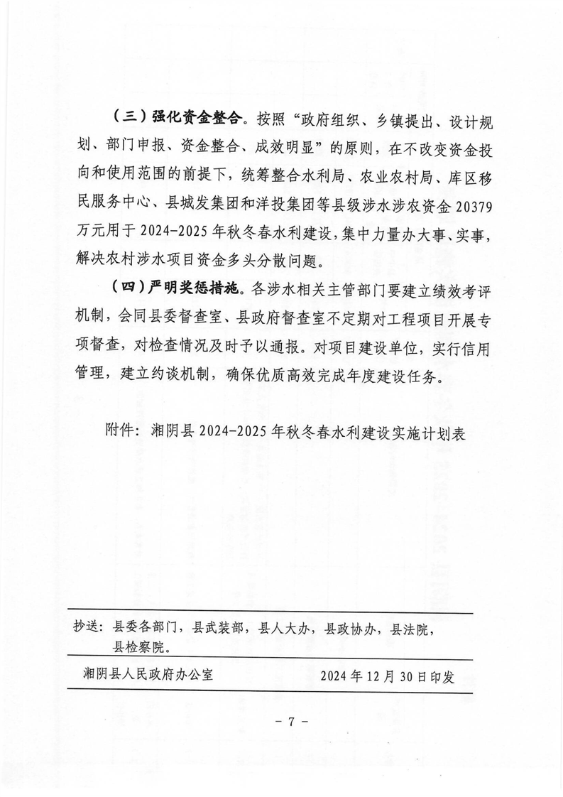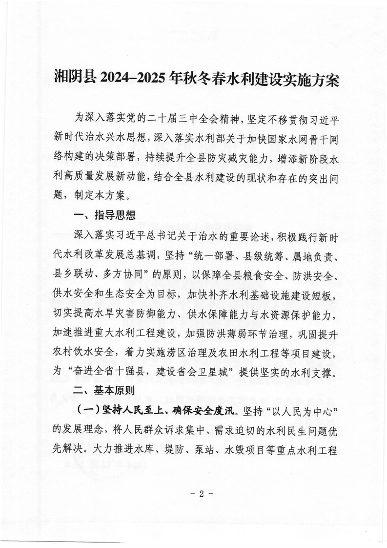 关于印发《湘阴县2024年-2025年秋冬春水利建设实施方案》