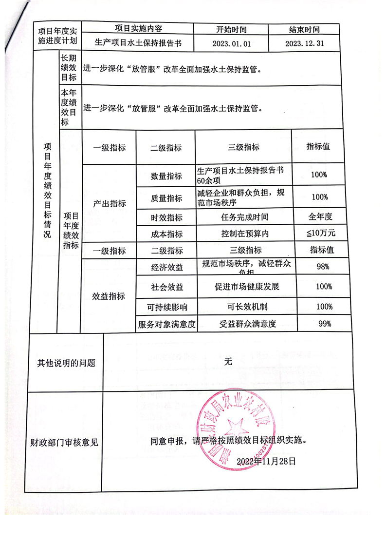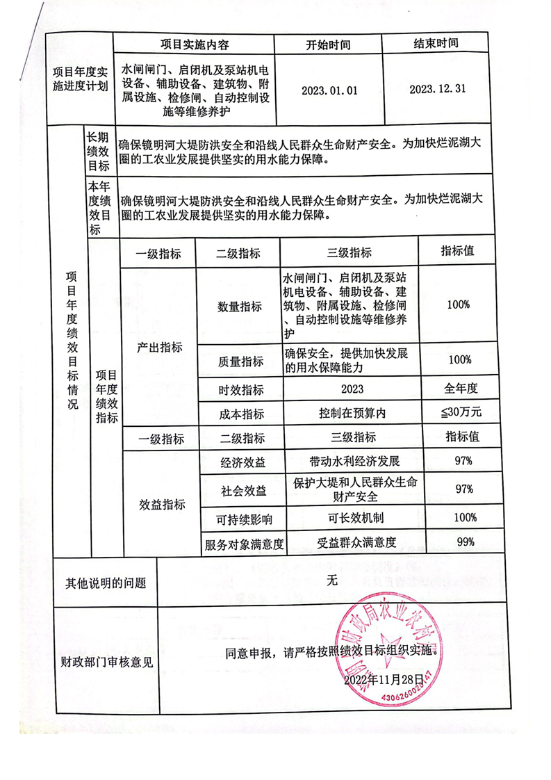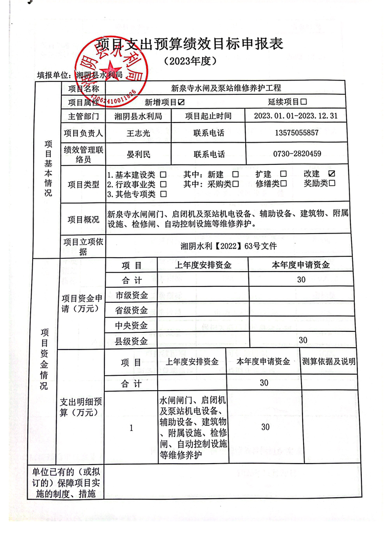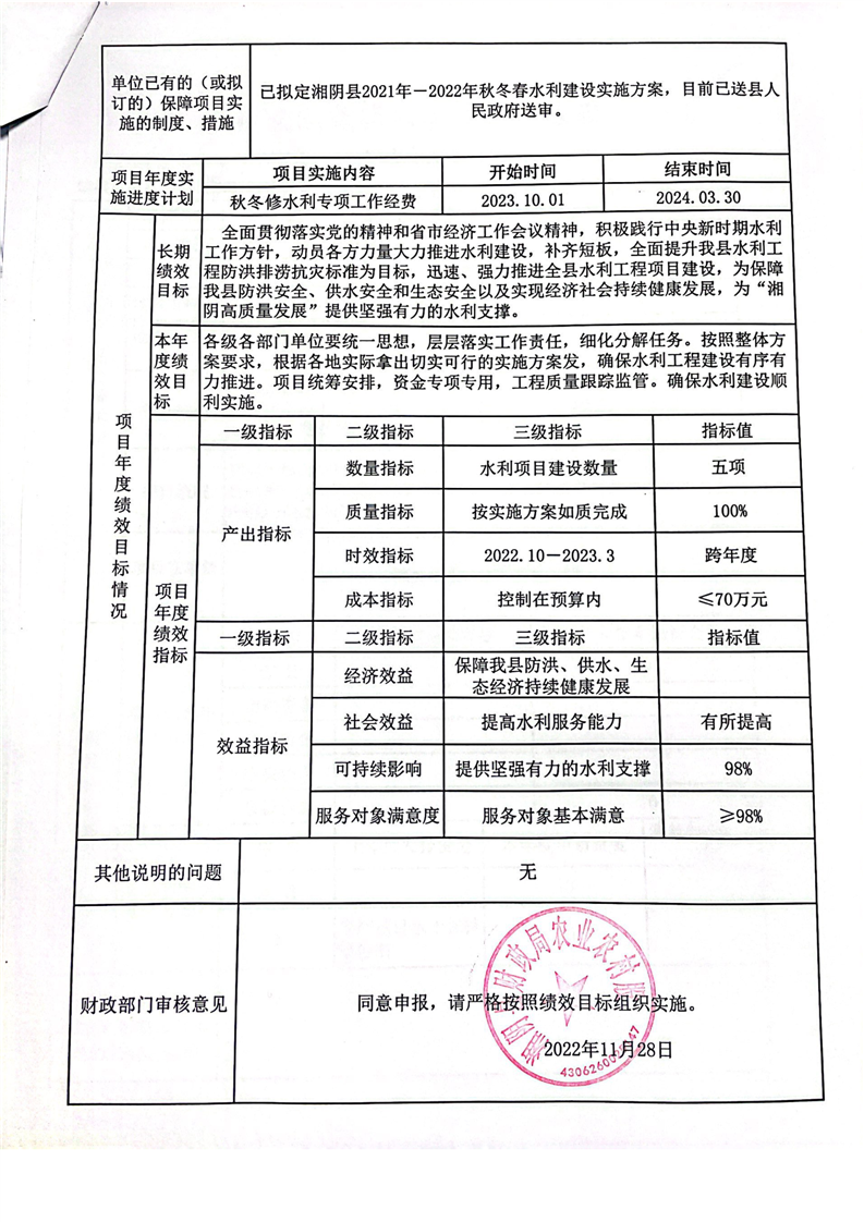 2023年度湘阴县水利局财政专项项目预算绩效目标申报表