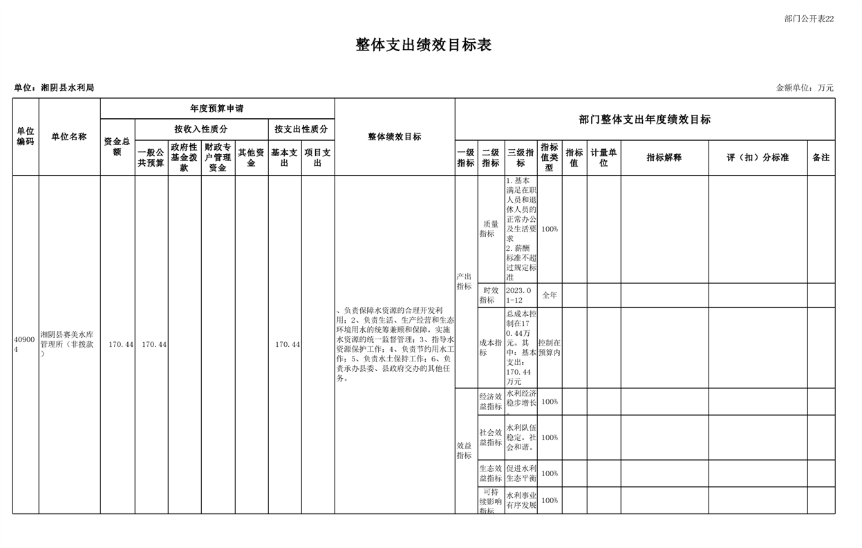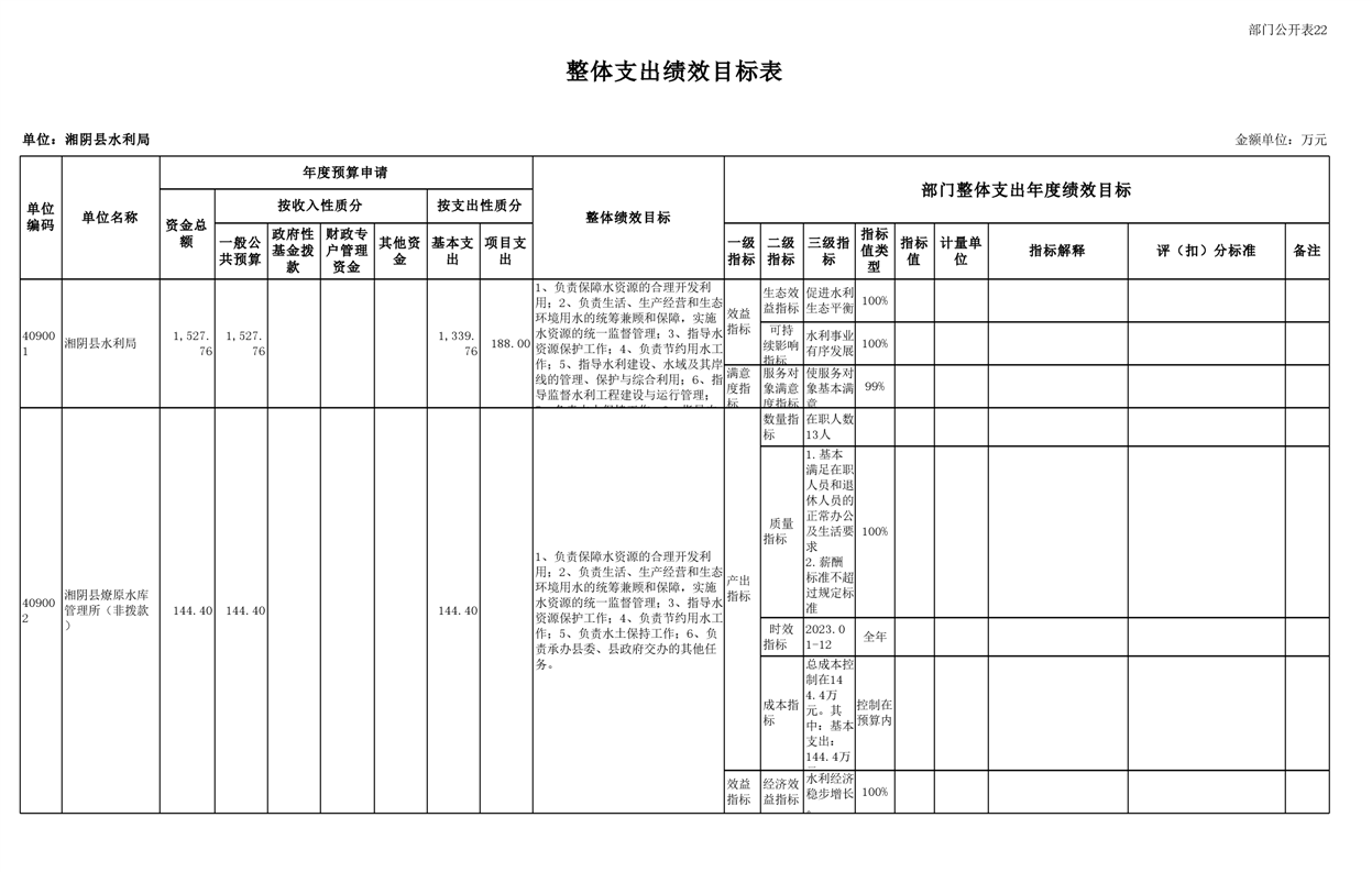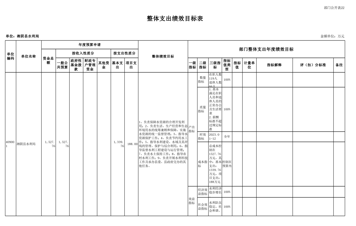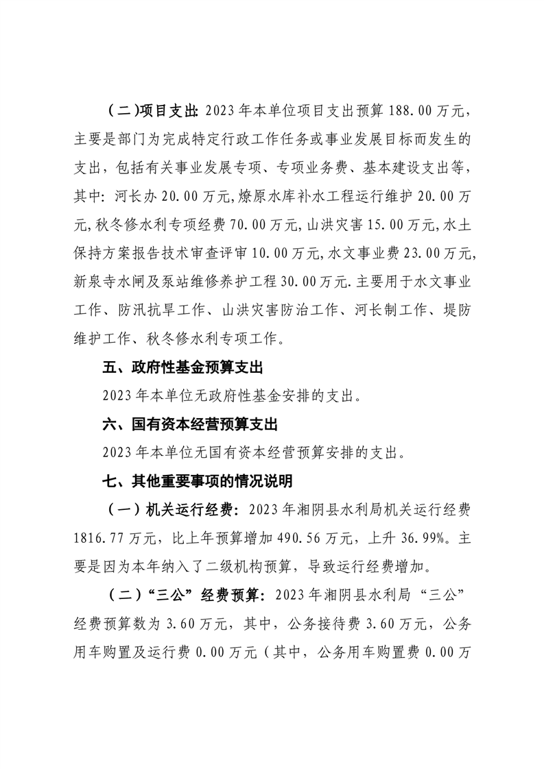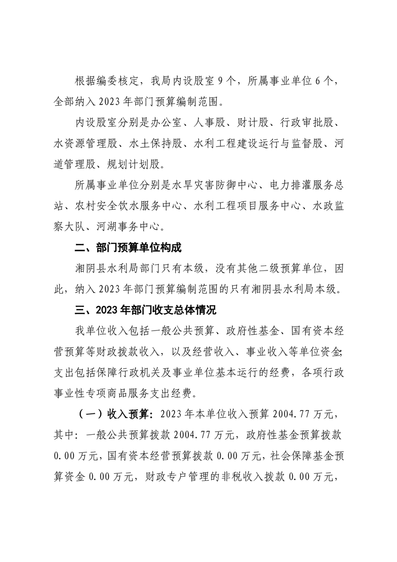 2023年湘阴县水利局部门预算
