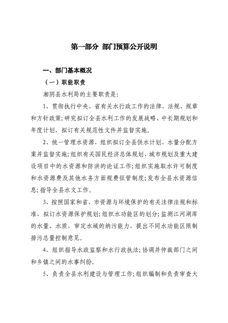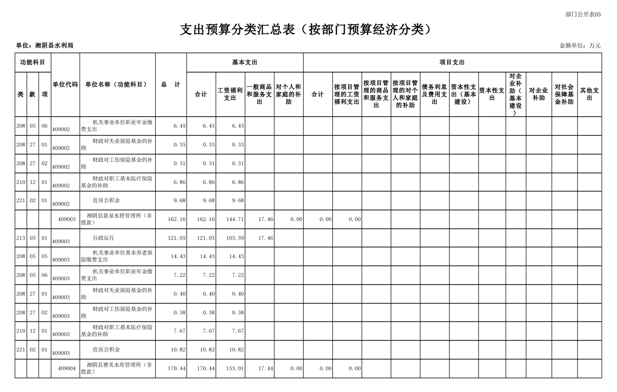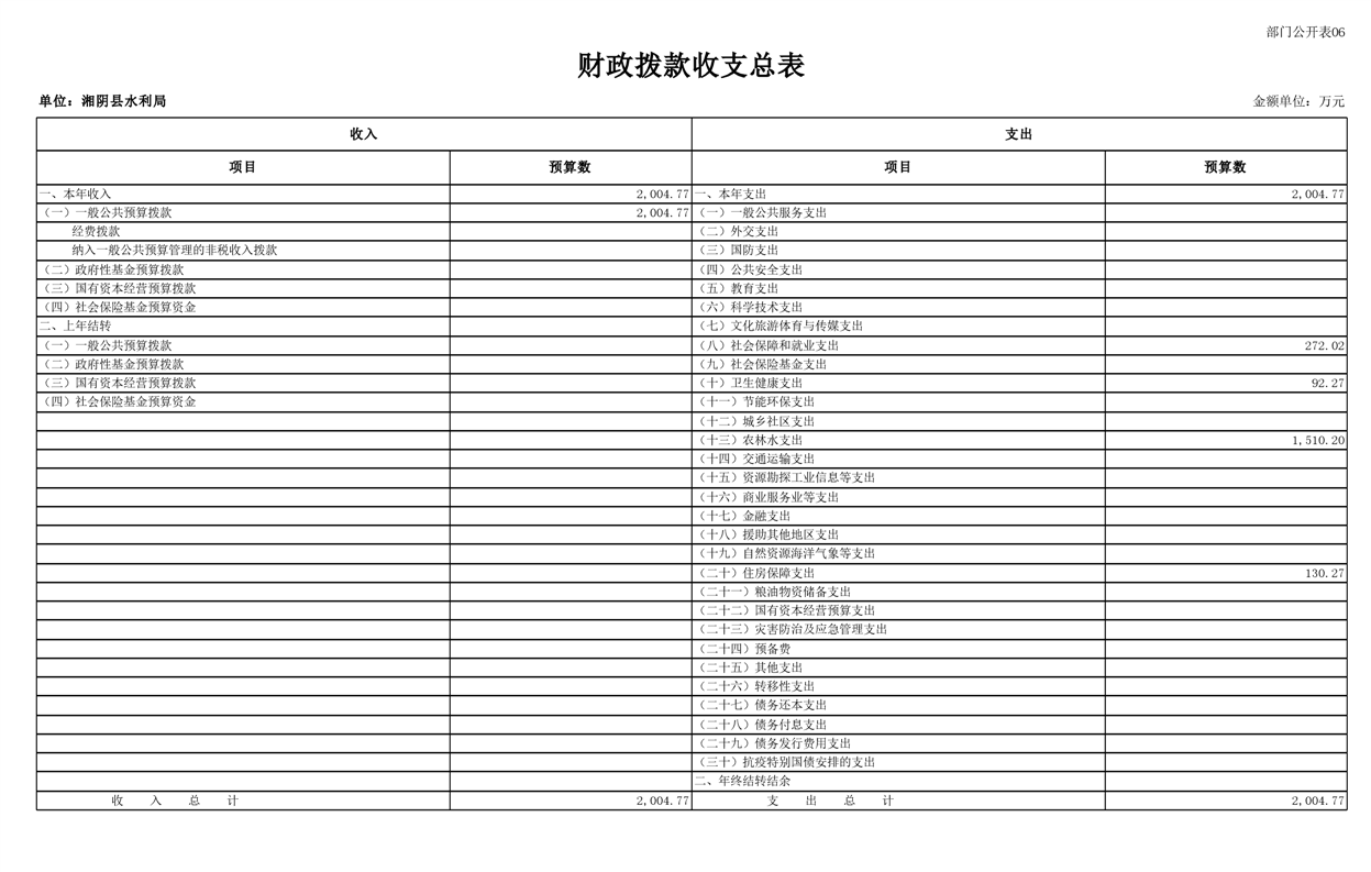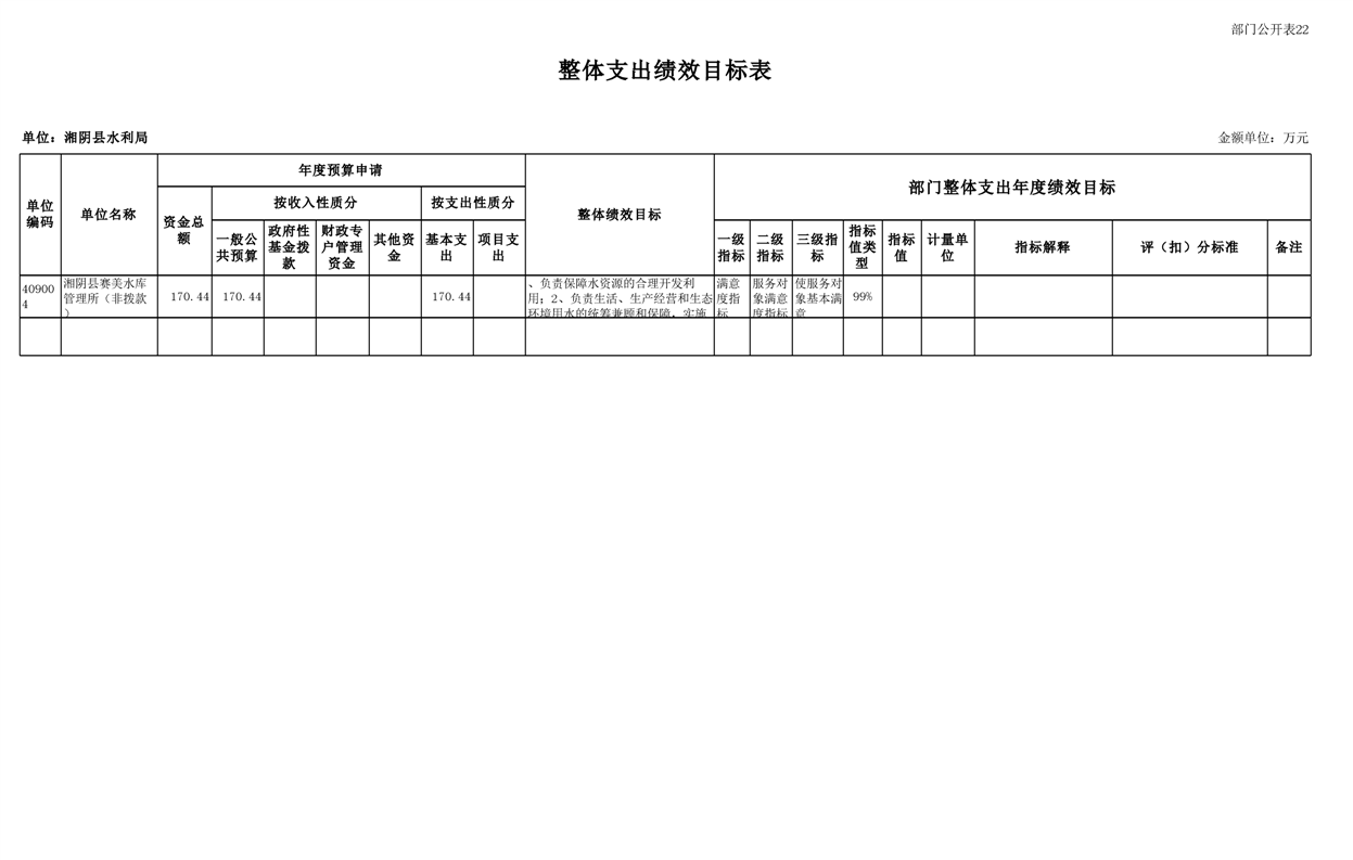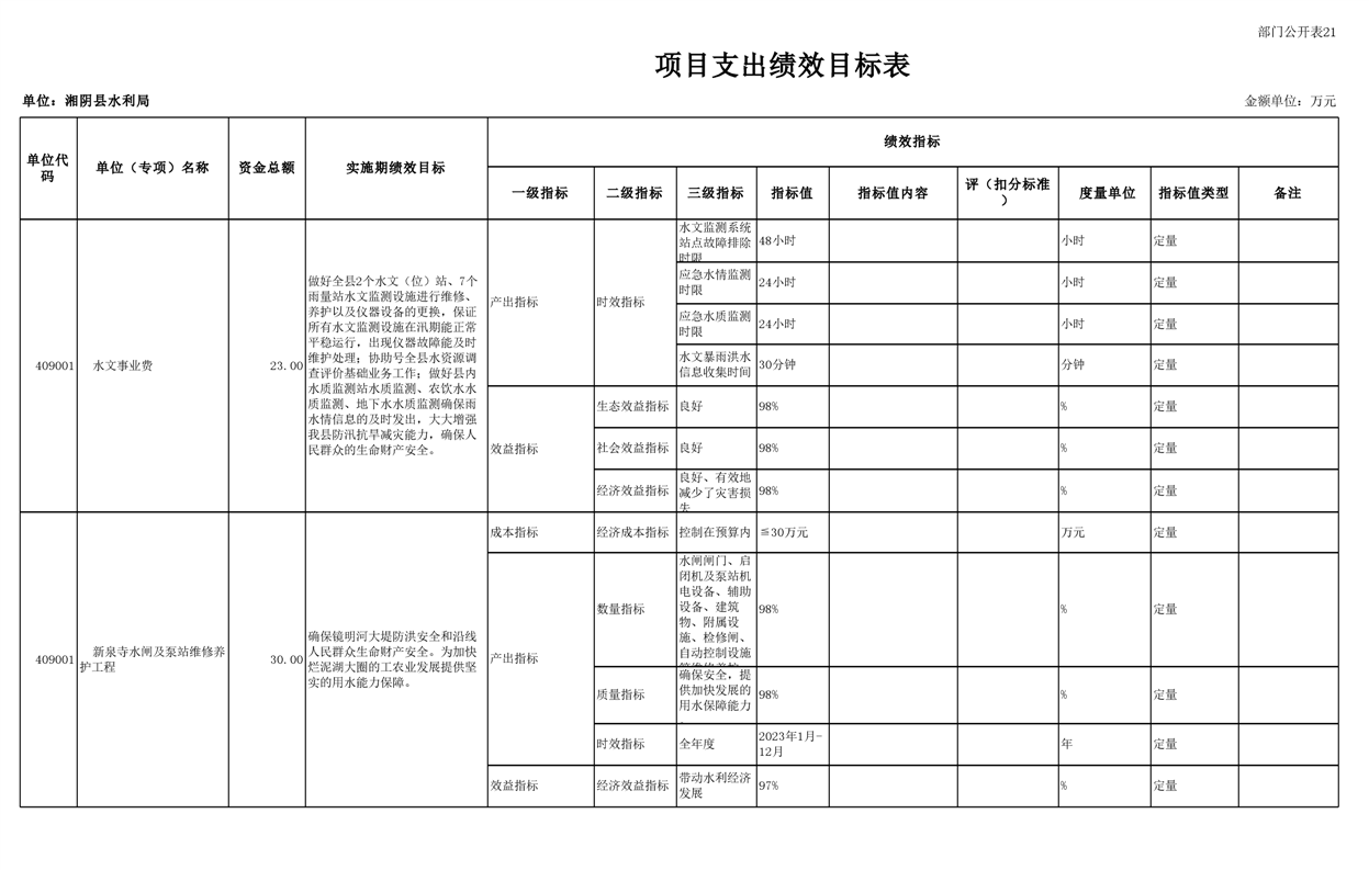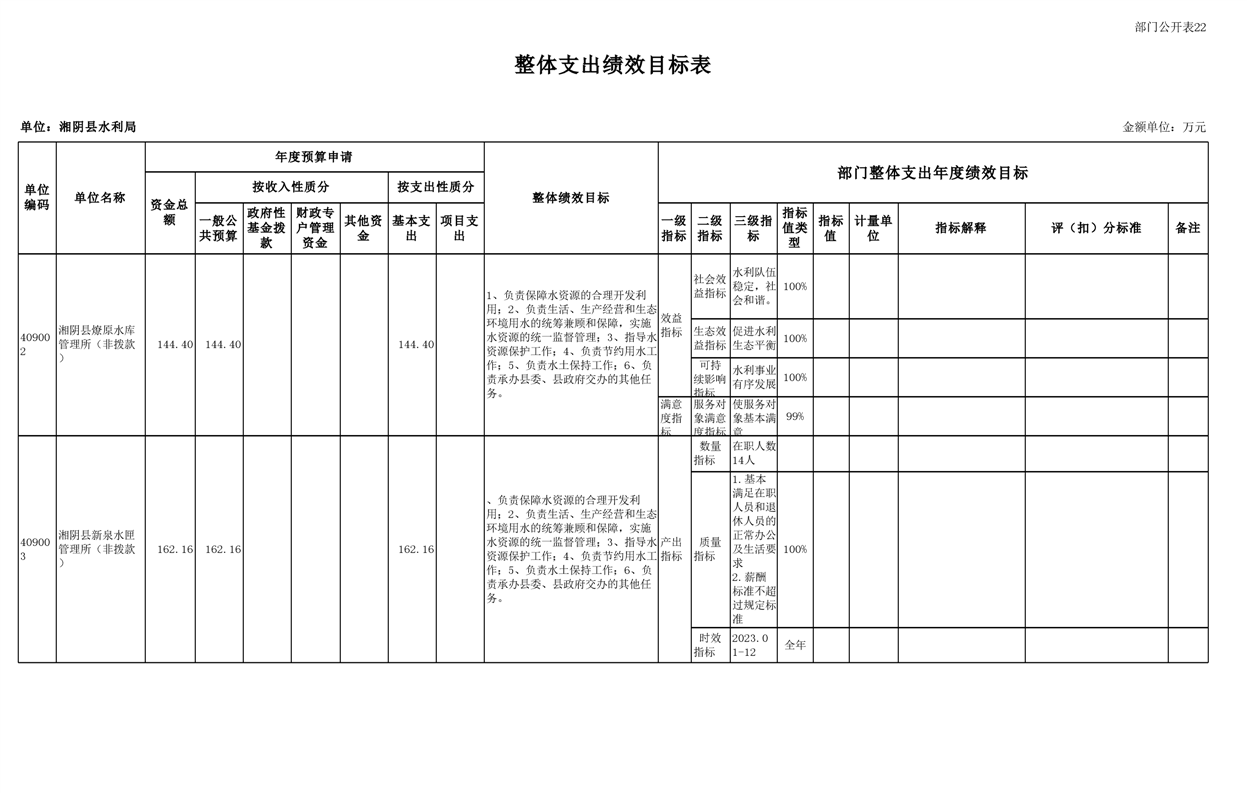 2023年湘阴县水利局部门预算