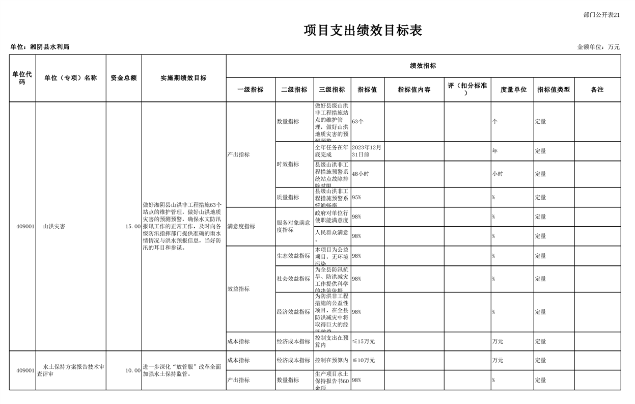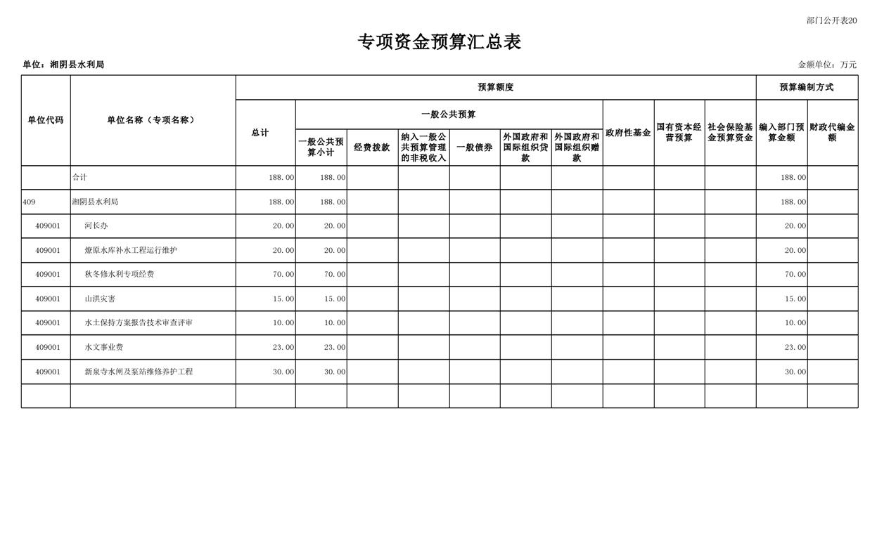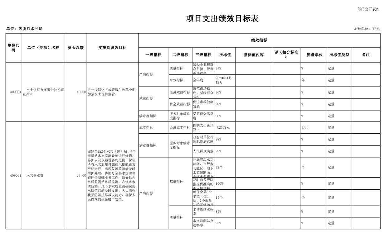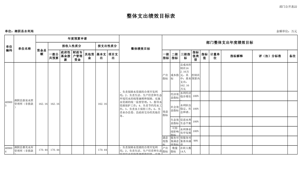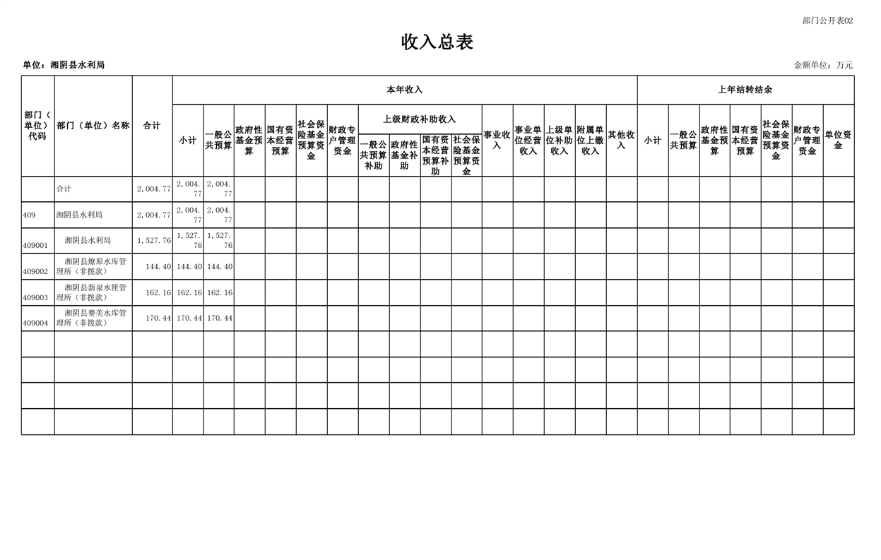 2023年湘阴县水利局部门预算
