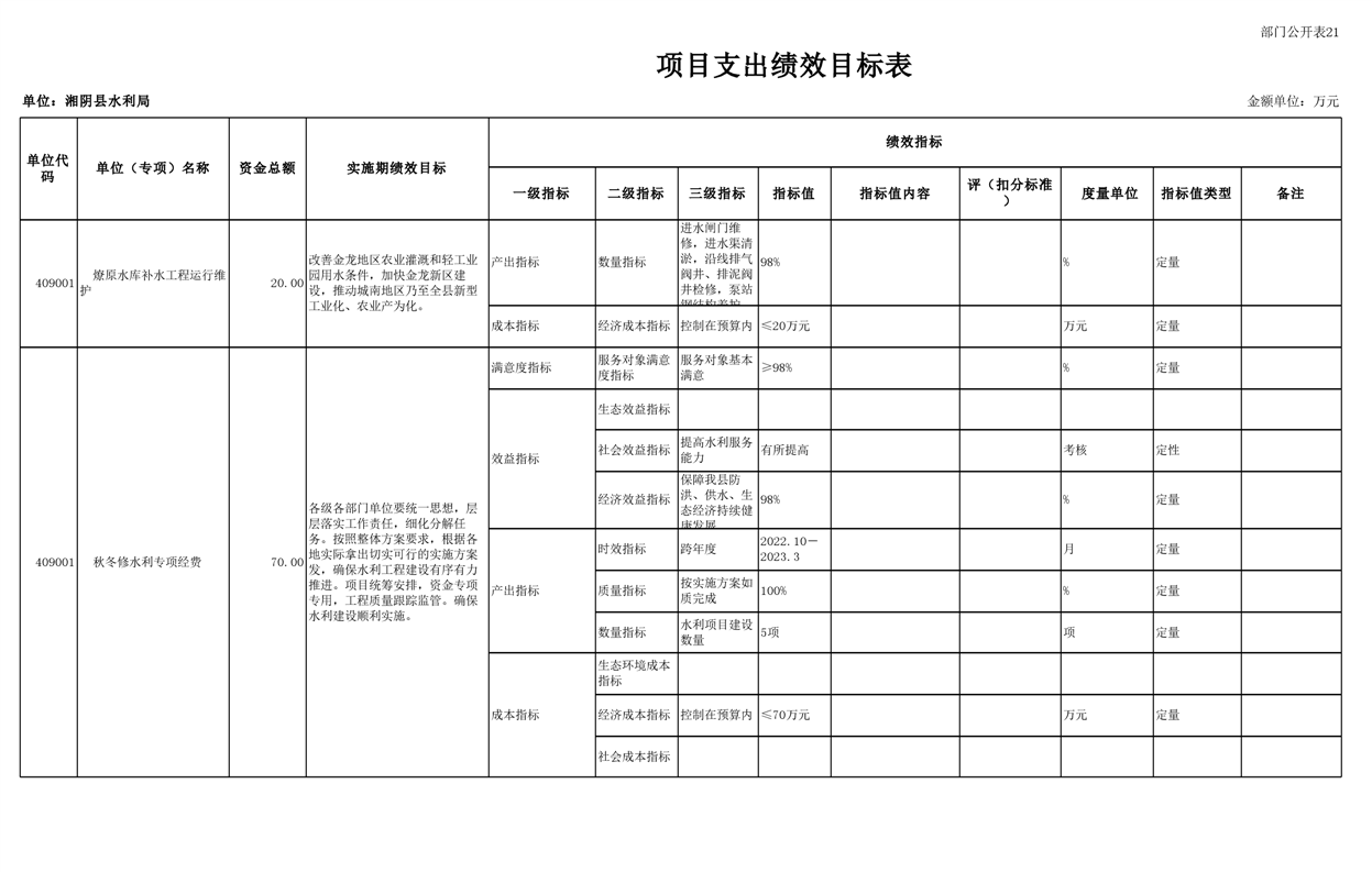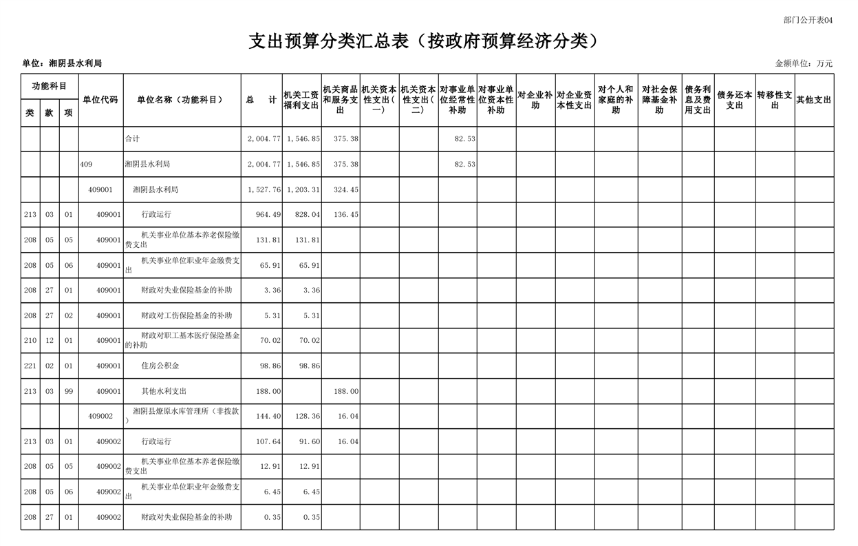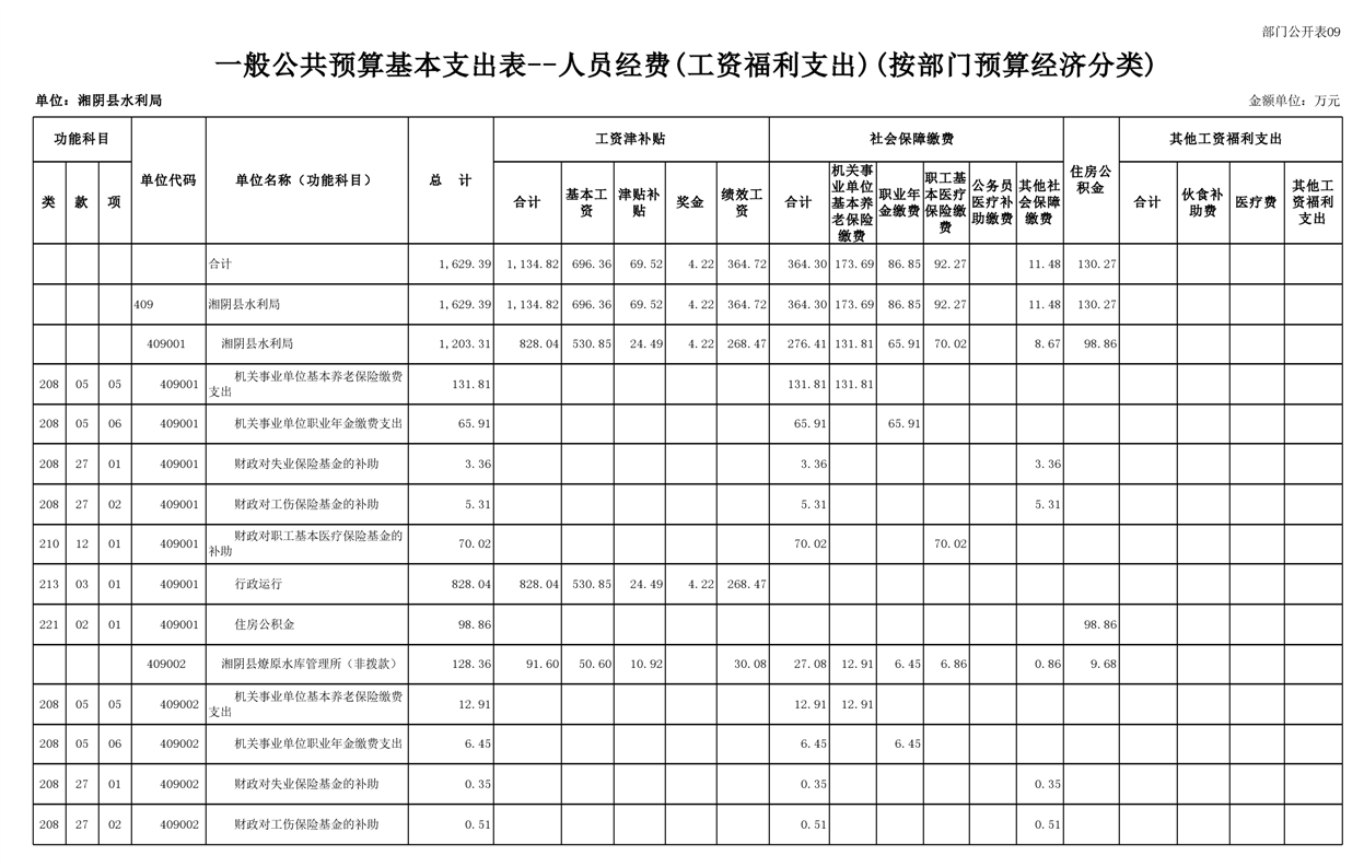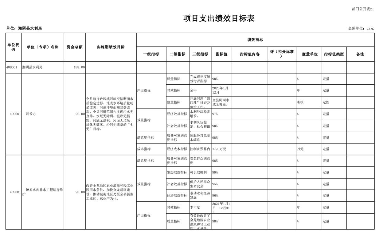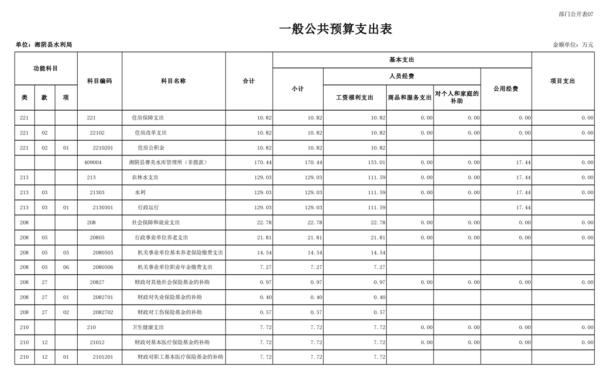 2023年湘阴县水利局部门预算