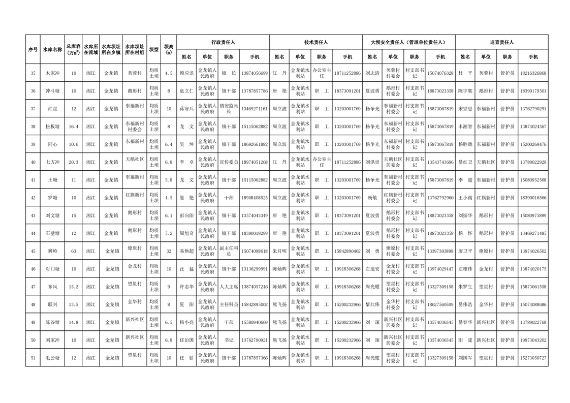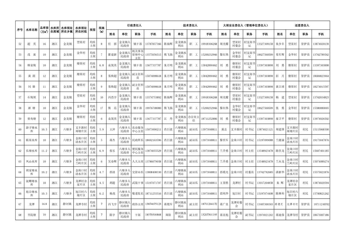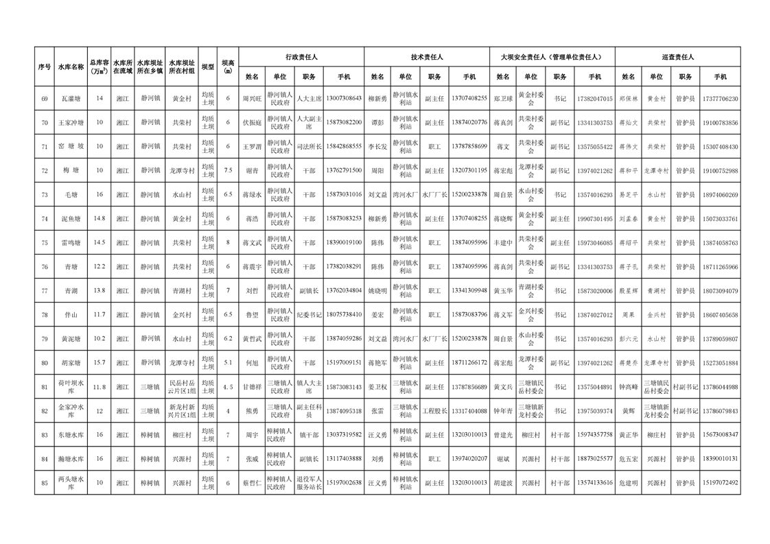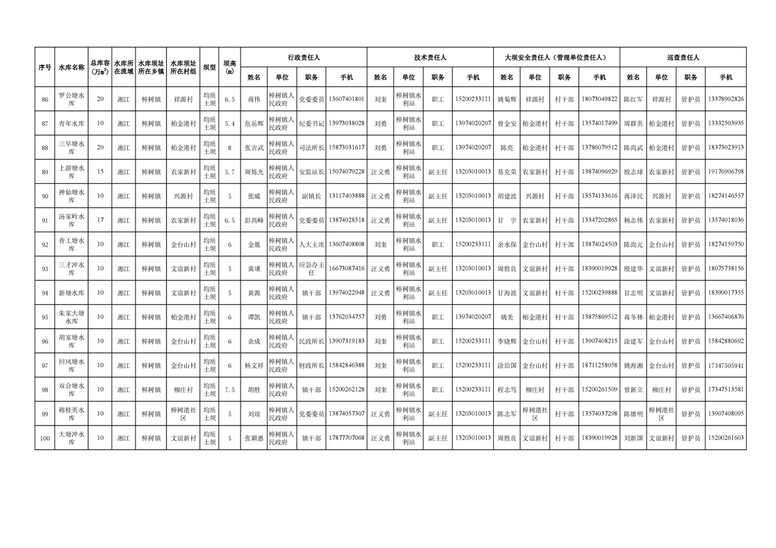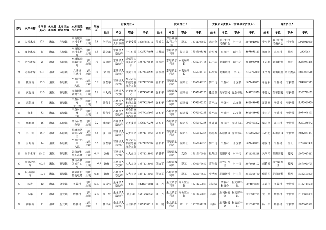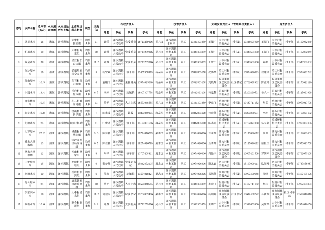 附件:湘阴县小型水库大坝安全管理(防汛)责任人名单
