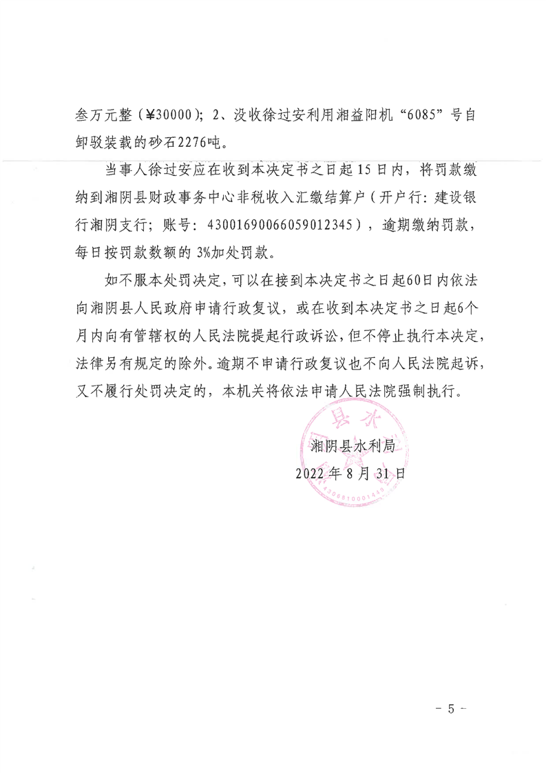 行政处罚决定书( 湘水罚决字〔2022〕10号)