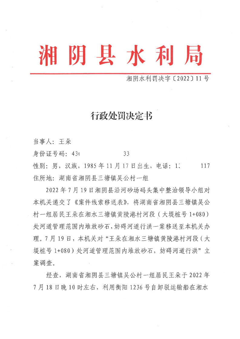 行政处罚决定书(11号)