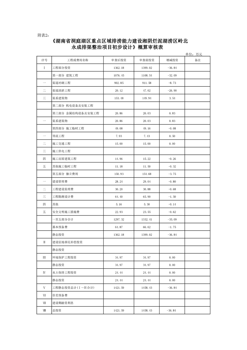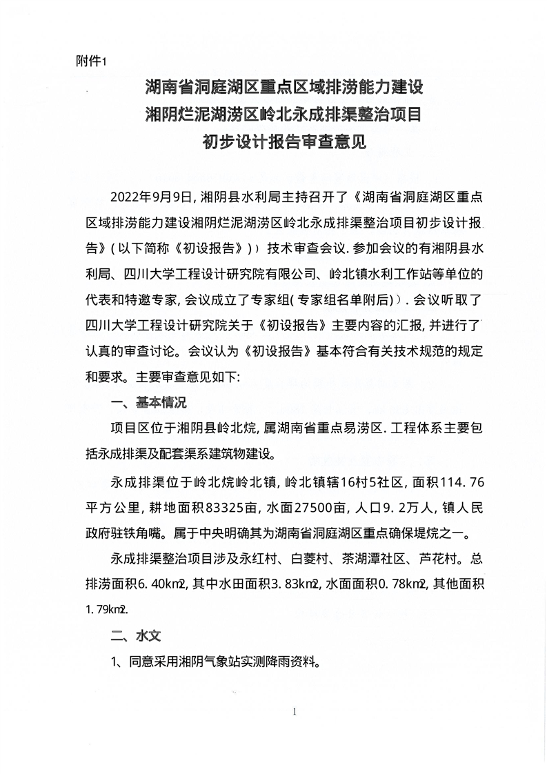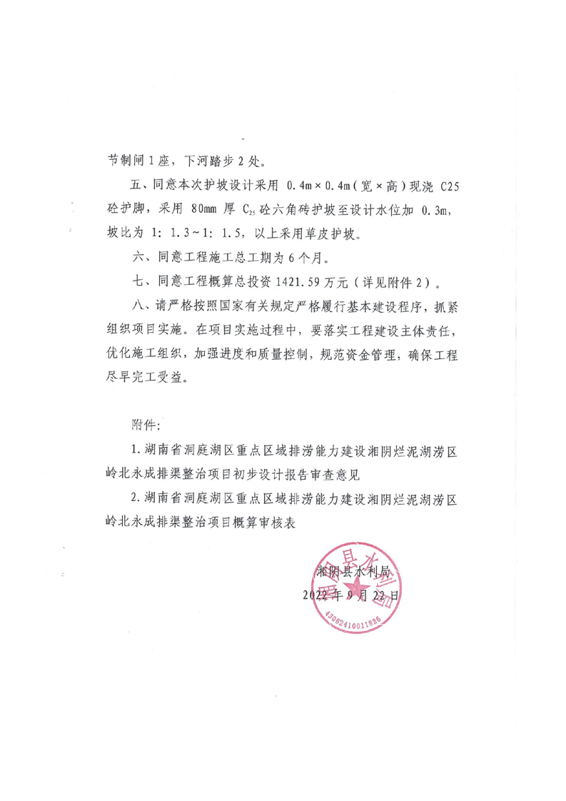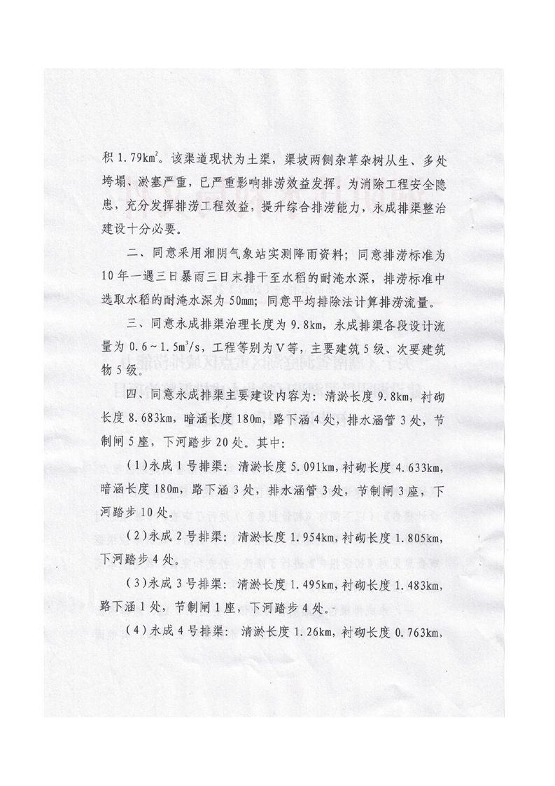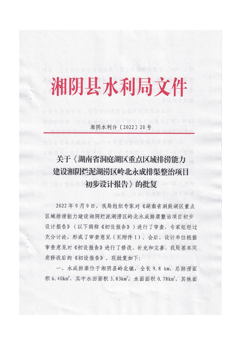 关于湖南省洞庭湖区重点区域排涝能力建设湘阴烂泥湖区岭北永成排渠整治项目初步设计报告的批复