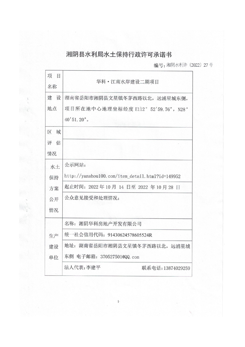 华科.江南水岸建设二期项目水土保持行政许可承诺书