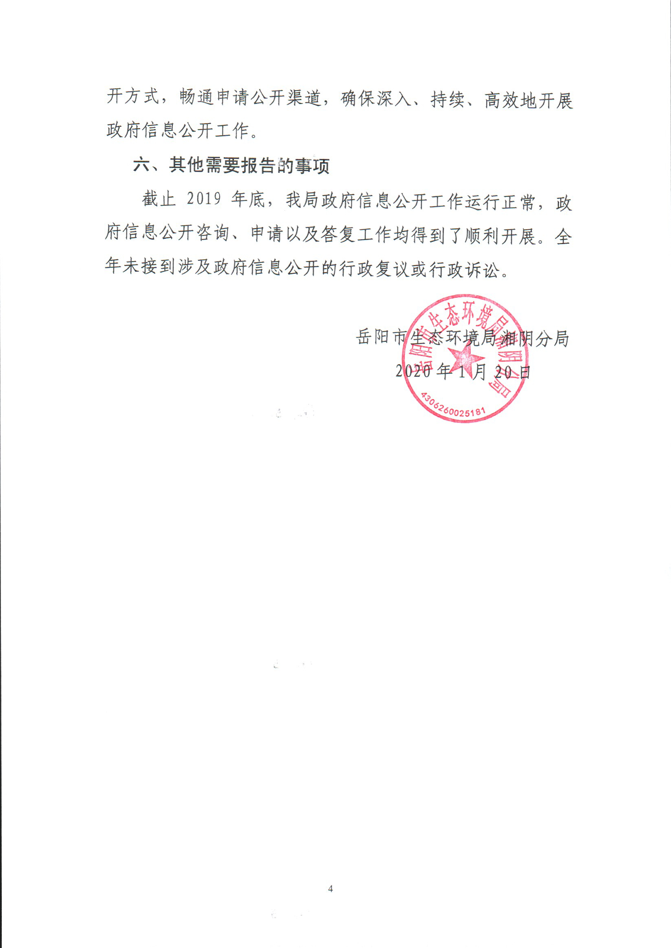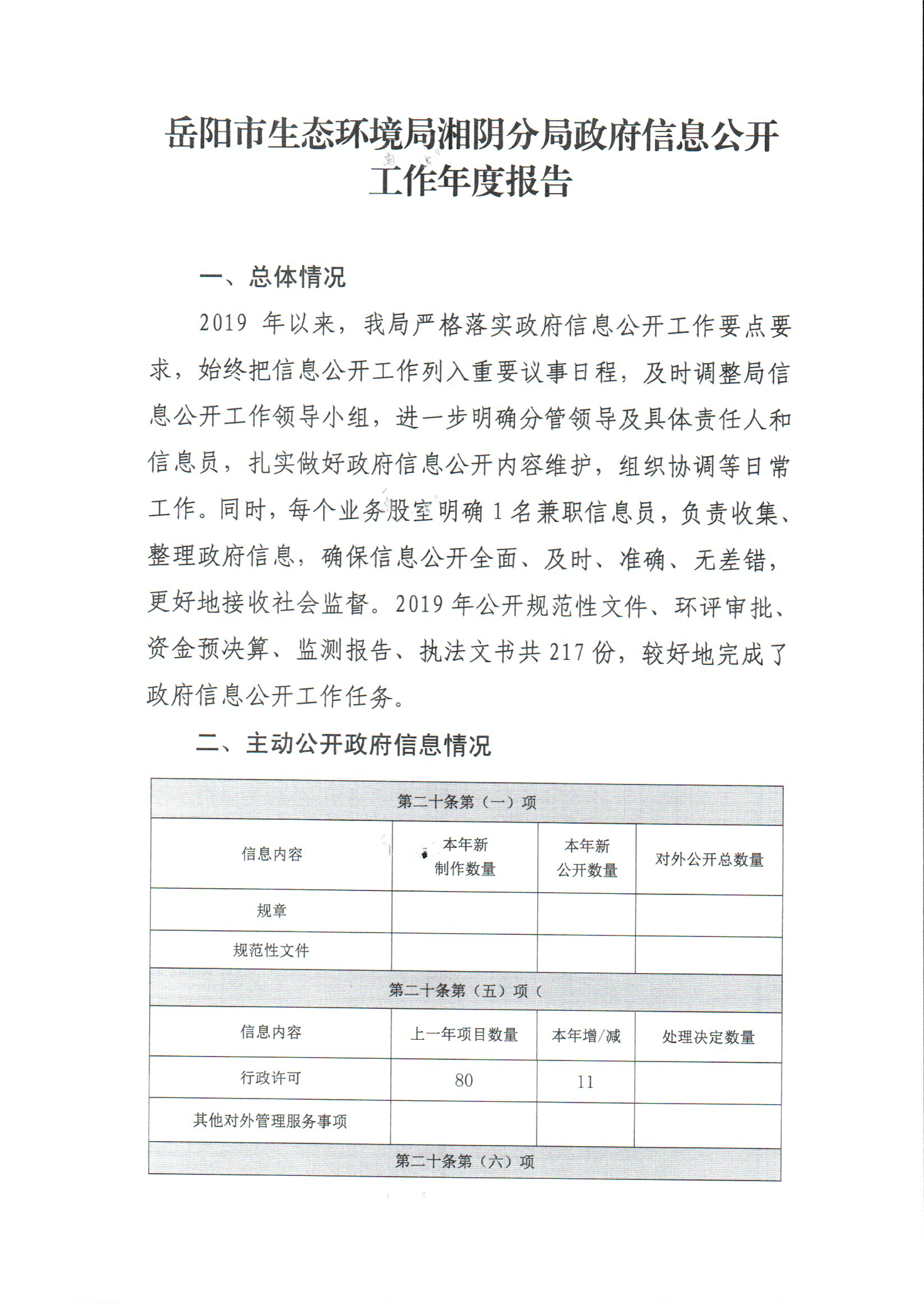 岳阳市生态环境局湘阴分局2019年政府信息公开工作年度报告