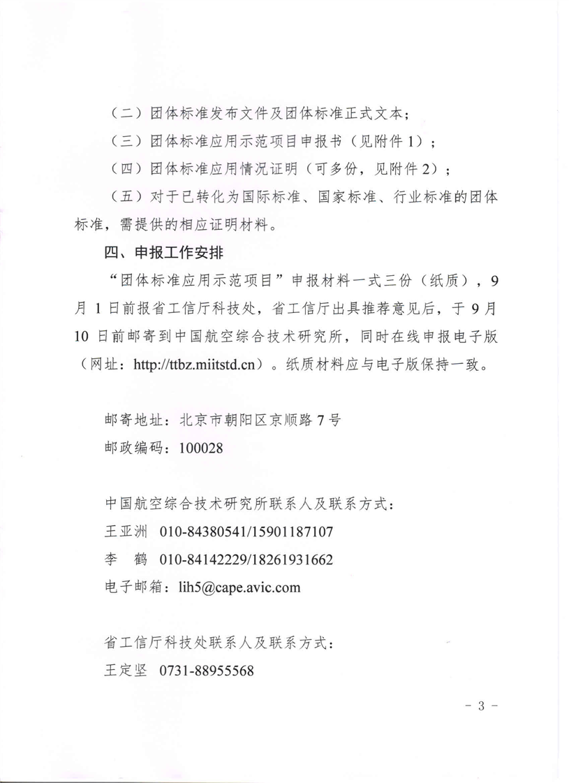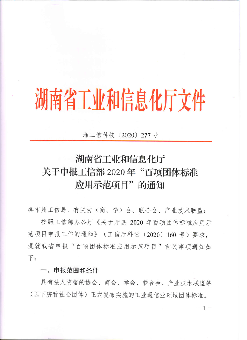 关于申报工信部“百项团体标准应用示范项目”的通知