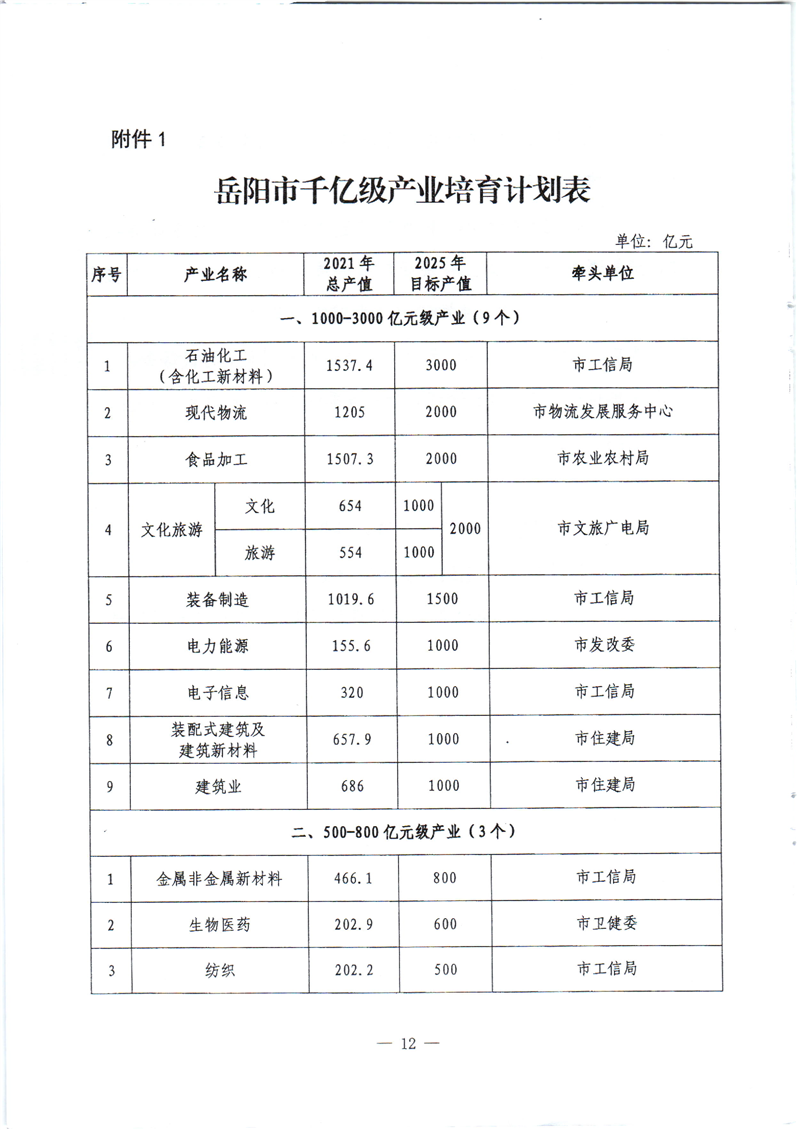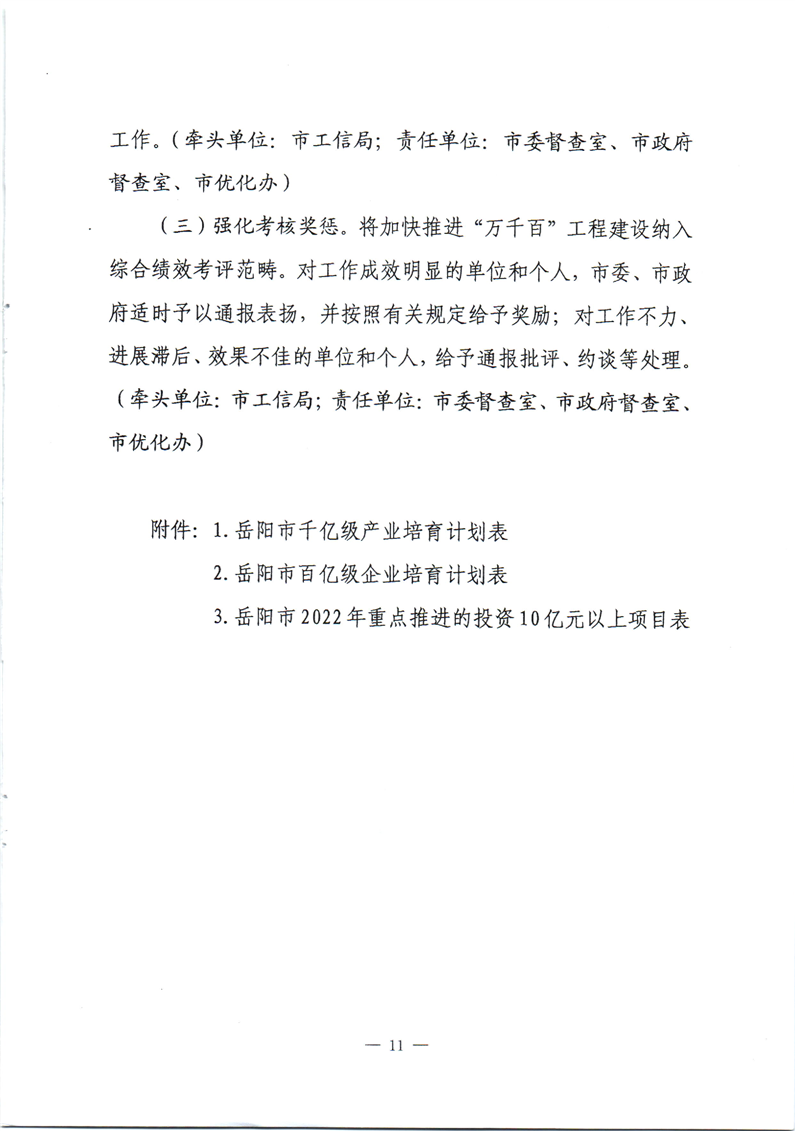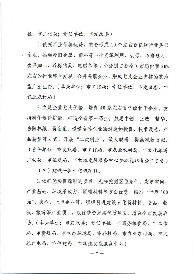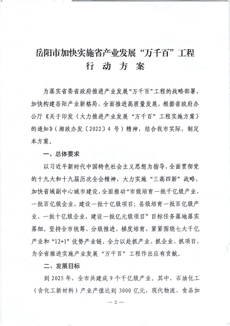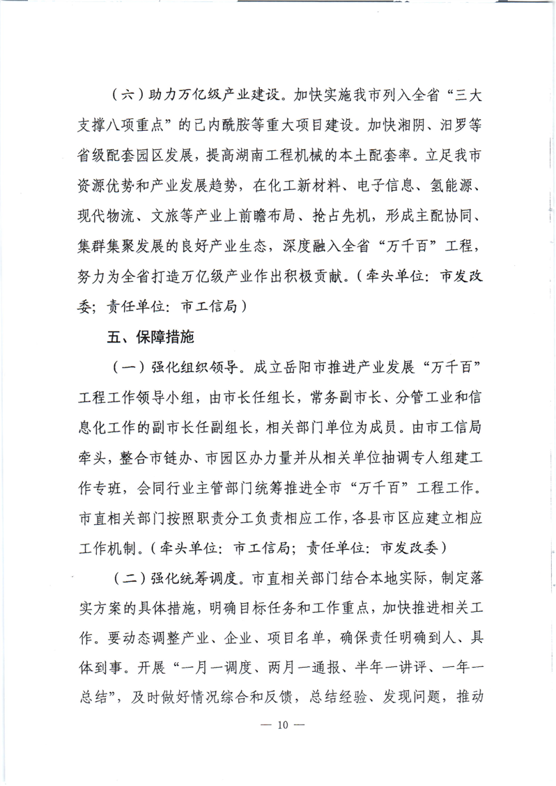 岳阳市人民政府办公室关于印发《岳阳市加快实施省产业发展“万千百”工程行动方案》的通知