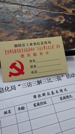 党的群众路线教育实践活动大走访中,工信局干部人手一张便民服务卡,深入生产企业、下岗职工家中大走访。