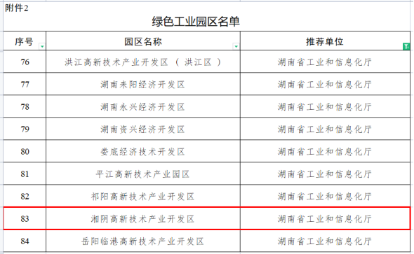 湘阴高新技术产业开发区入选国家级绿色工业园区