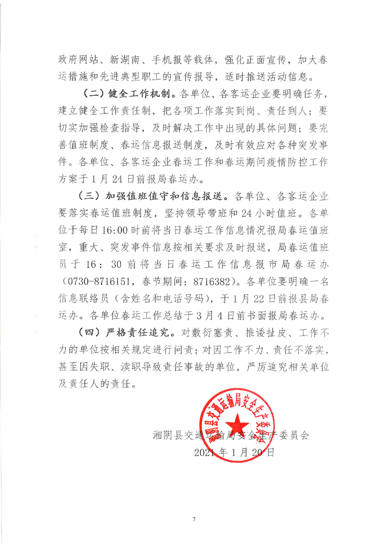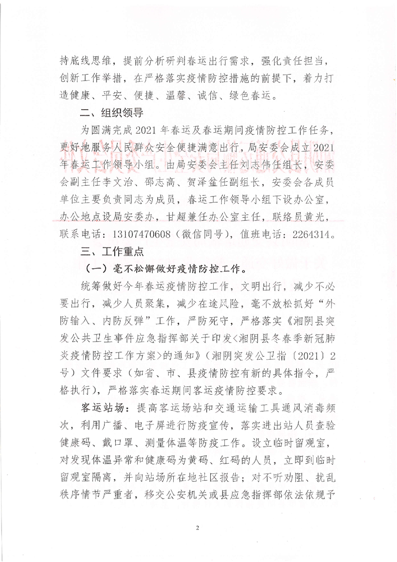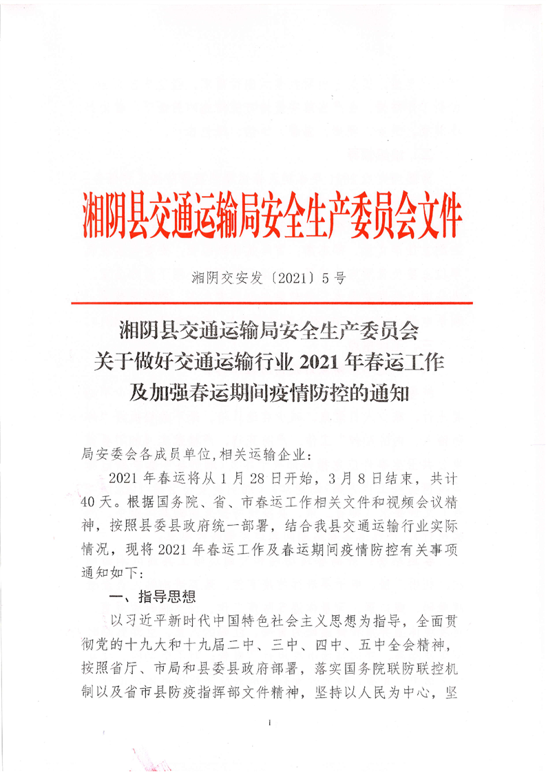 湘阴县交通运输局安全生产委员会关于做好交通运输行业2021年春运工作及加强春运期间疫情防控的通知