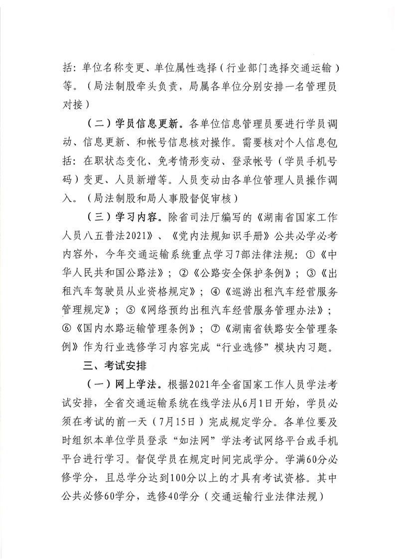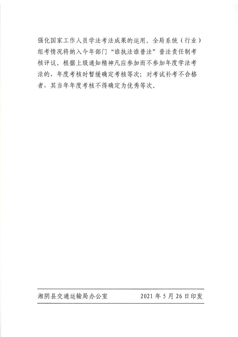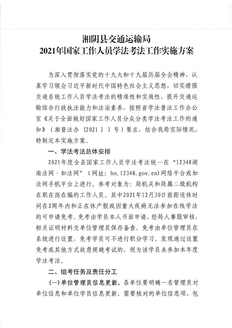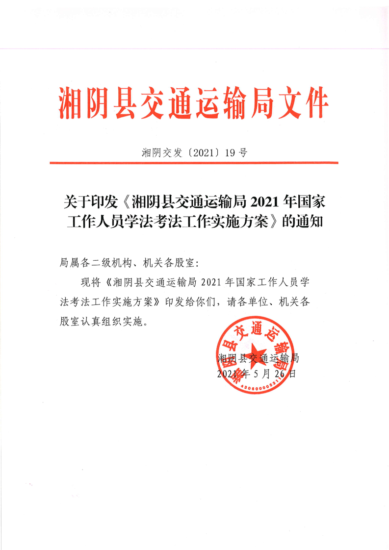 关于印发《湘阴县交通运输局2021年国家工作人员学法考试工作实施方案》的通知