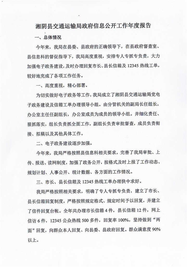 湘阴县交通运输局2019年政府信息公开工作年度报告
