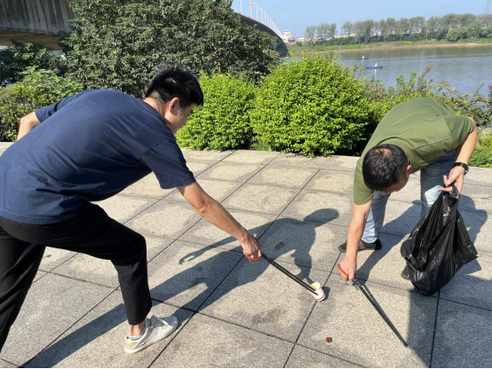 活动中,全体党员和干职工们一手持火钳,一手提塑料袋,沿途拾捡绿化带垃圾并分类投放,经过近1个小时的努力,小到烟头、水瓶,大到废弃建筑垃圾,都被一一清理干净。