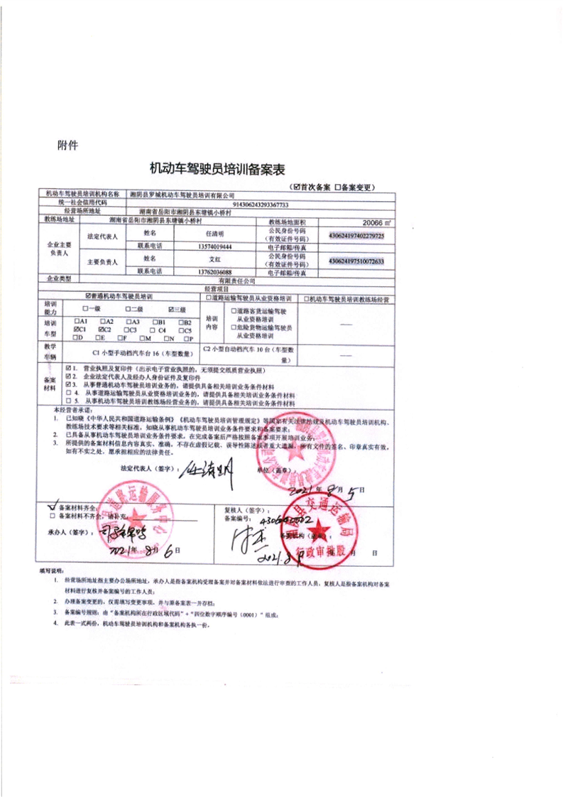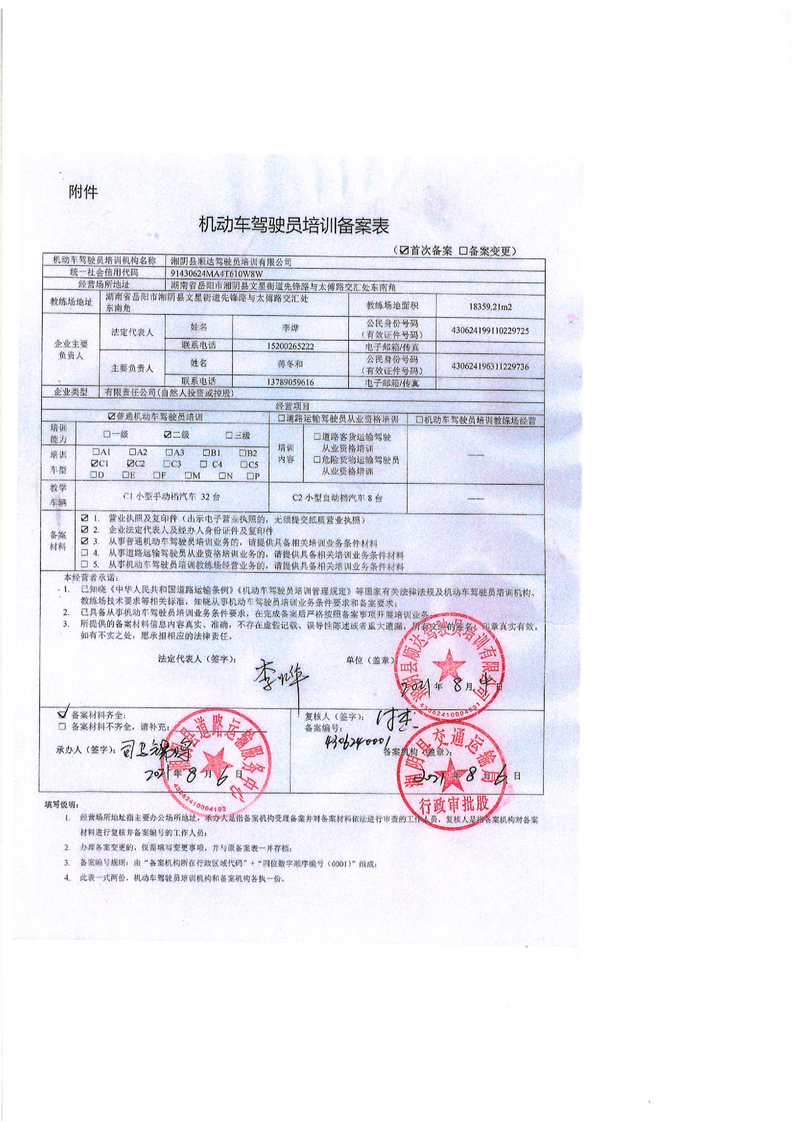 机动车驾驶员培训备案表