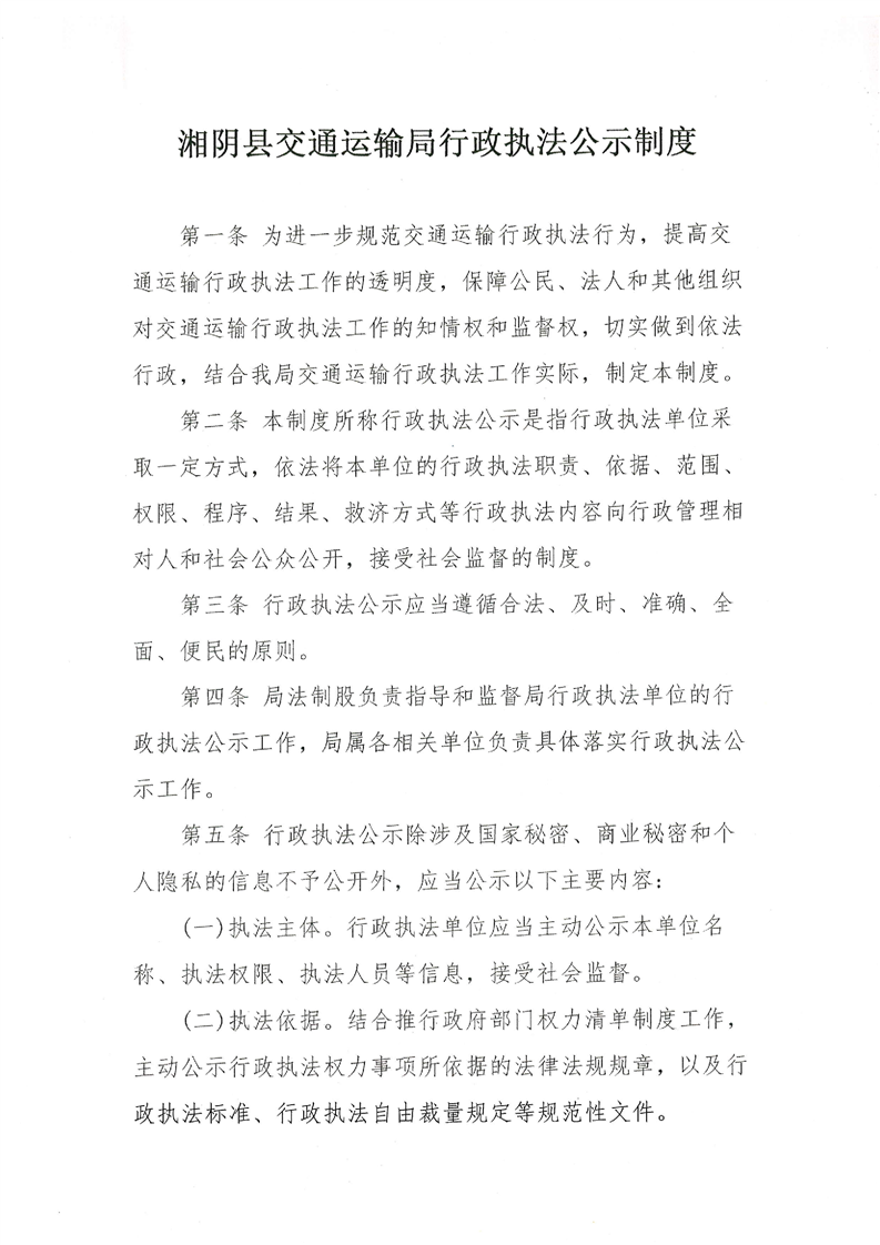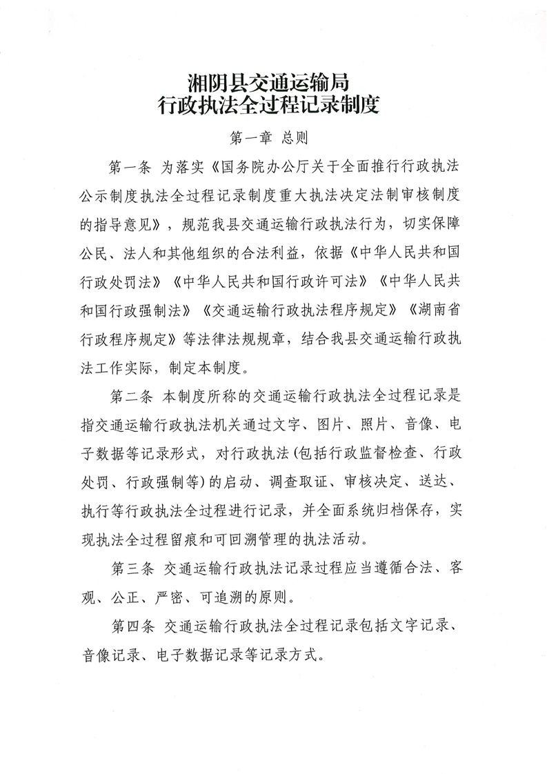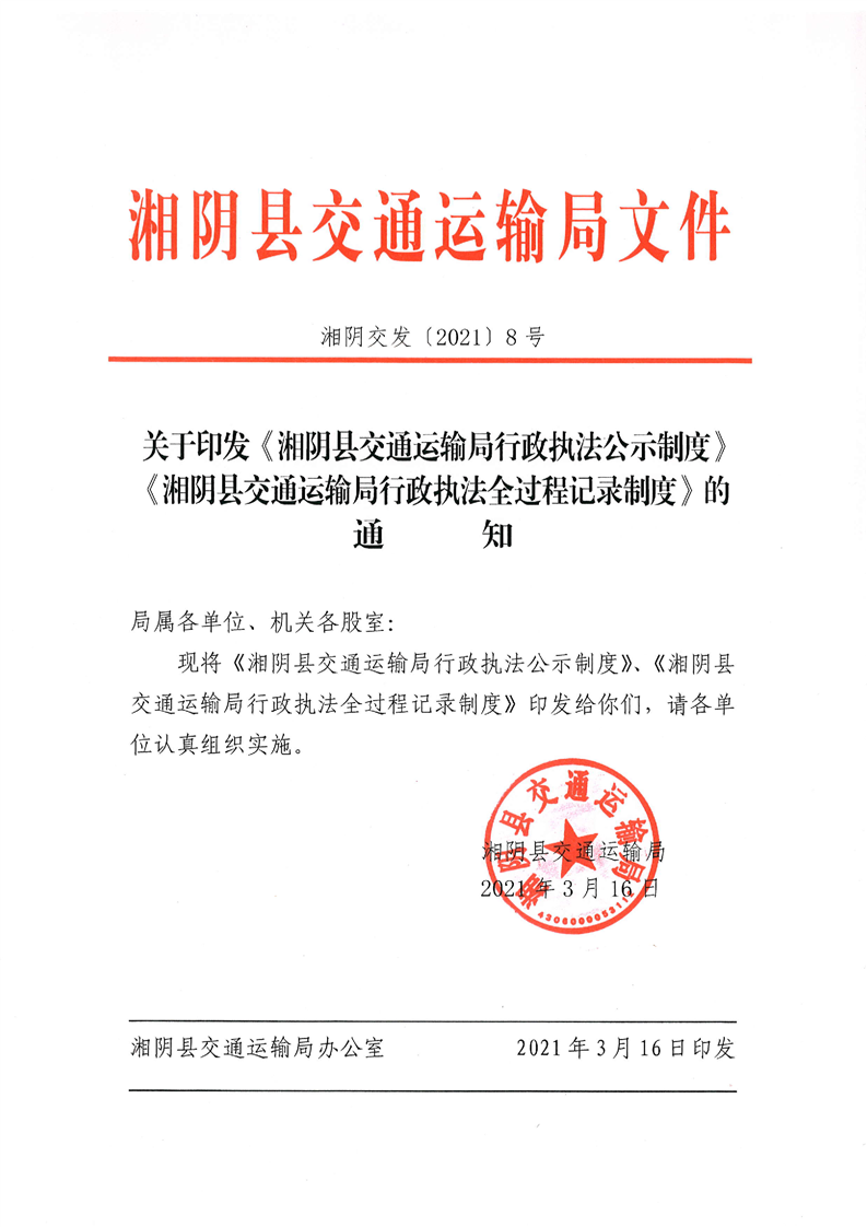 关于印发《湘阴县交通运输局行政执法公示制度》《湘阴县交通运输局行政执法全过程记录制度》的通知