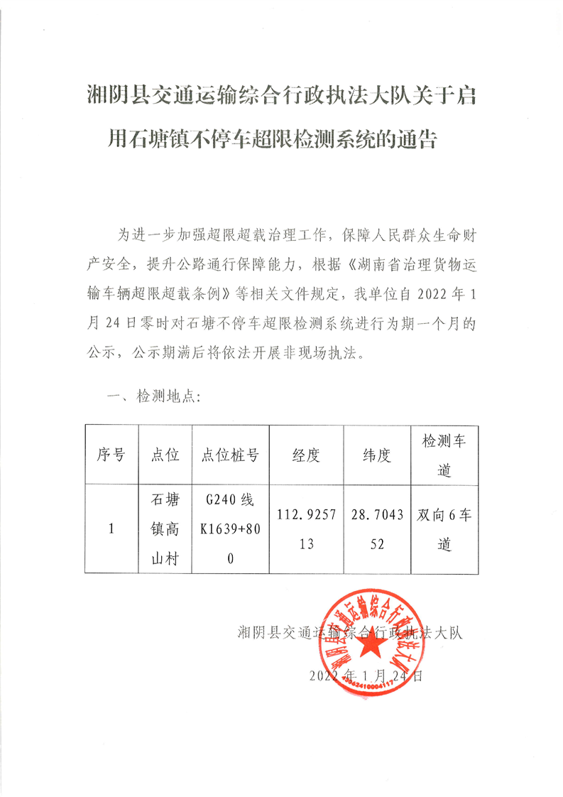 湘阴县交通运输综合行政执法大队非现场执法公示