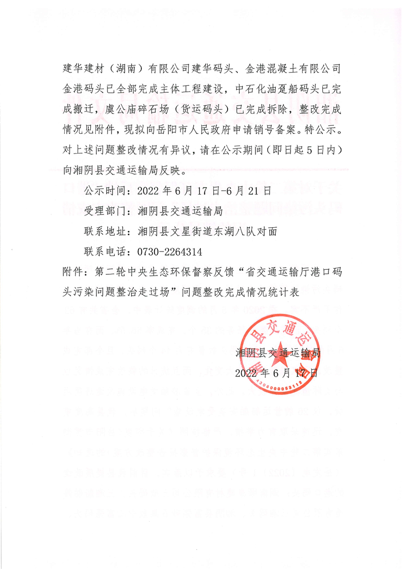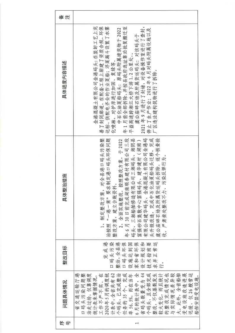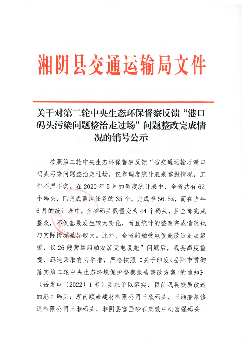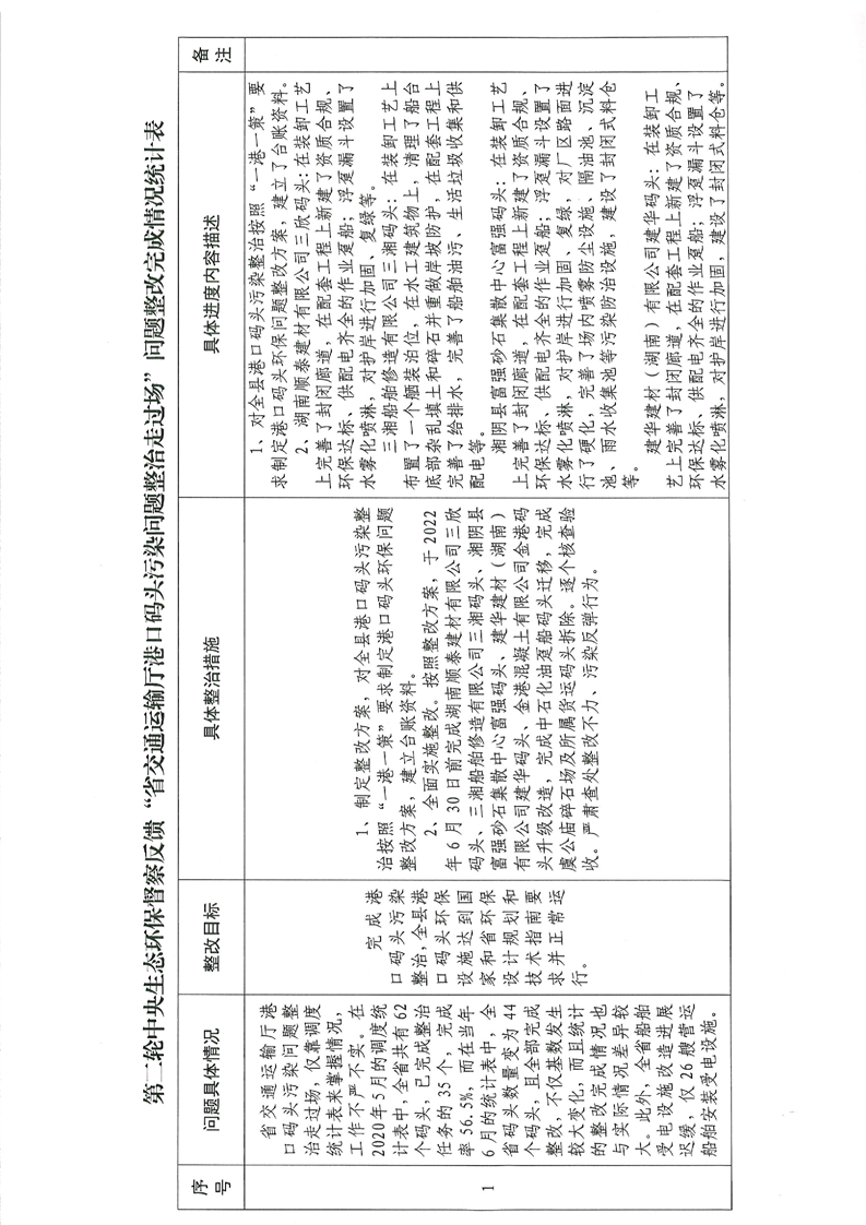 关于对第二轮中央生态环保督察反馈“港口码头污染问题整治走过场”问题整改完成情况的销号公示