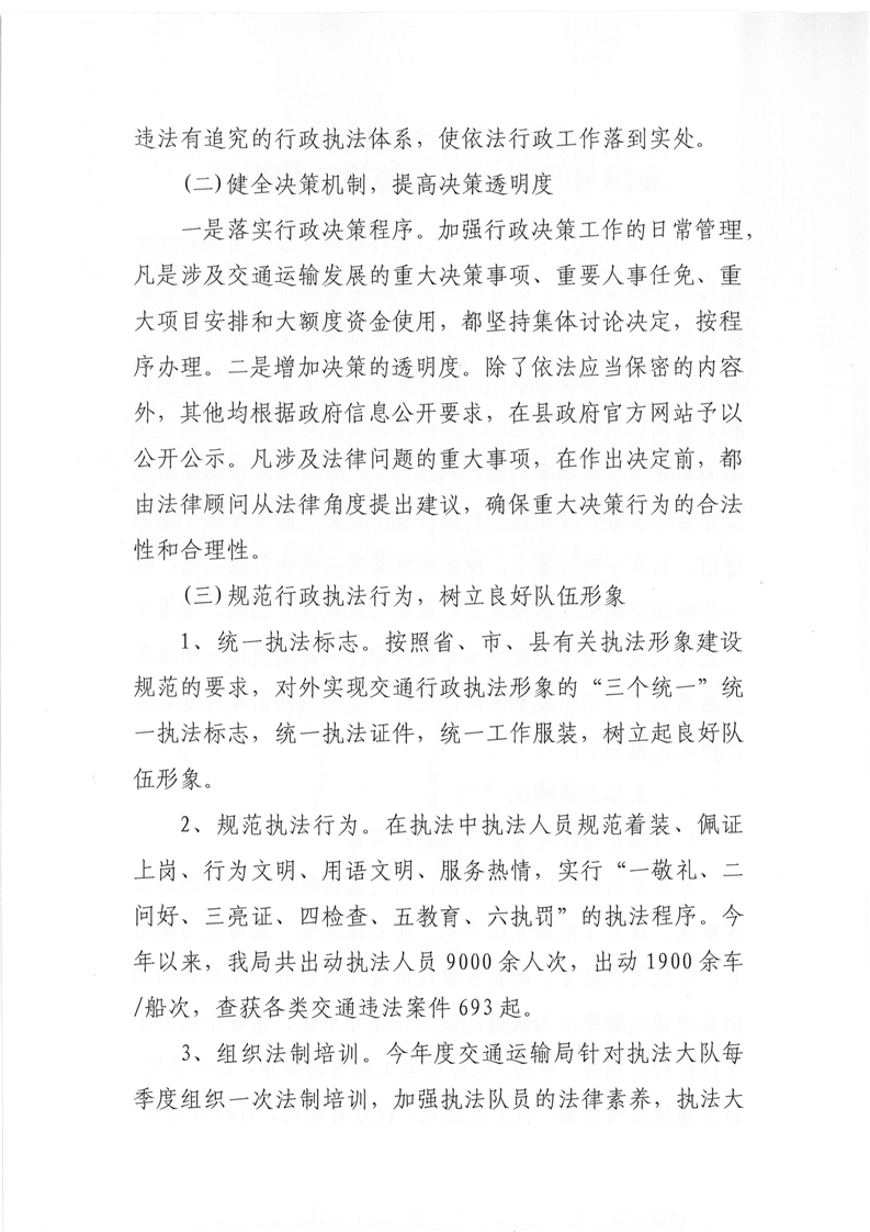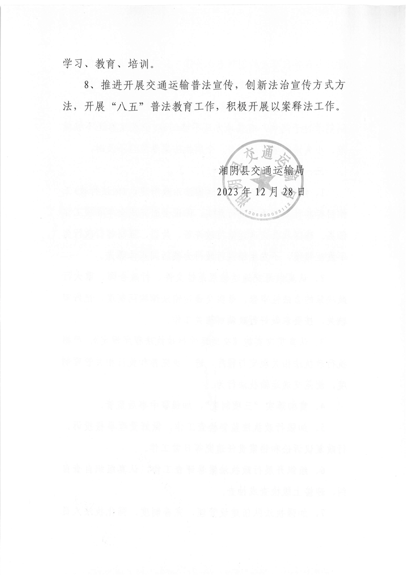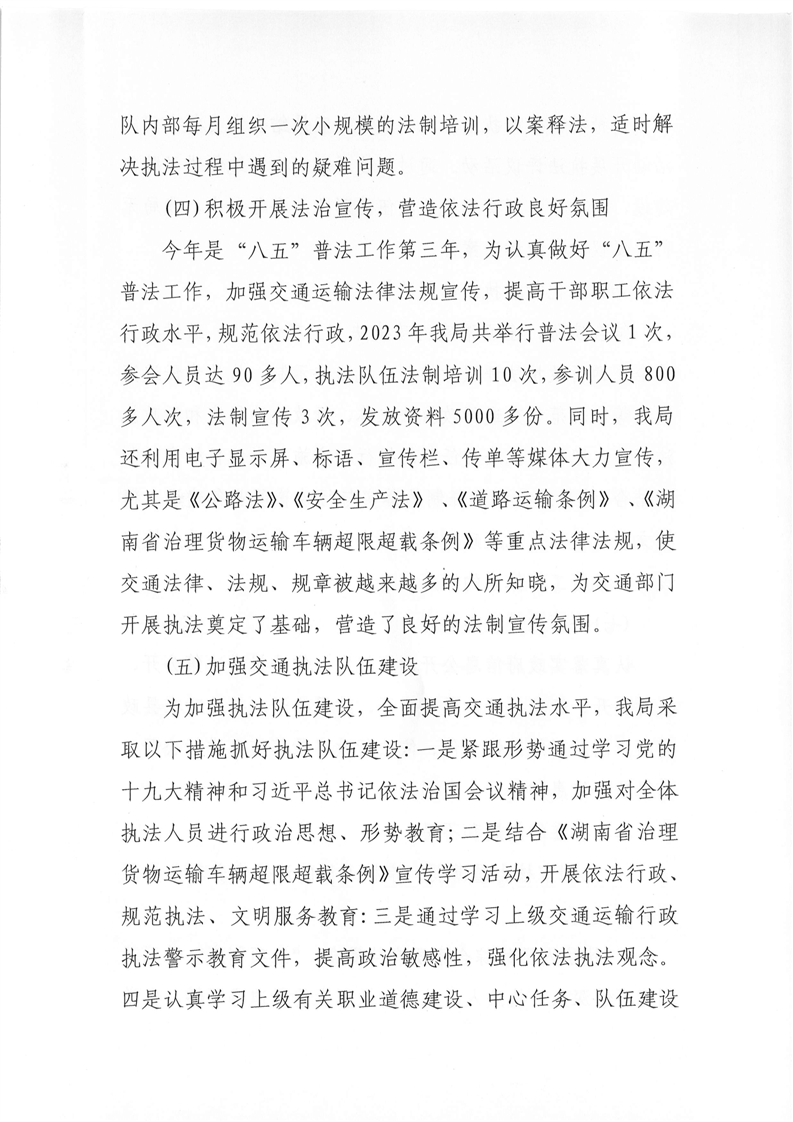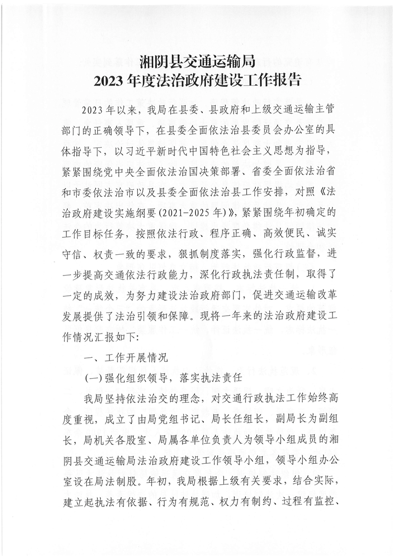 湘阴县交通运输局2023年度法治政府建设工作报告