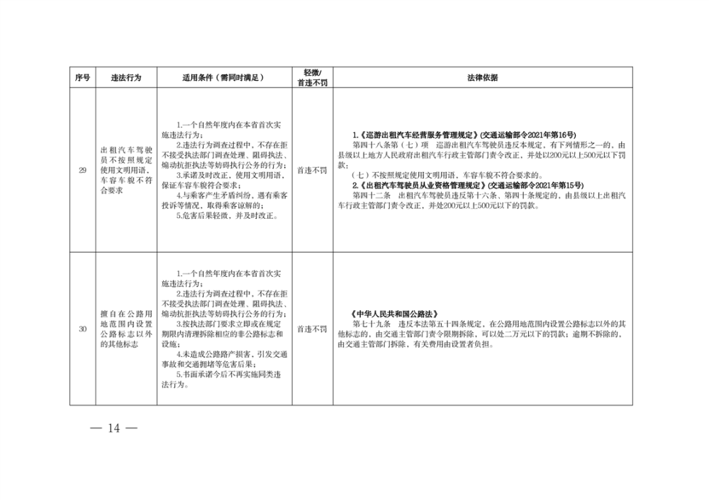 关于印发《湖南省交通运输领域“轻微不罚”“首违不罚”清单(2025年版)》的通知